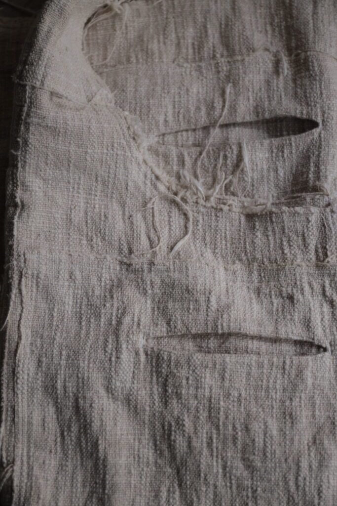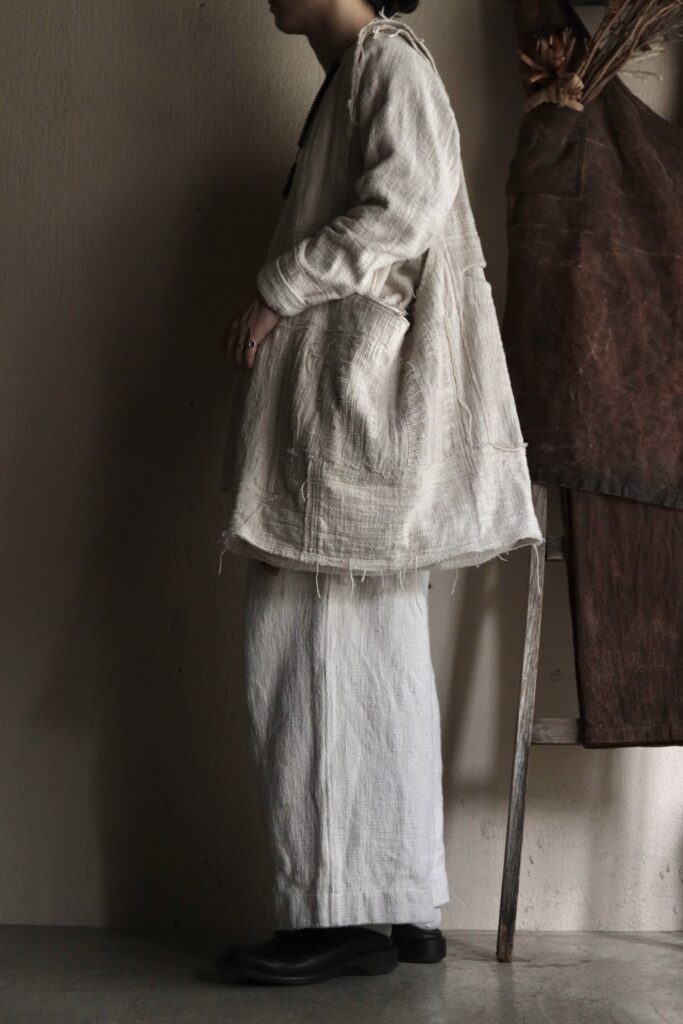 非常に雰囲気のある手紡ぎ手織り布ですが