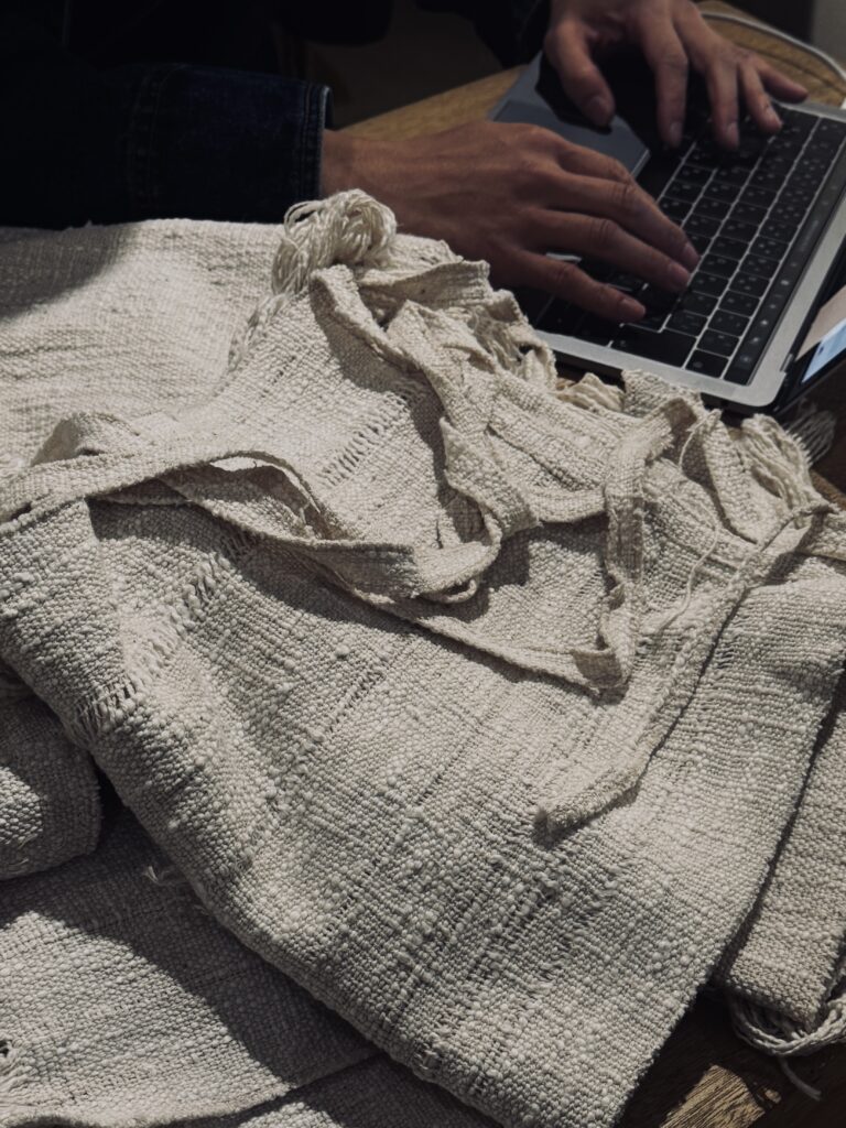 手紡ぎ手織りならではの柔い質感
