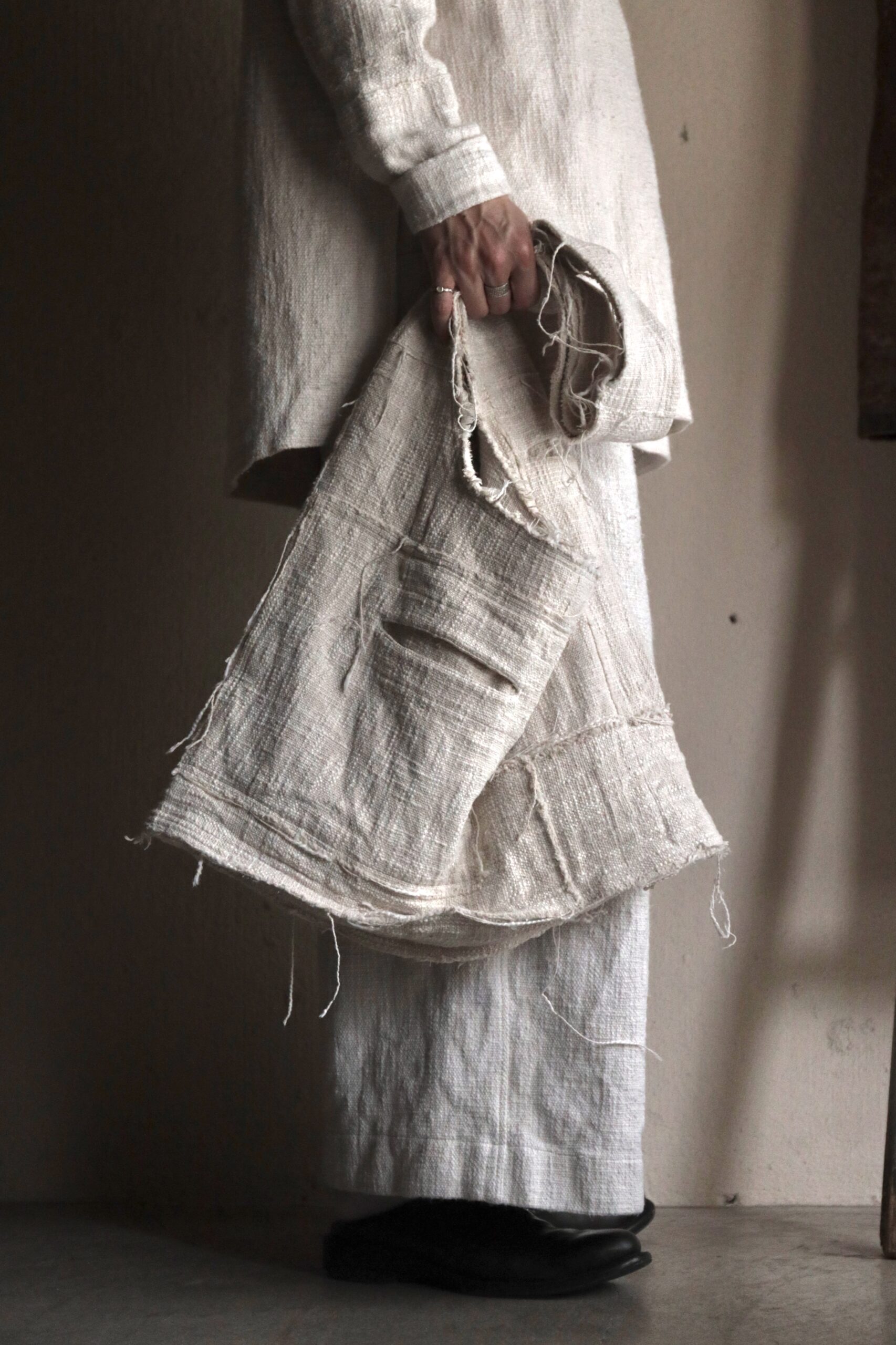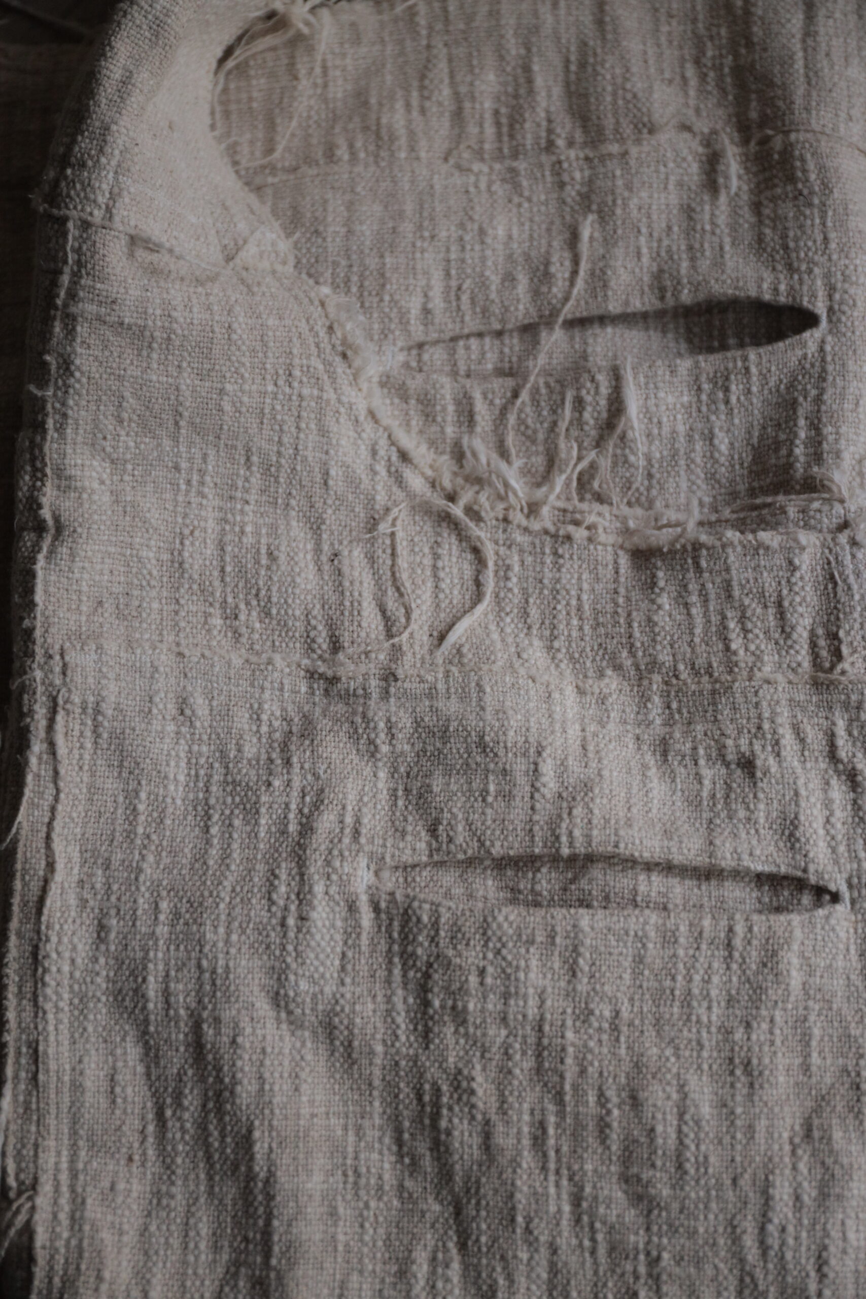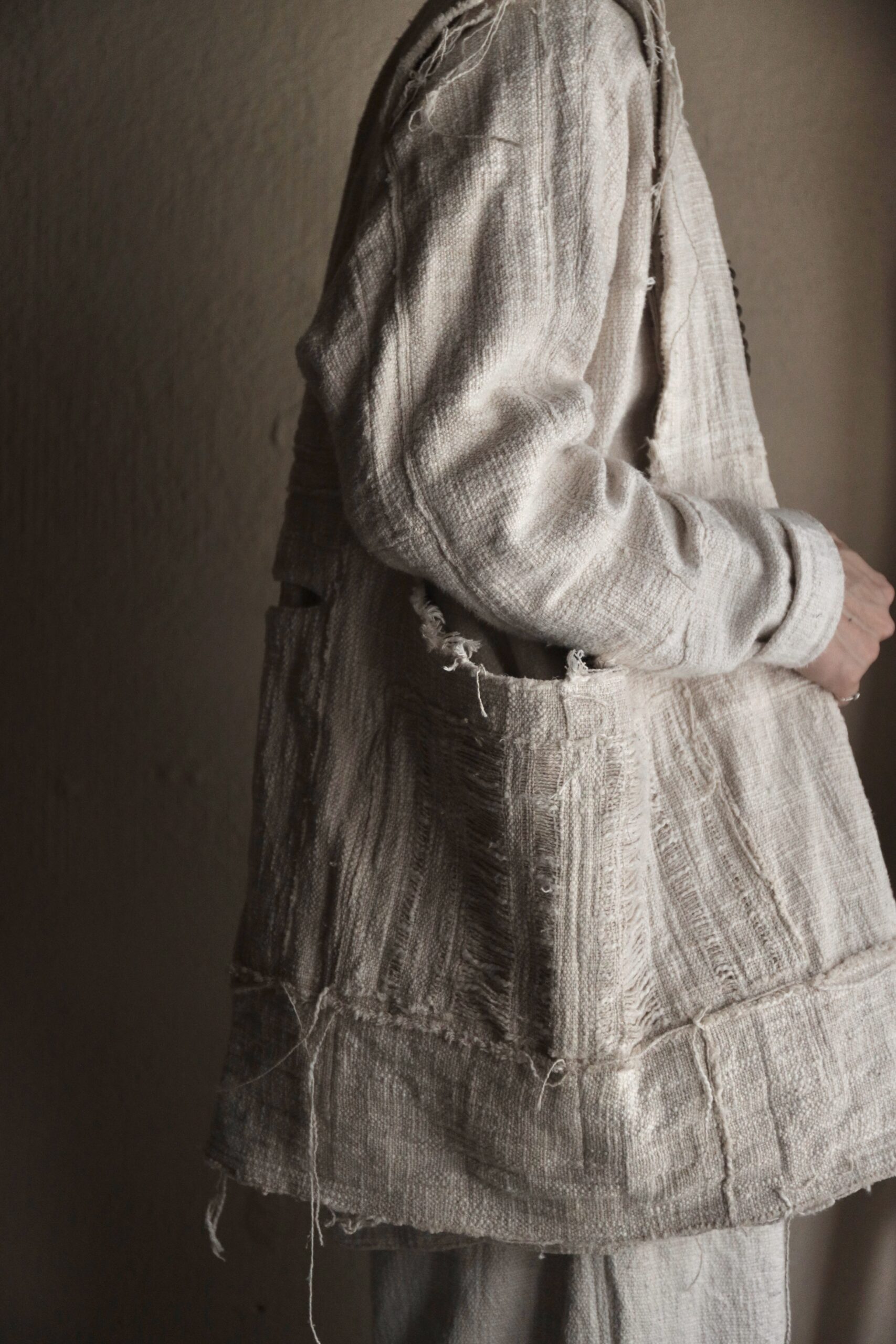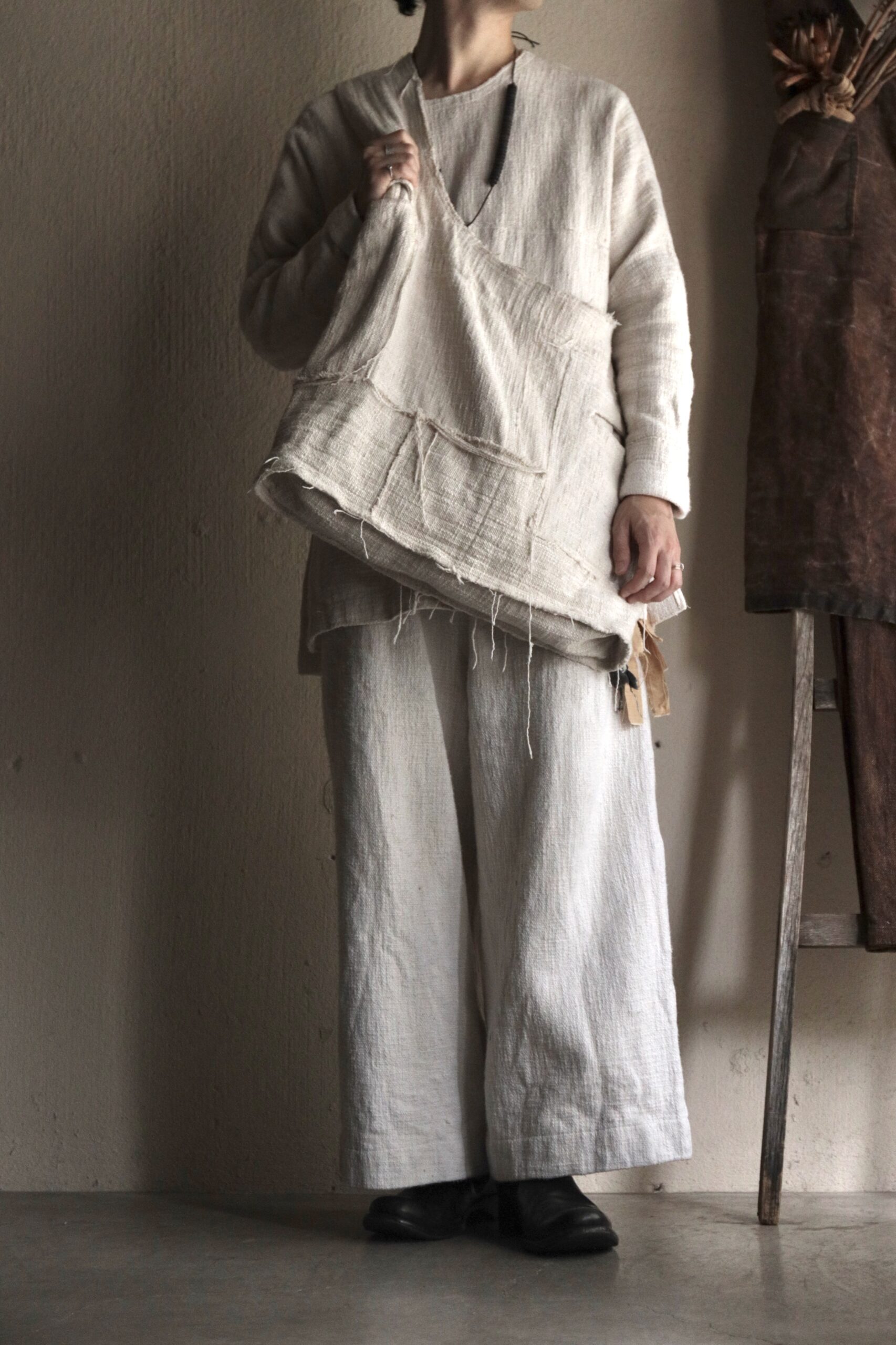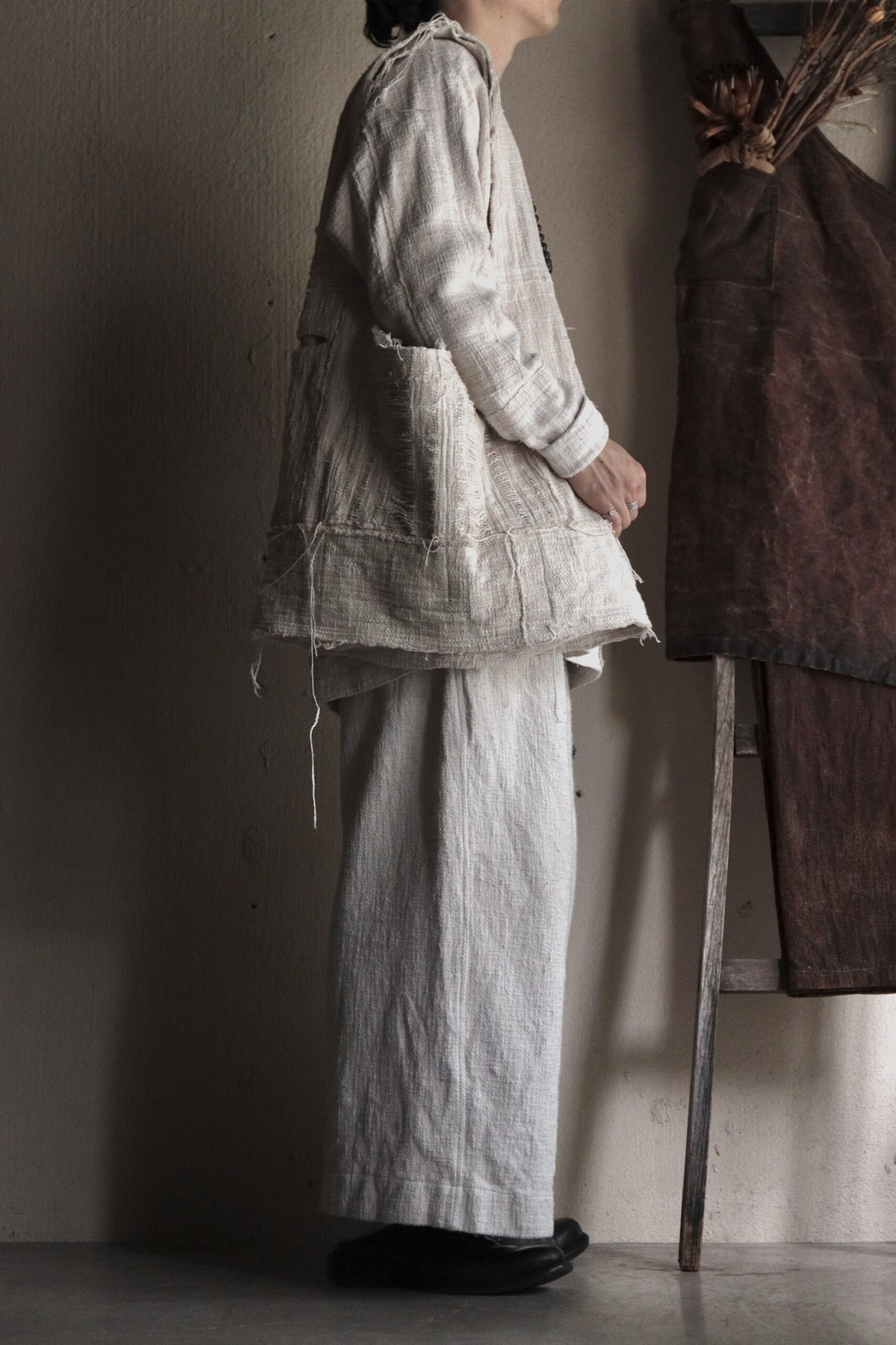 非常に雰囲気のある手紡ぎ手織り布ですが