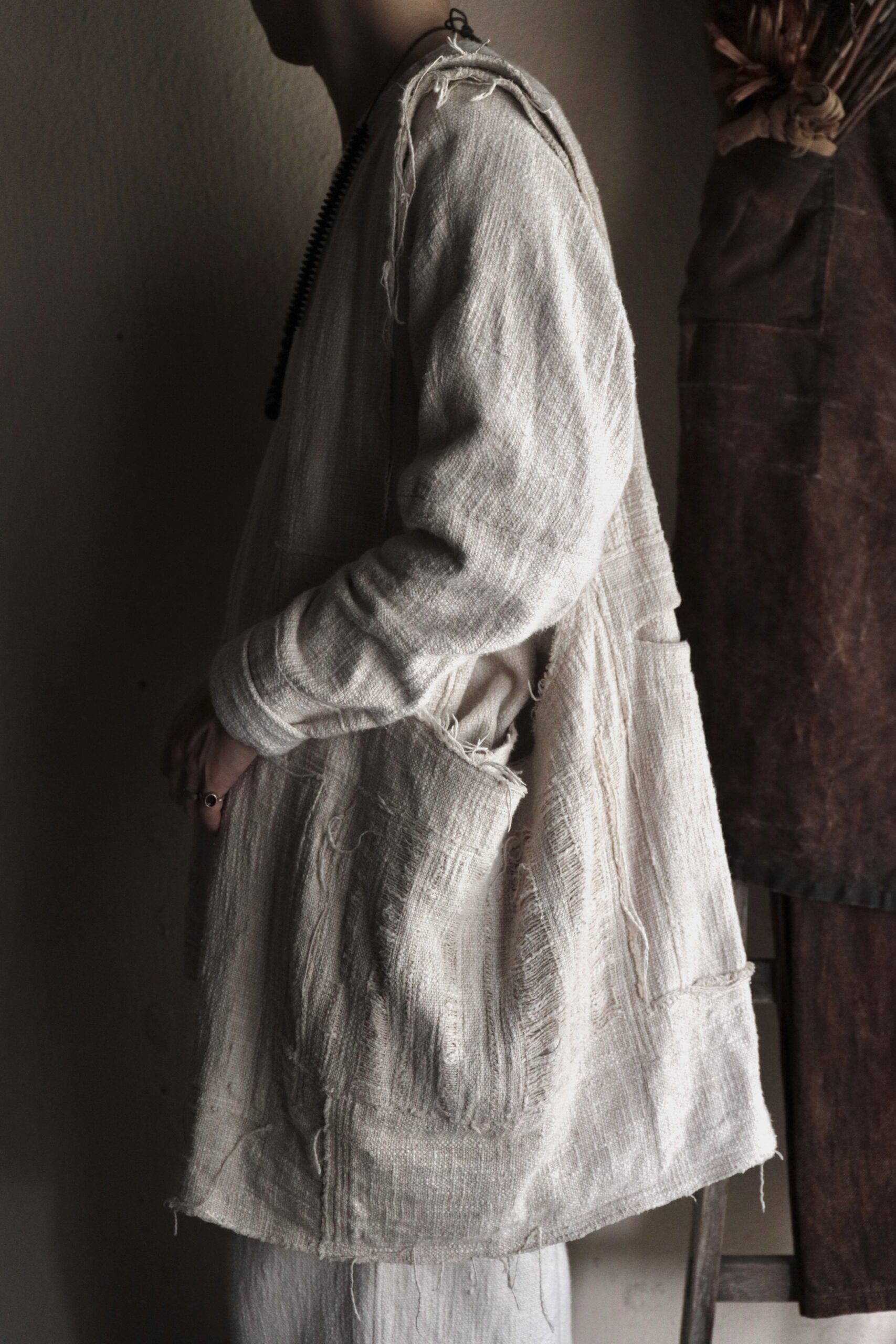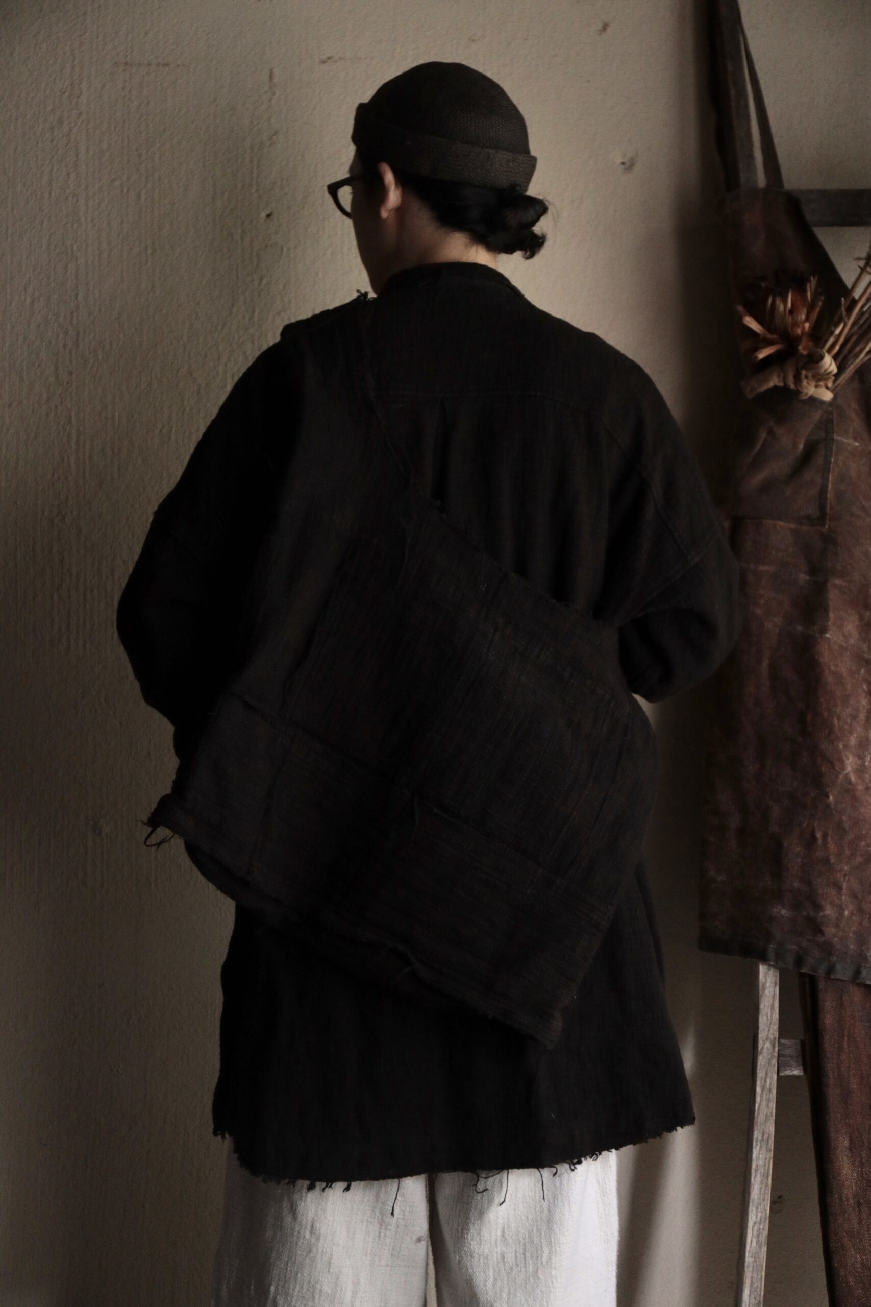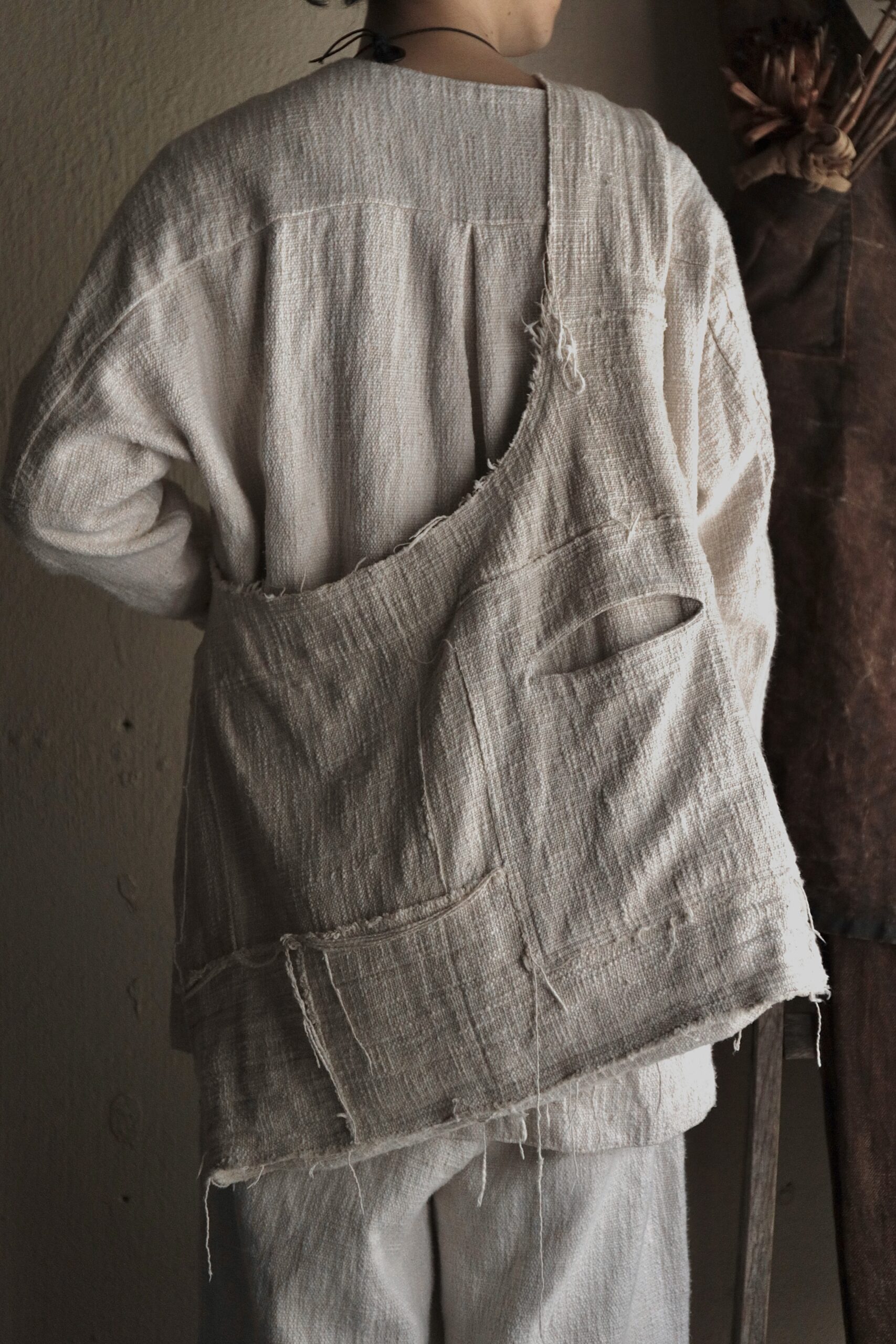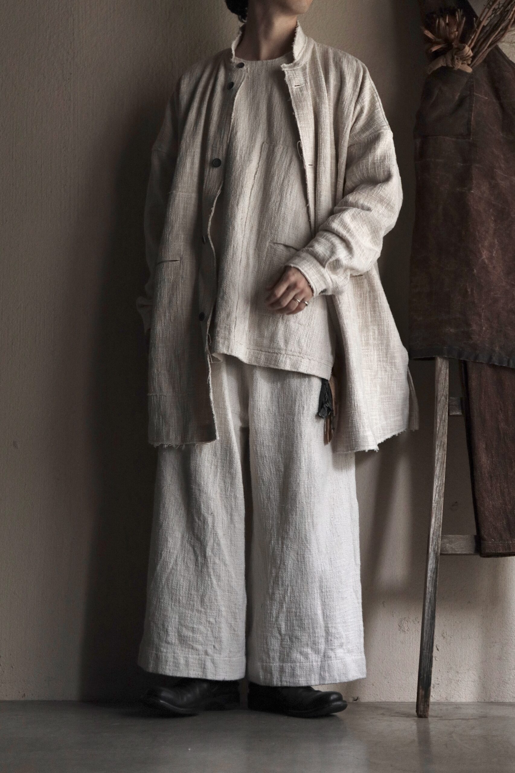 非常に雰囲気のある手紡ぎ手織り布ですが