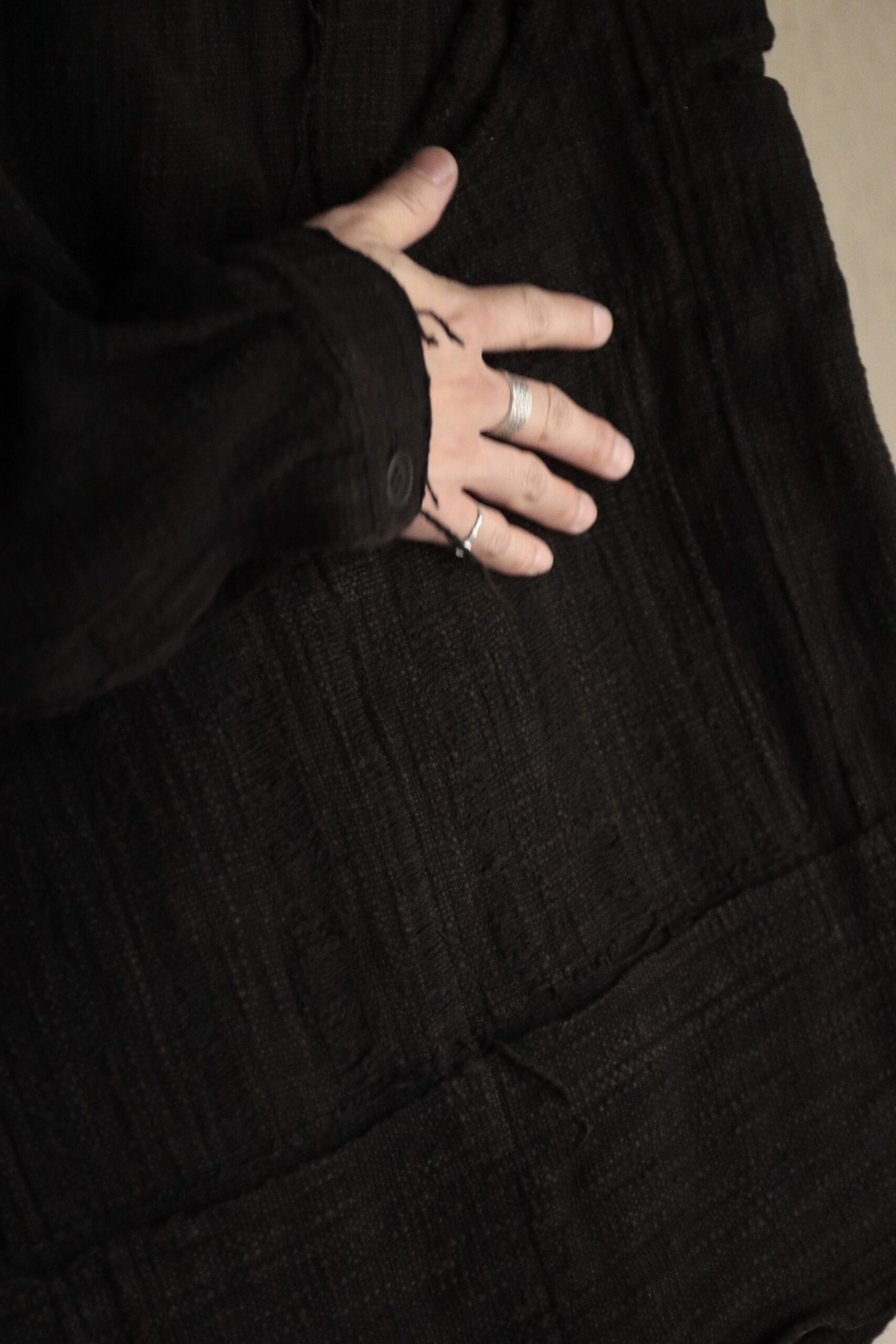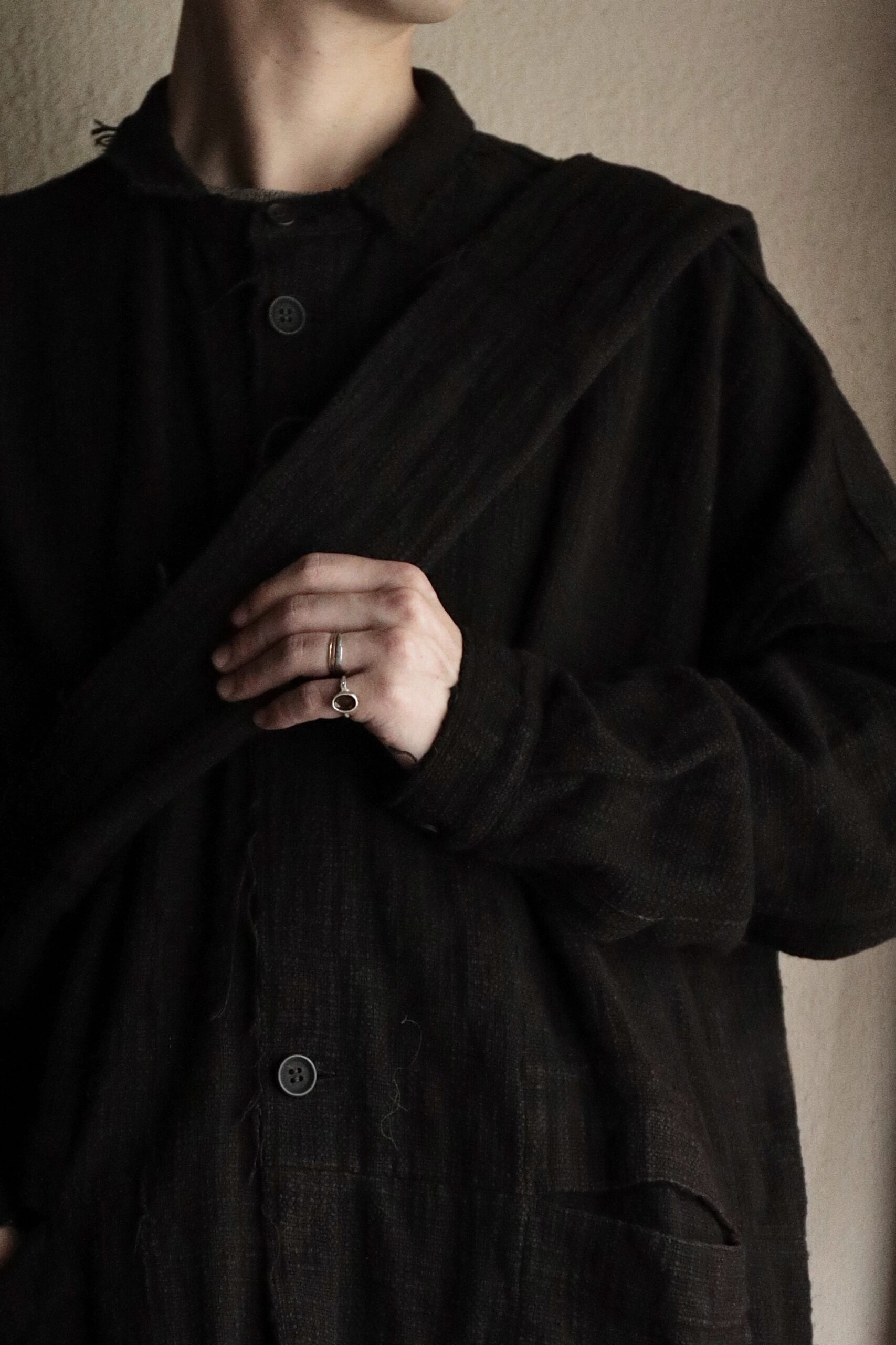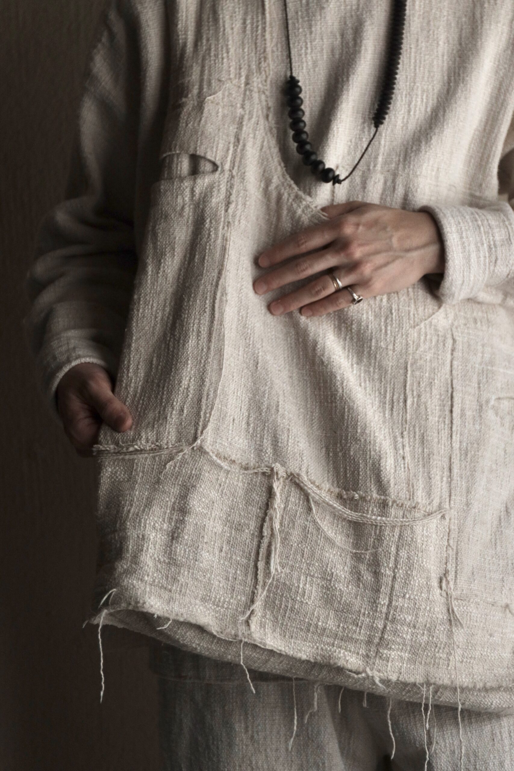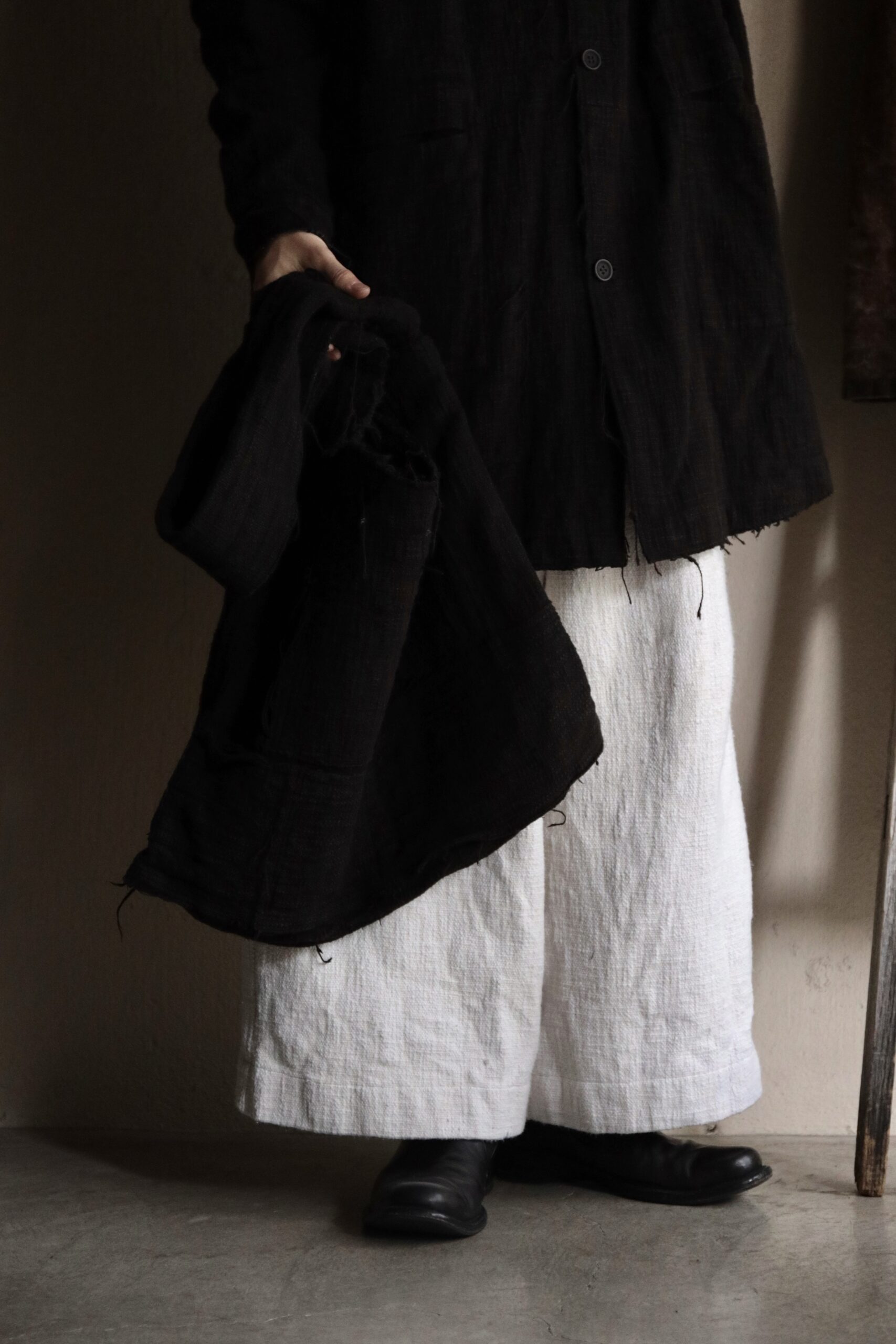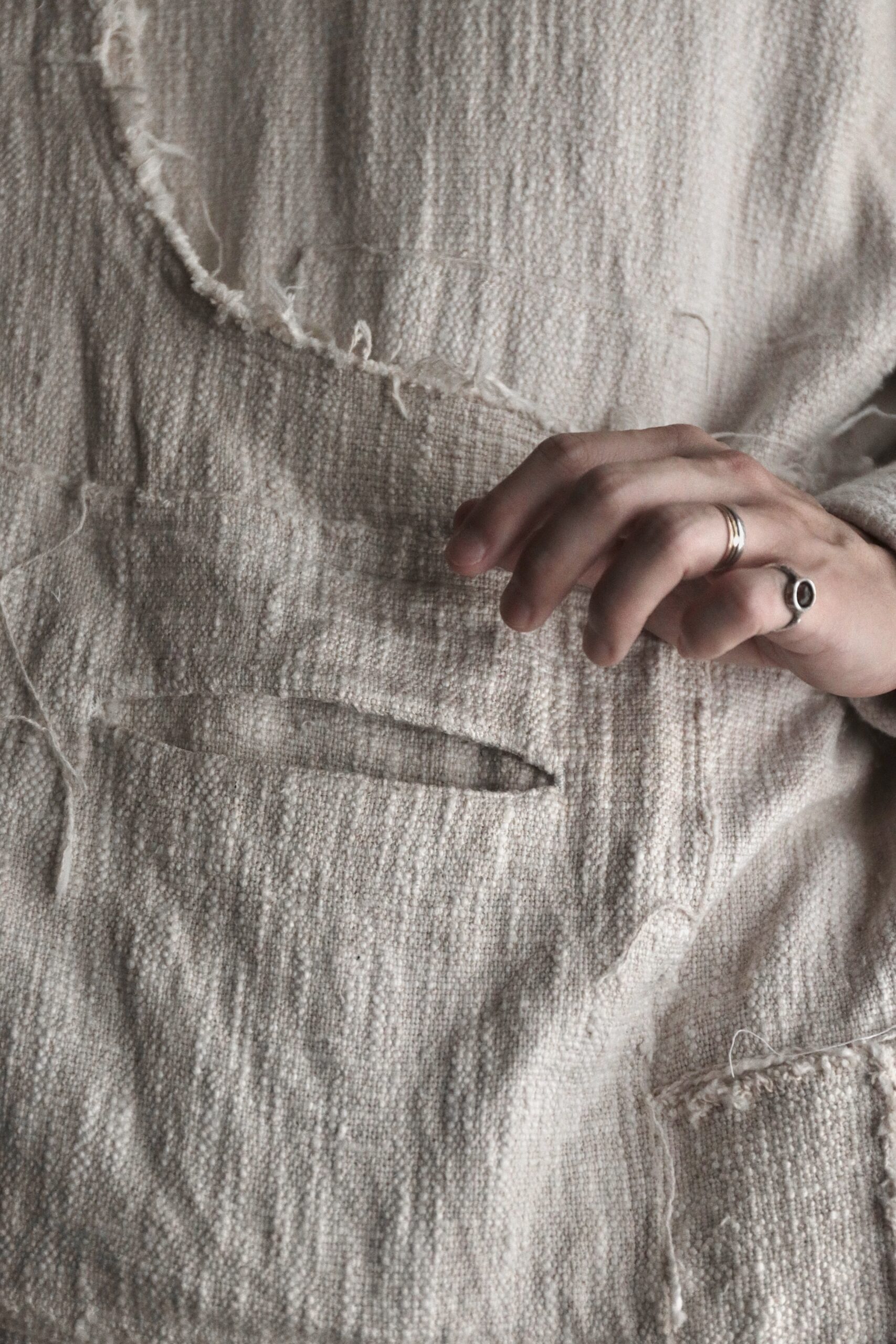 非常に雰囲気のある手紡ぎ手織り布ですが