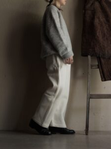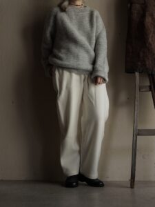 | スタイリング | 《女性》 Tops:MITTAN / KN-35 ウルグアイスラブNMウールセーター Shoes:SHOE&SEWN / Jan Buffalo Leather Shoes |