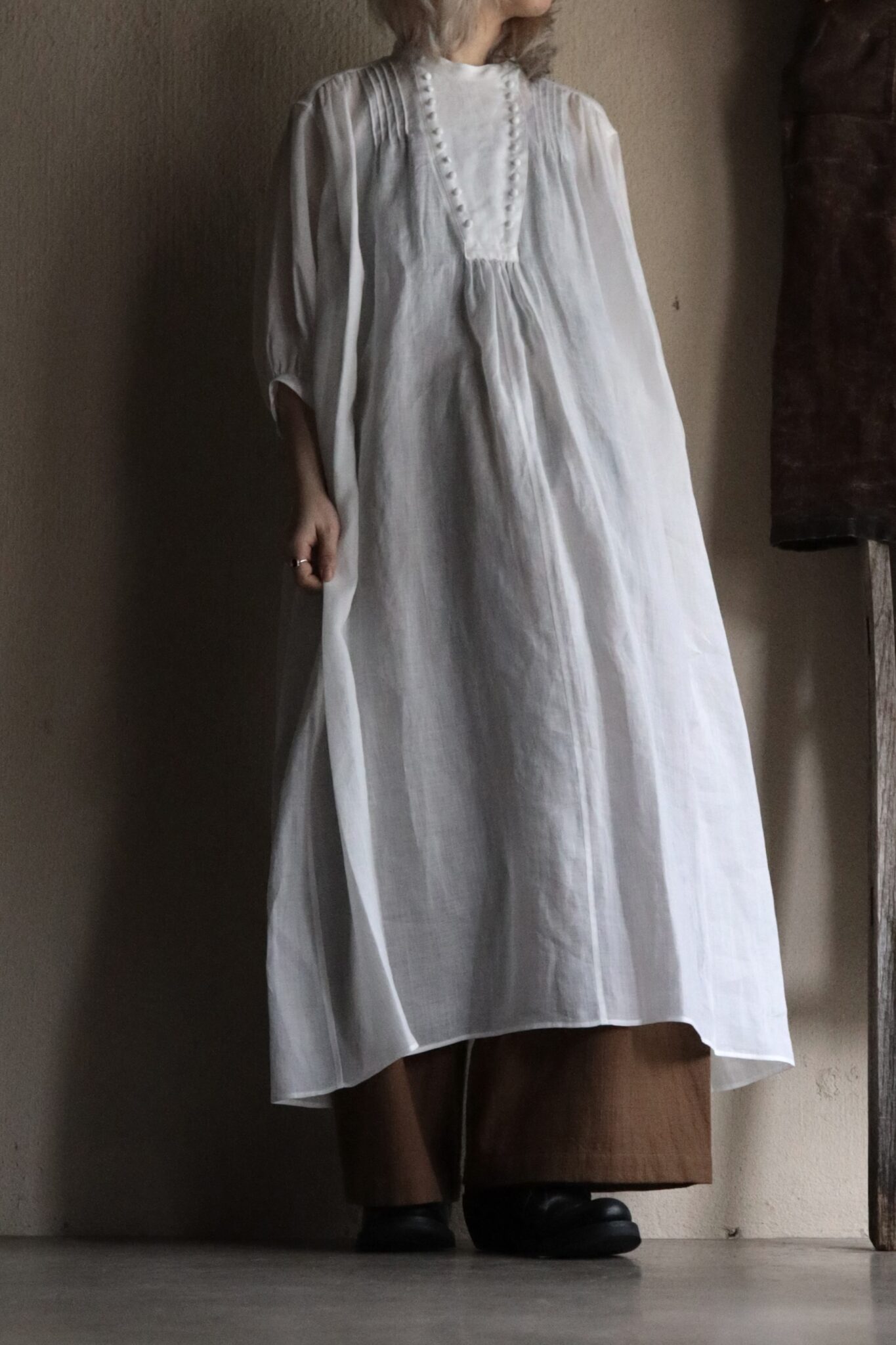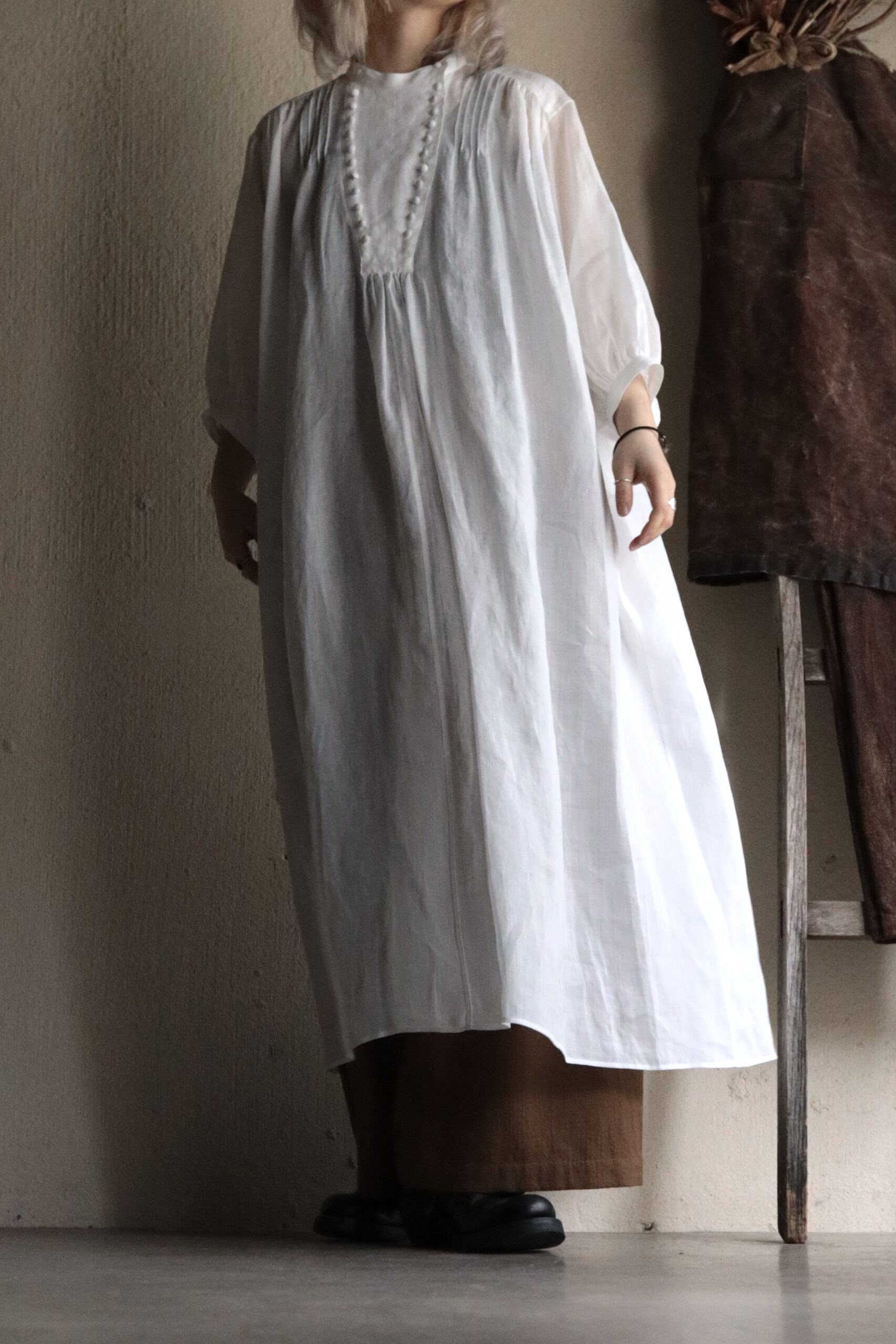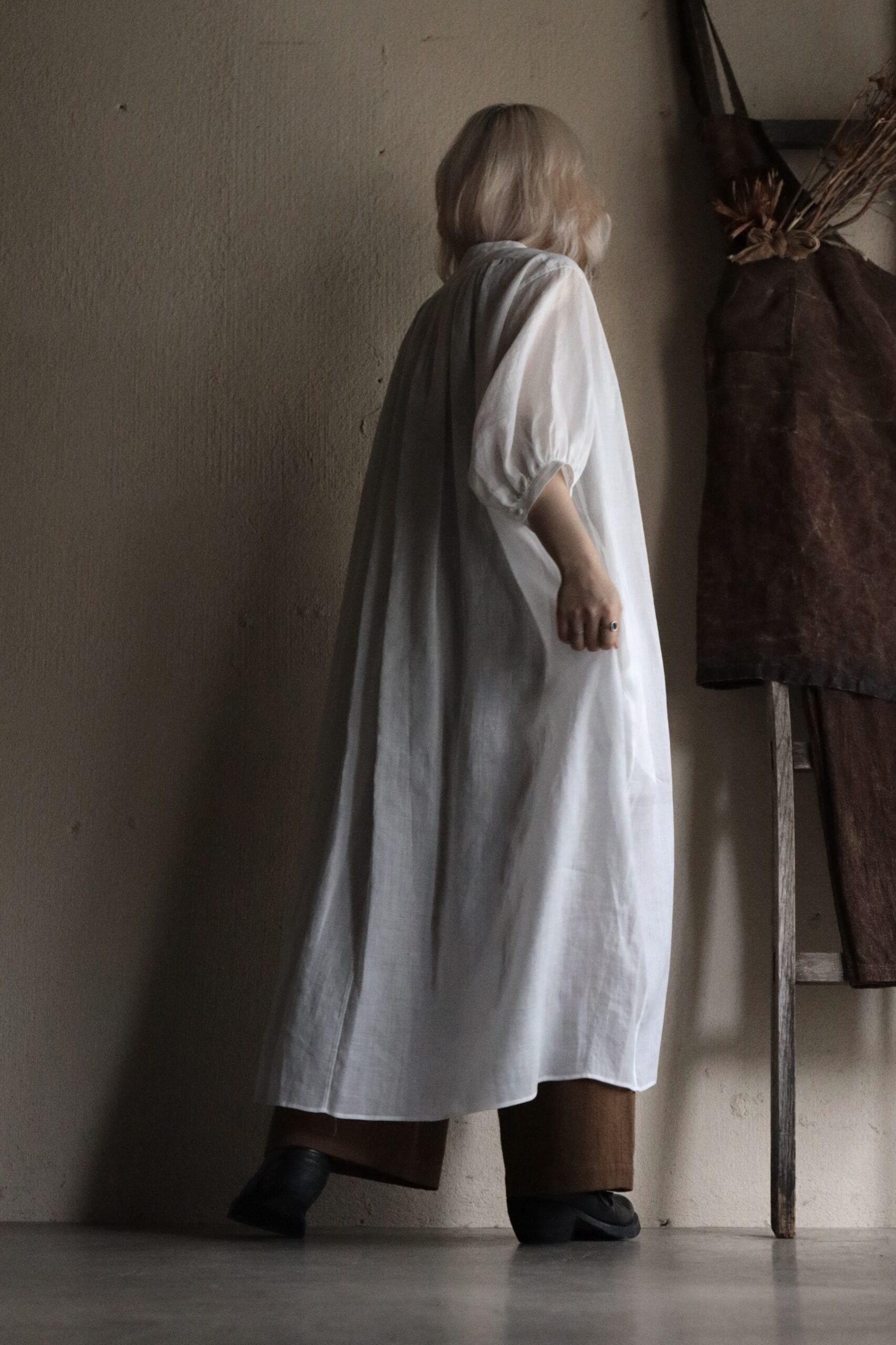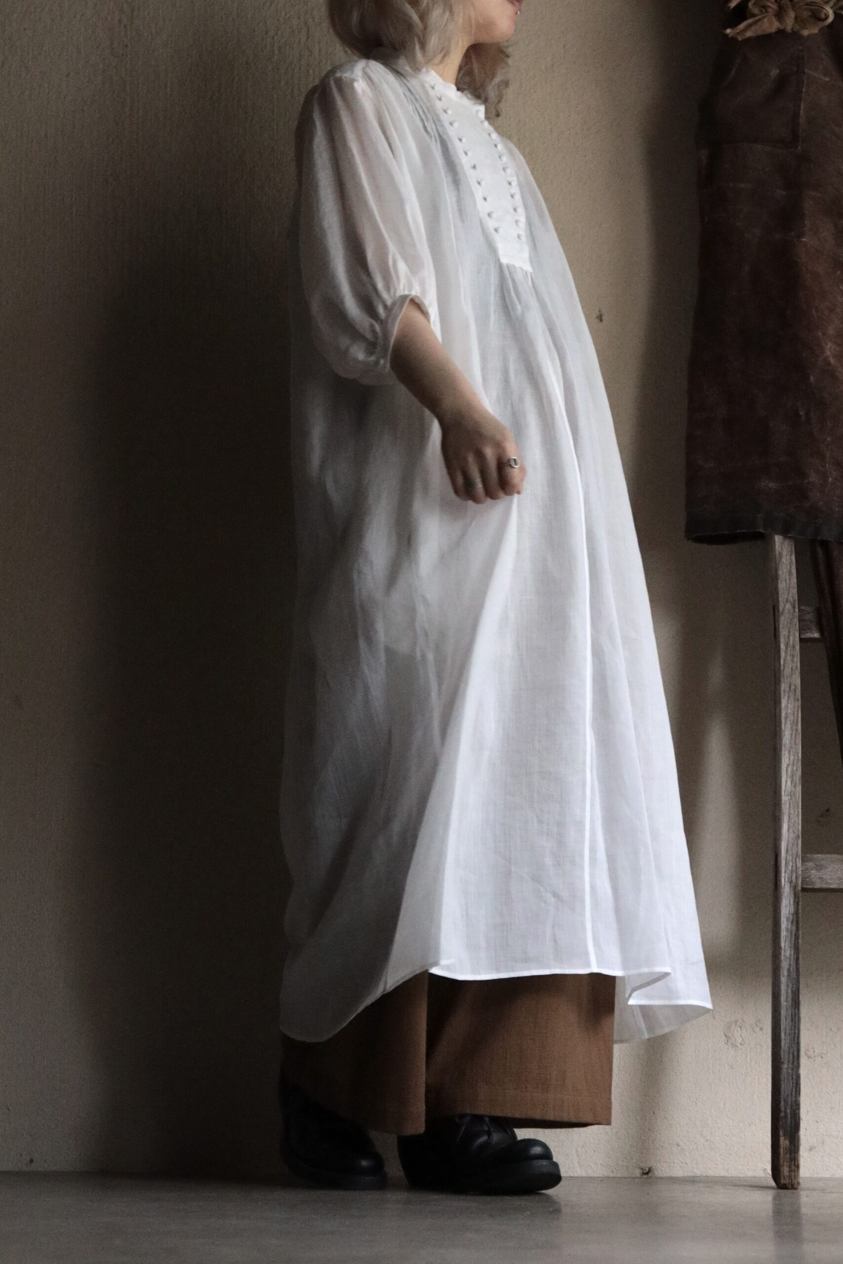 ゆったりと広がる袖や裾