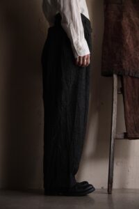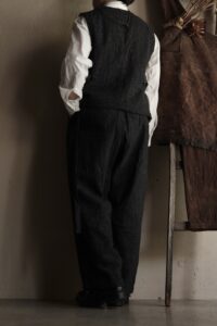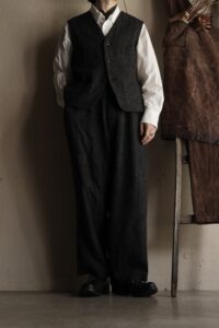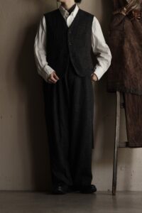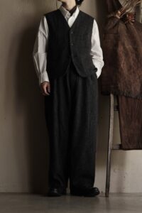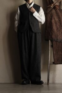 | スタイリング | Shirt:KLASICA / SH-049 Plane Unbalance Shirt Vest:SUSURI / パペットベスト Shoes:EVARIST BERTRAN / EB2 Derby Shoes |