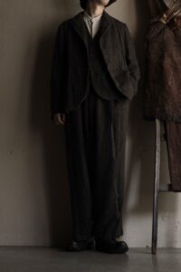 | スタイリング | Shirt:YUTA MATSUOKA / Archives Jacket:SUSURI / パペットジャケット Vest:SUSURI / パペットベスト Shoes:EVARIST BERTRAN / EB2 Derby Shoes Hat:SUSURI / セイルハット |