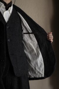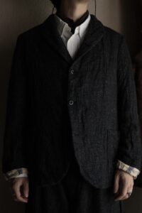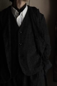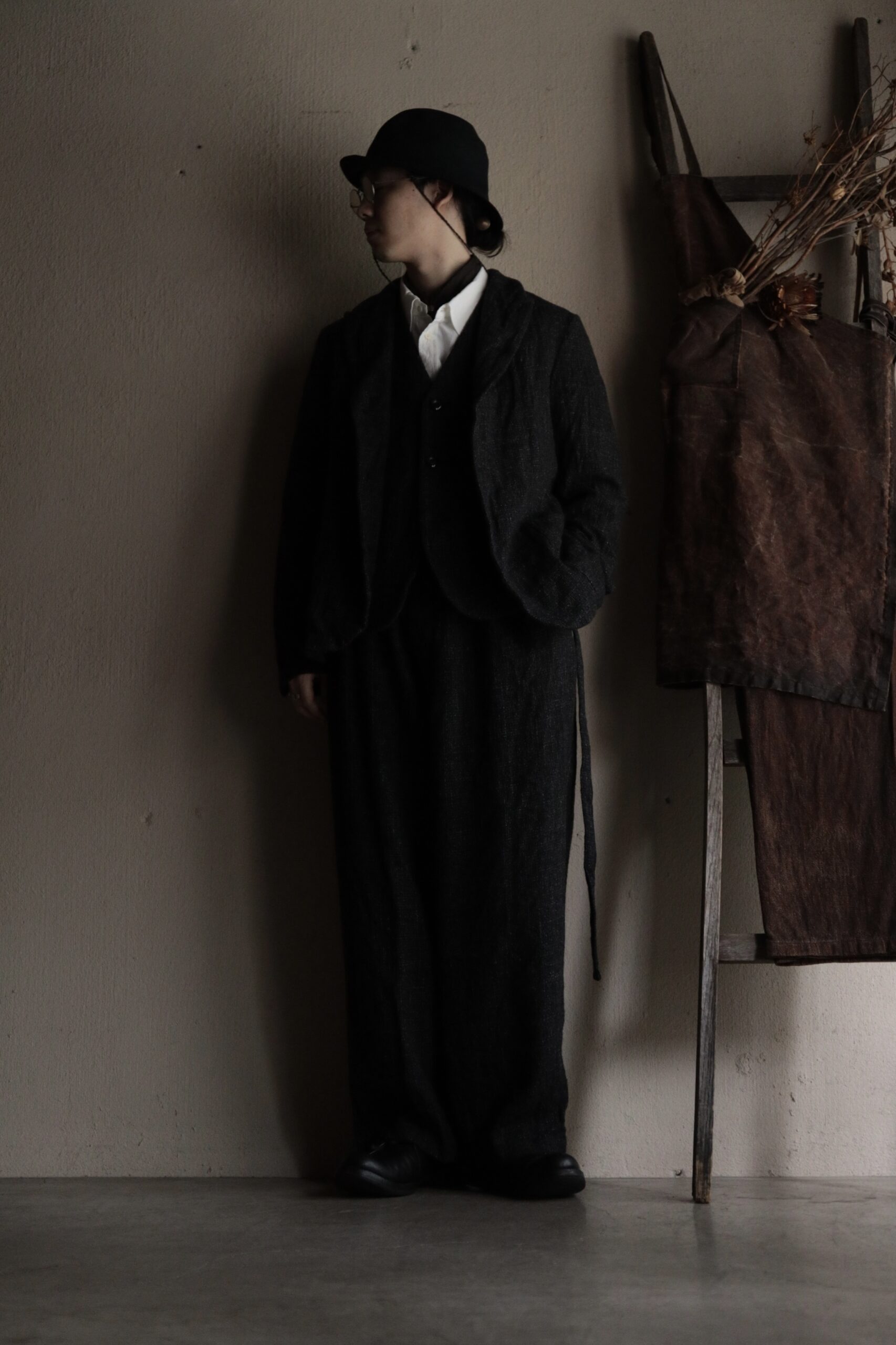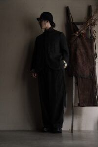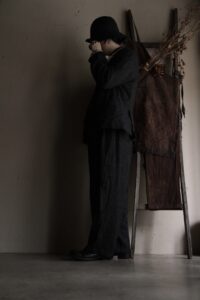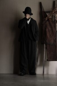 | スタイリング | Shirt:KLASICA / SH-049 Plane Unbalance Shirt Vest:SUSURI / パペットベスト Pants:SUSURI / タピールパンツ Shoes:EVARIST BERTRAN / EB2 Derby Shoes Hat:MALEZA Hatmakers / Risco-Felt |