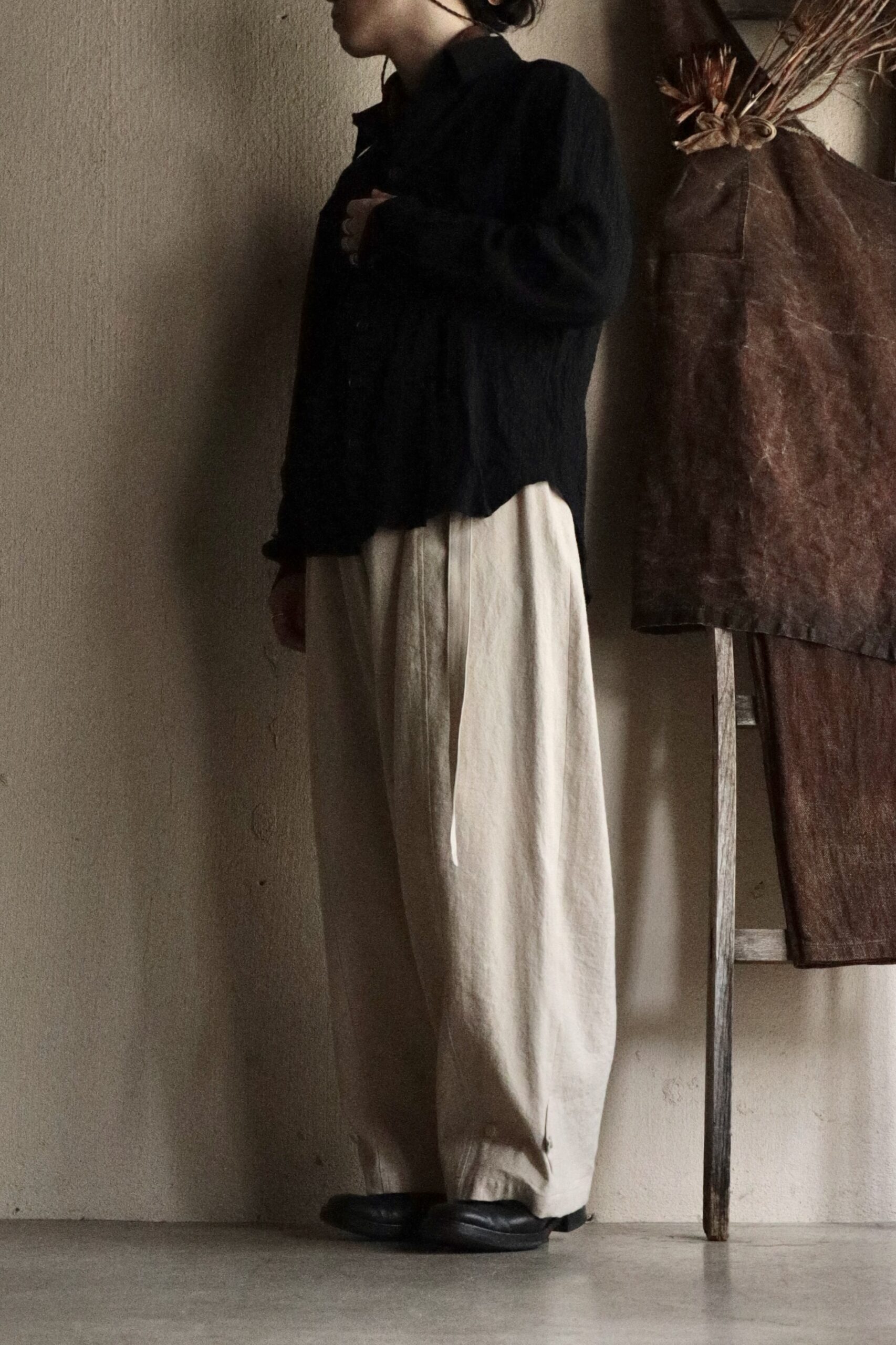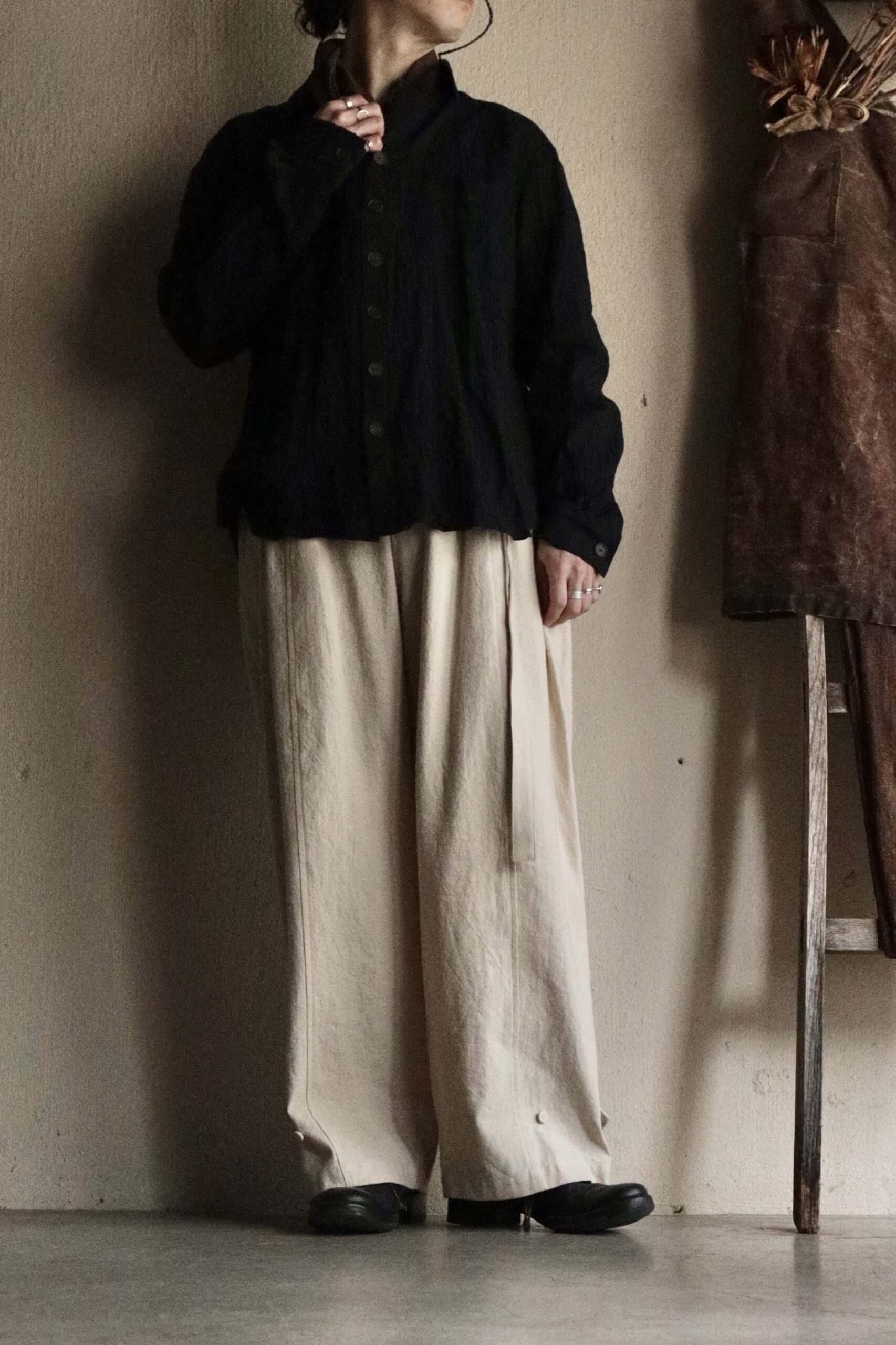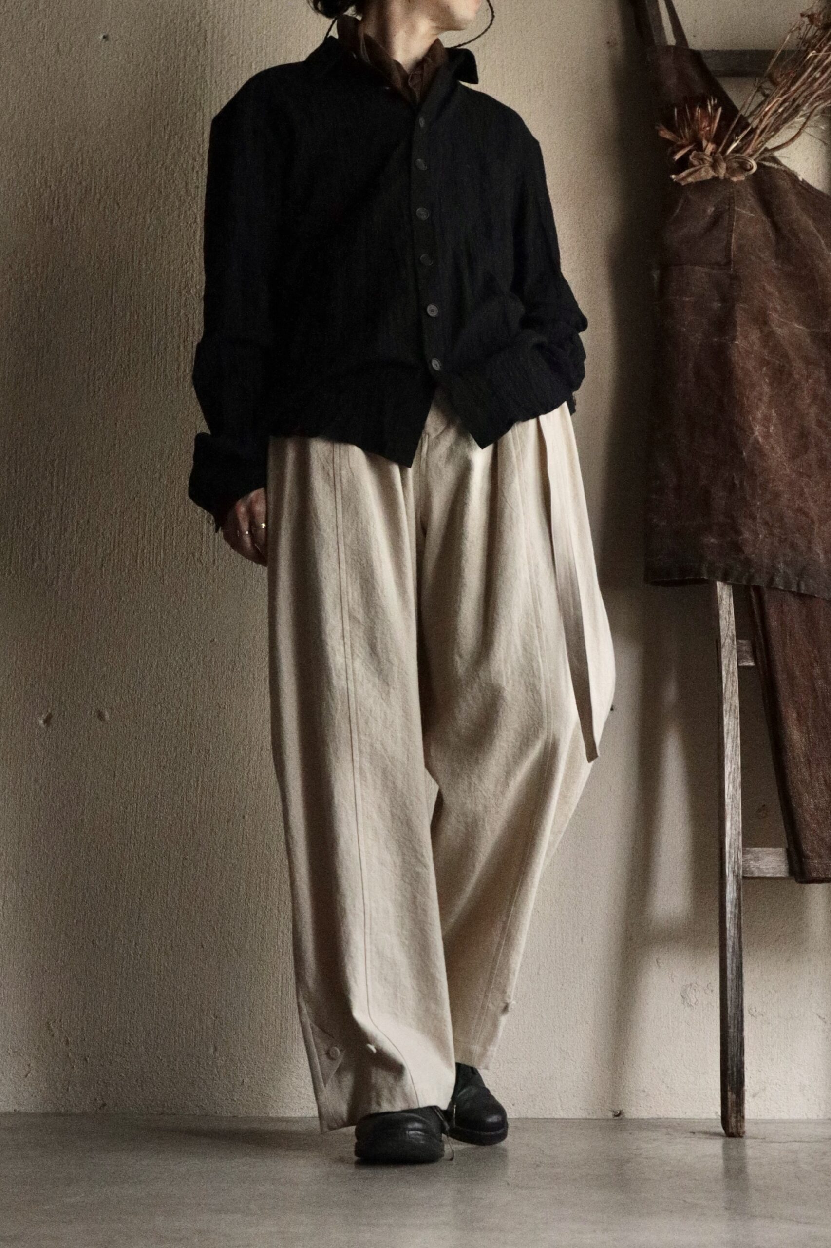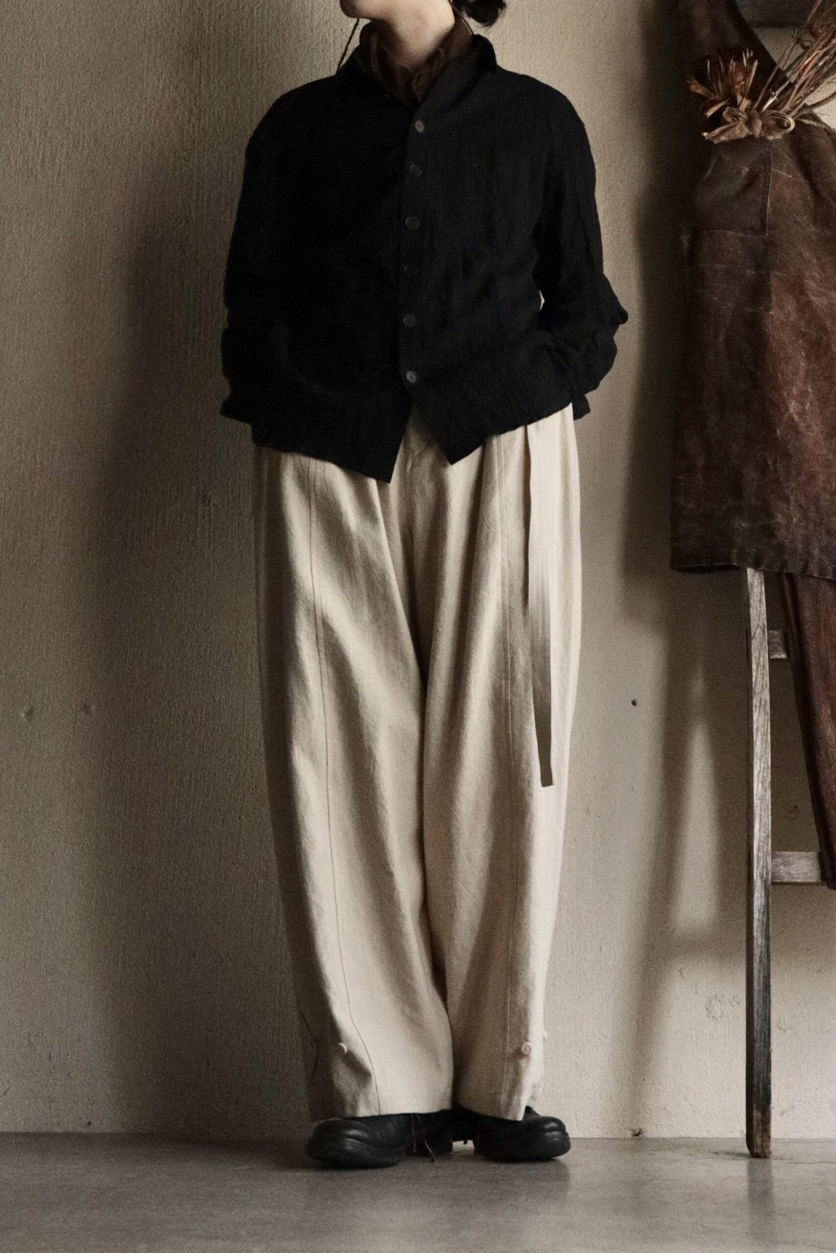 フォックスパンツ (beige) −Wool Linen Rough Elegance Tweed−の詳細