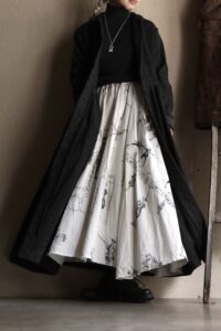 | スタイリング | Knit:SUSURI / ポエータハイネックセーター Skirt:YUTA MATSUOKA / Viyella Print Skirt Necklace:Atelier Inscrire / alba – Antique Miller Necklace Shoes:EVARIST BERTRAN / EB2T High Heel Derby Shoes Hat:MALEZA / Risco-Felt |