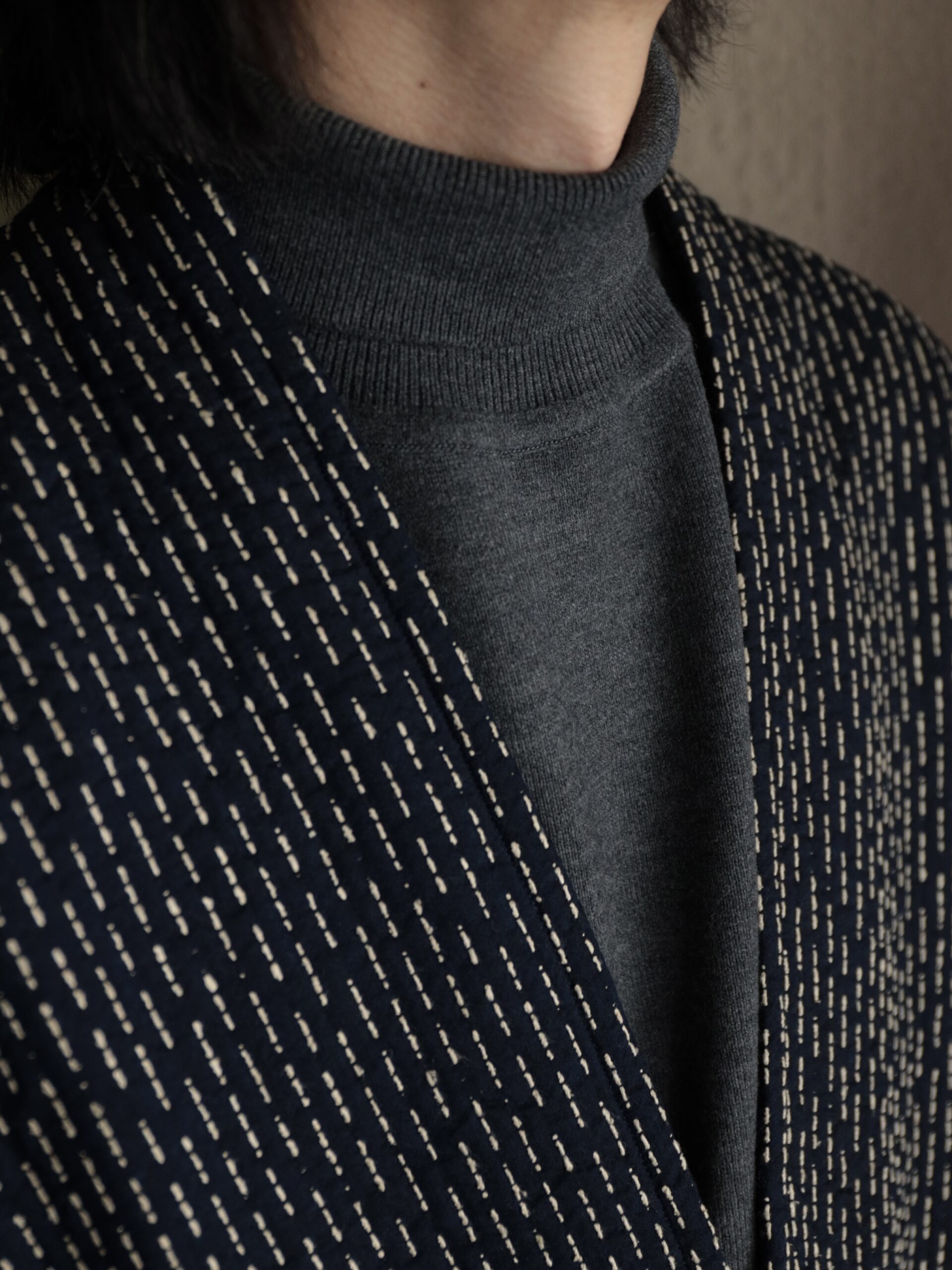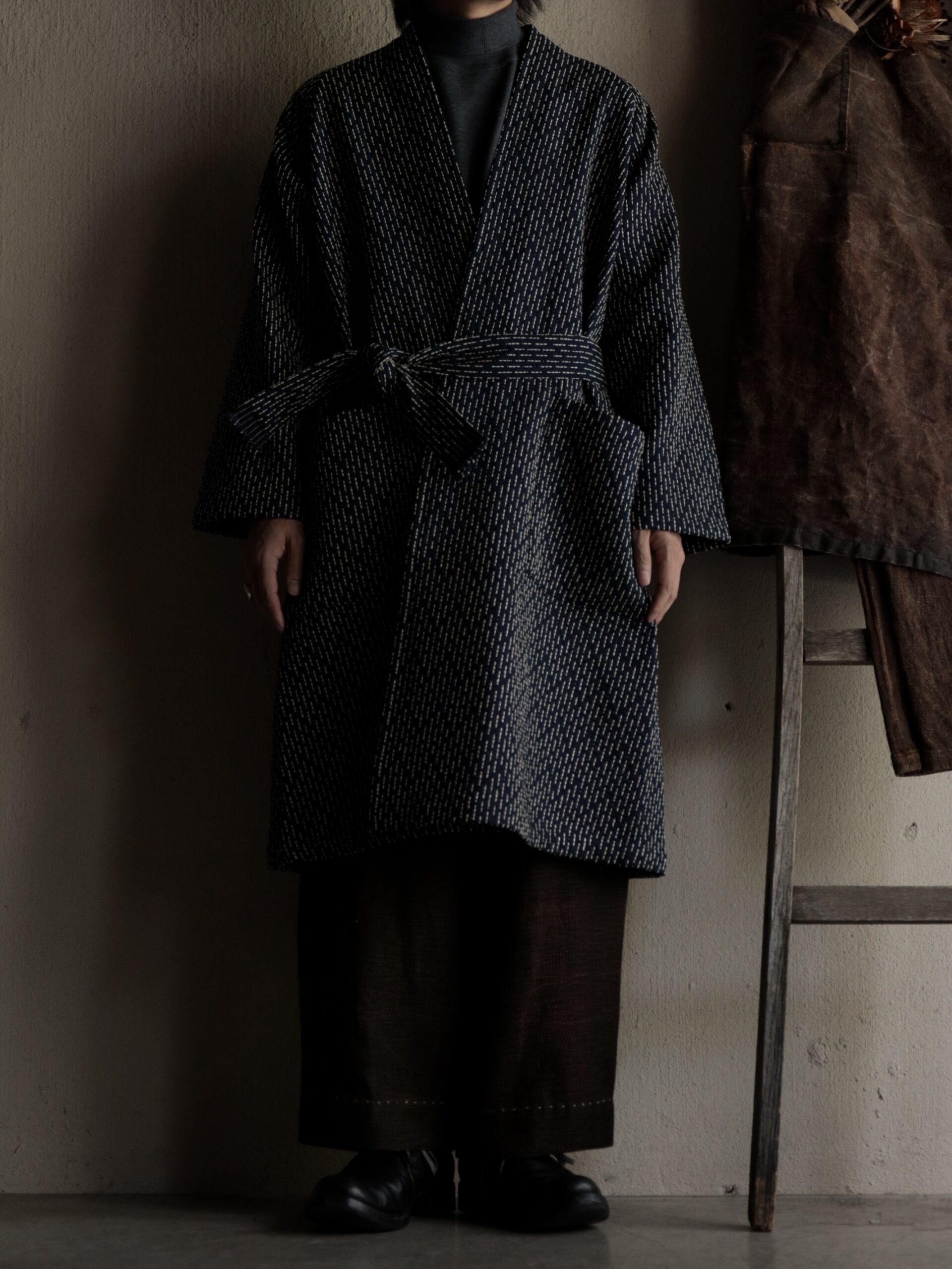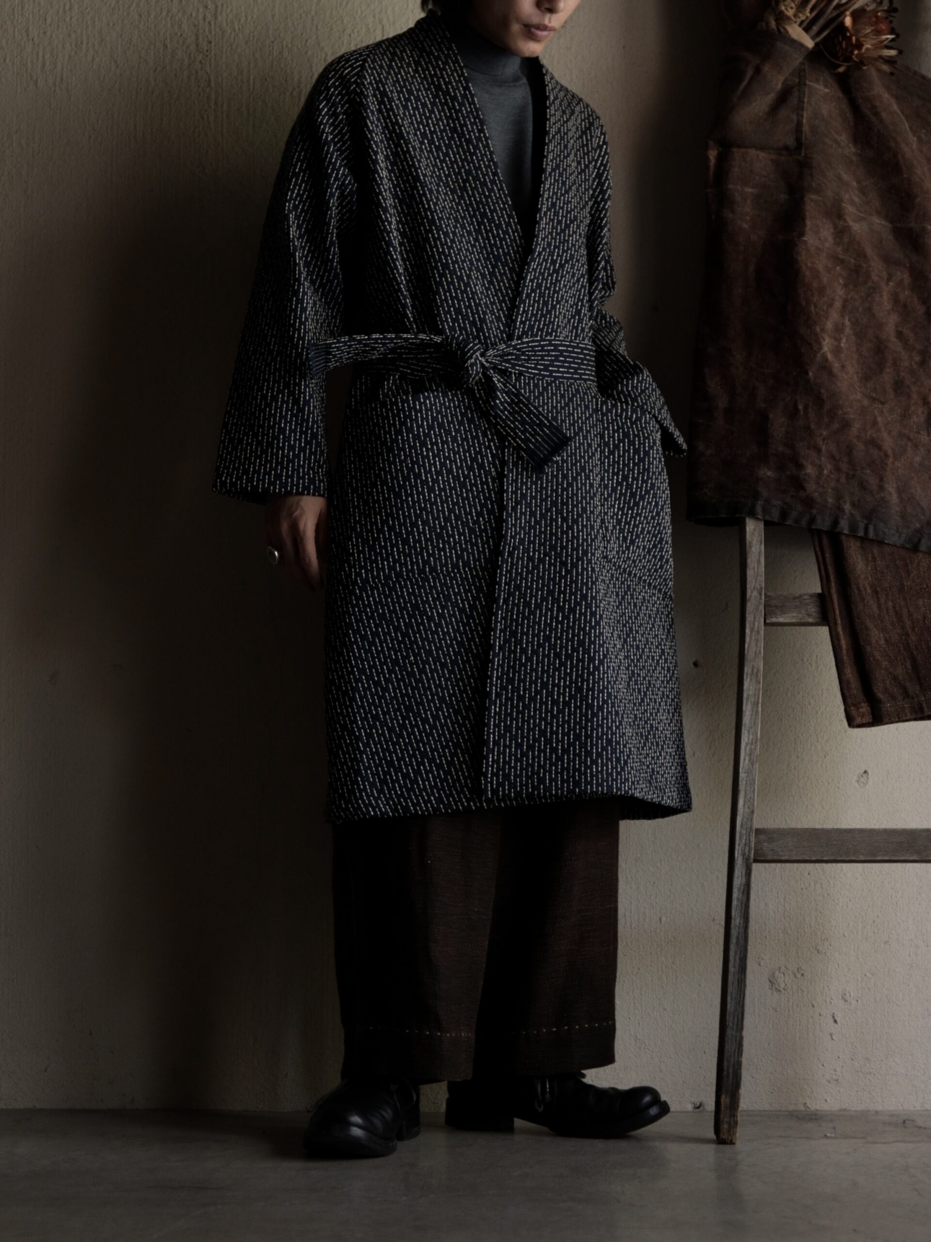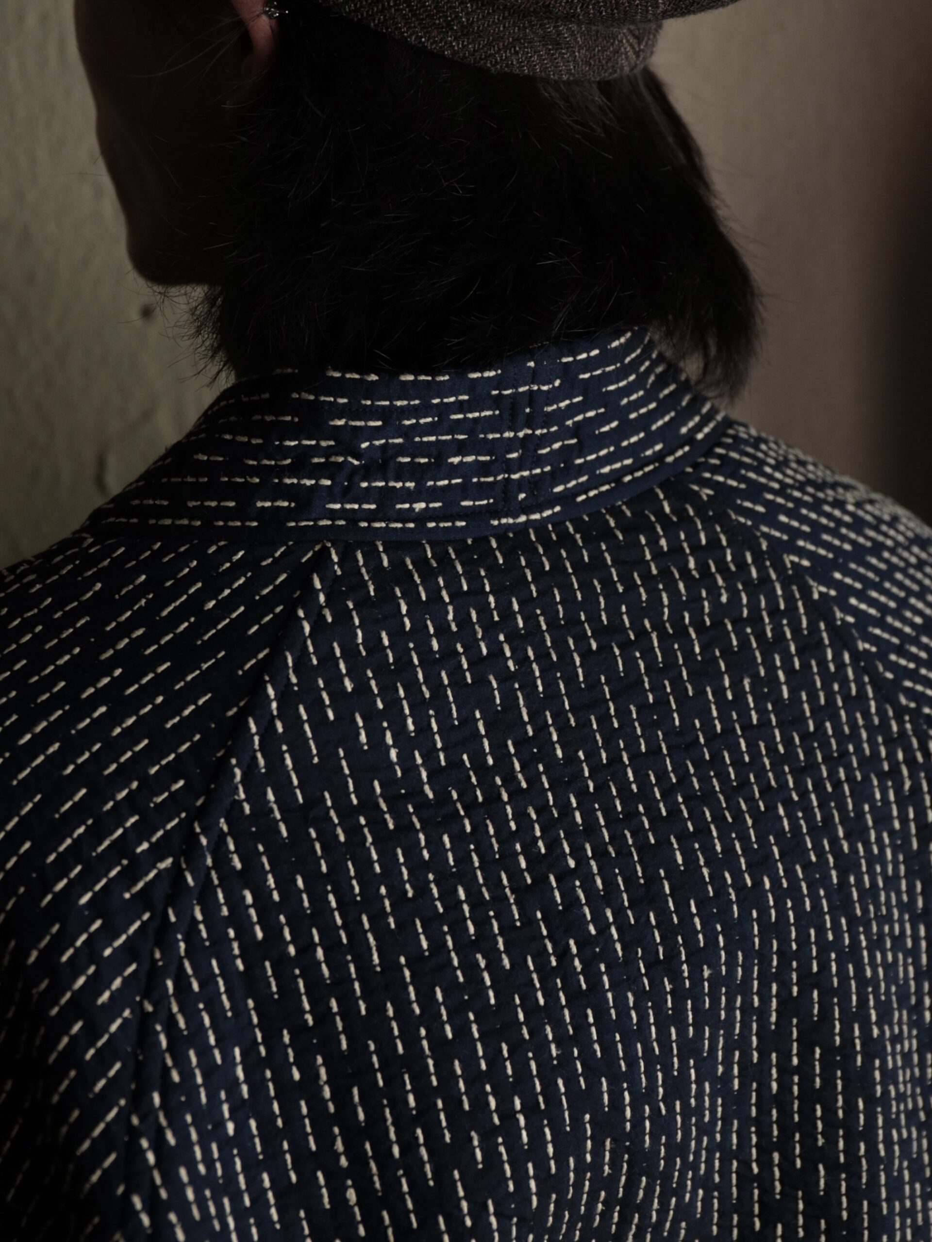 中わた刺し子織羽織コート (濃紺) − CT-42 −