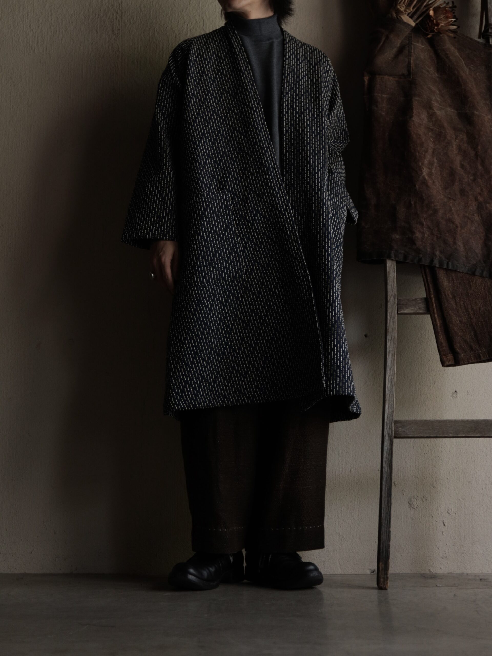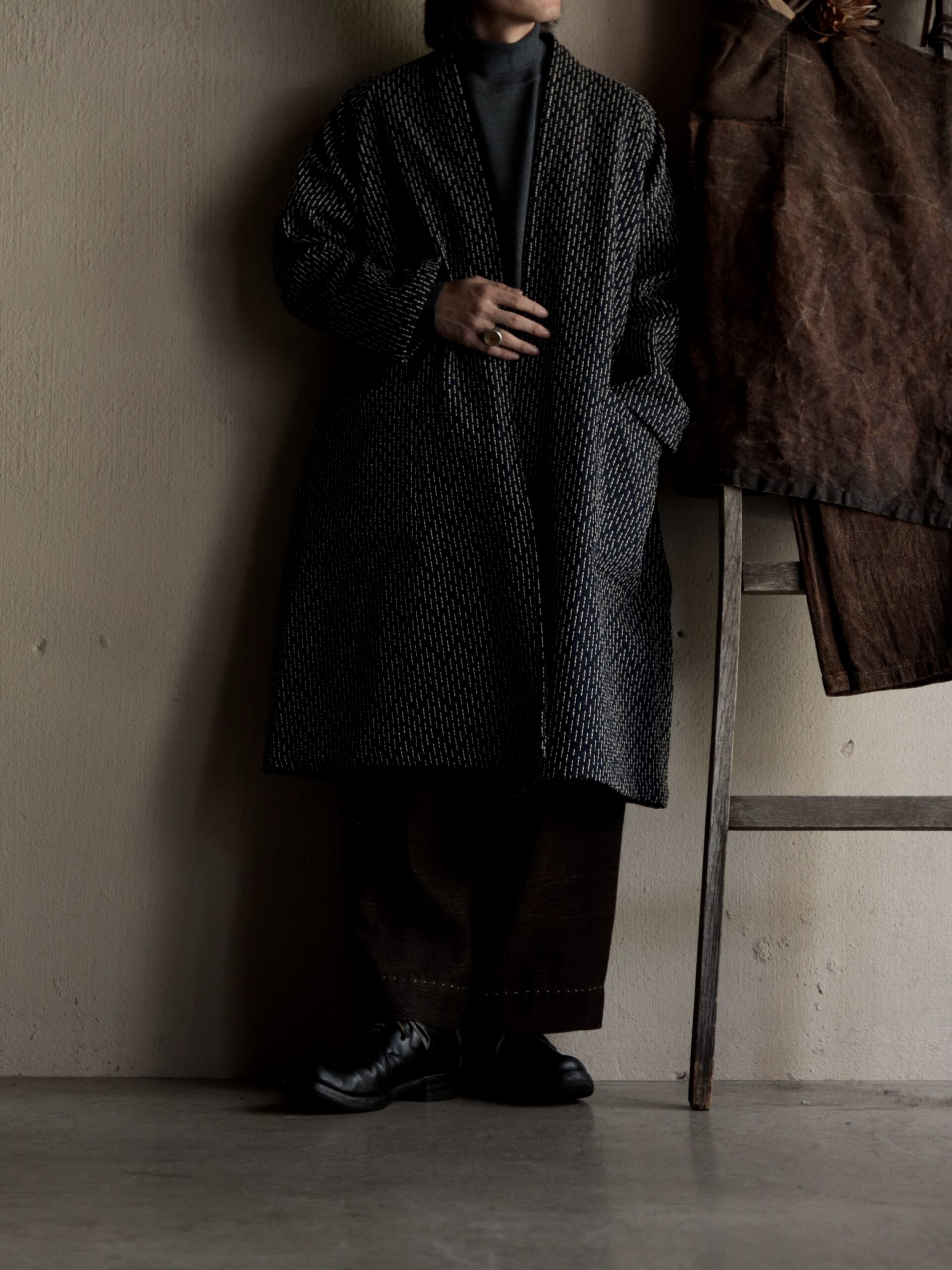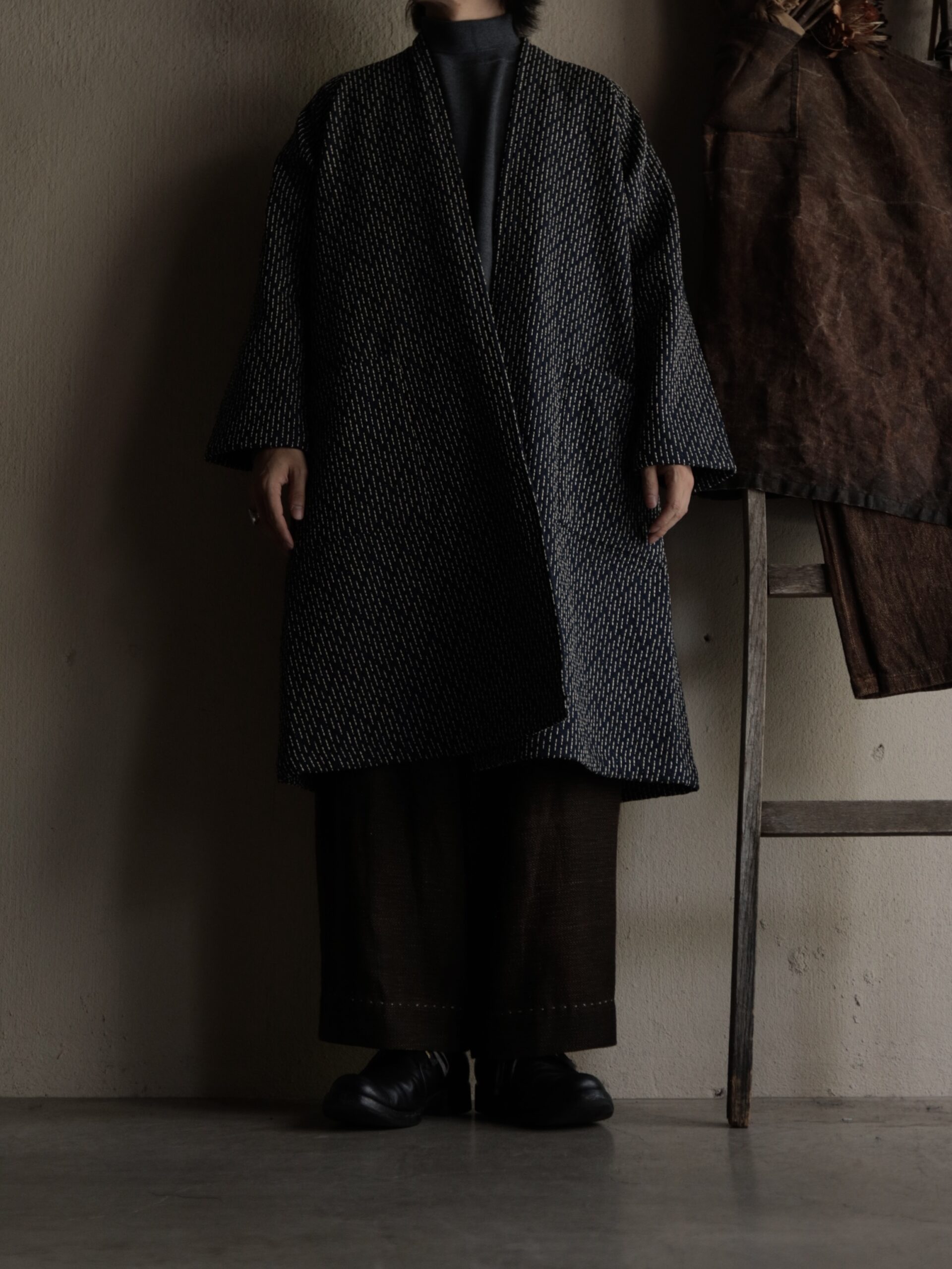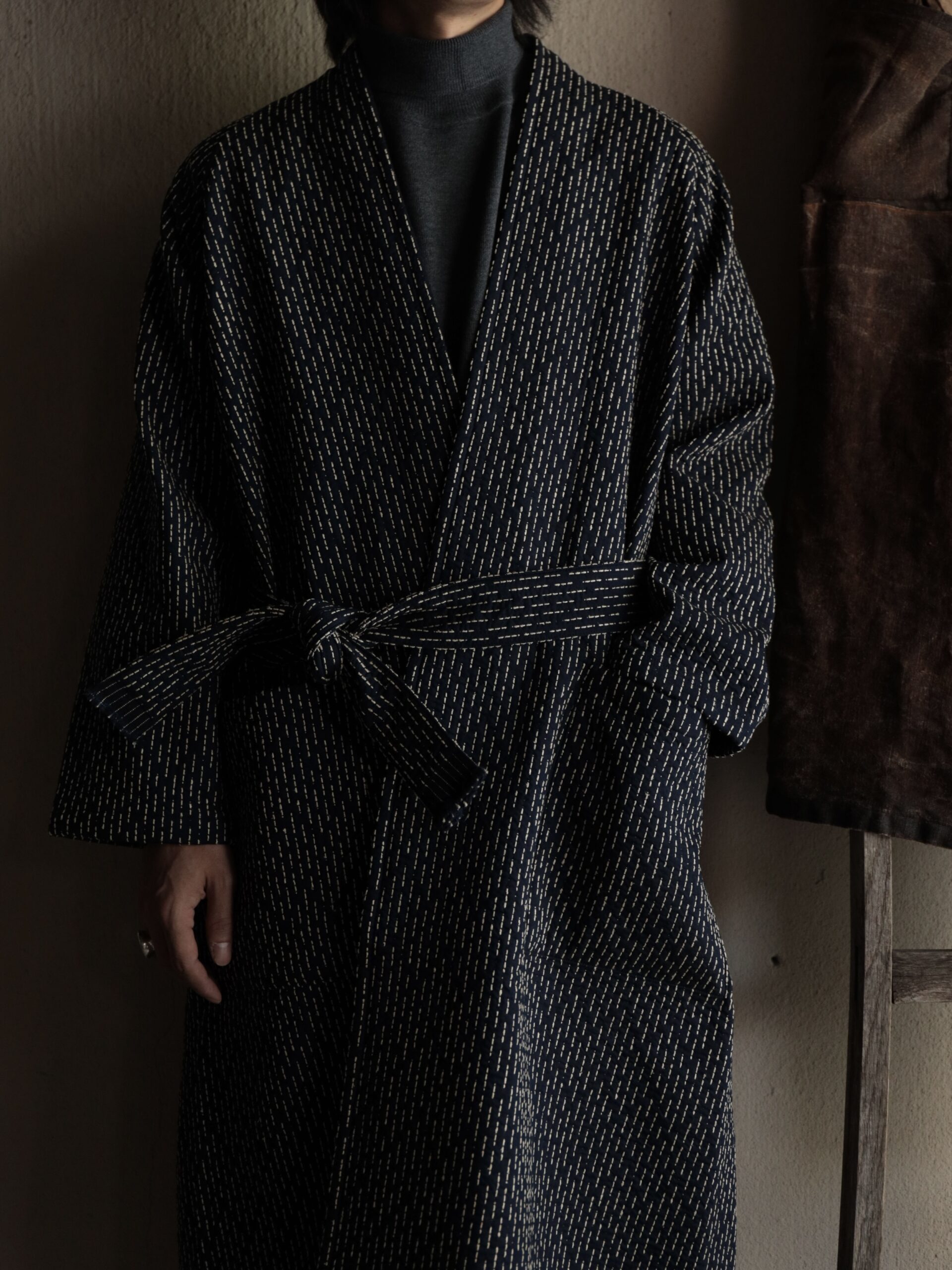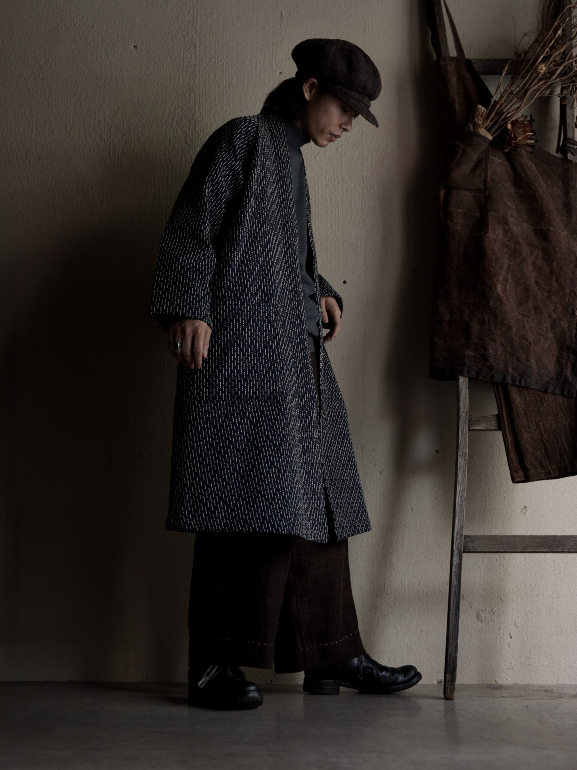 中わた刺し子織羽織コート (濃紺) − CT-42 −