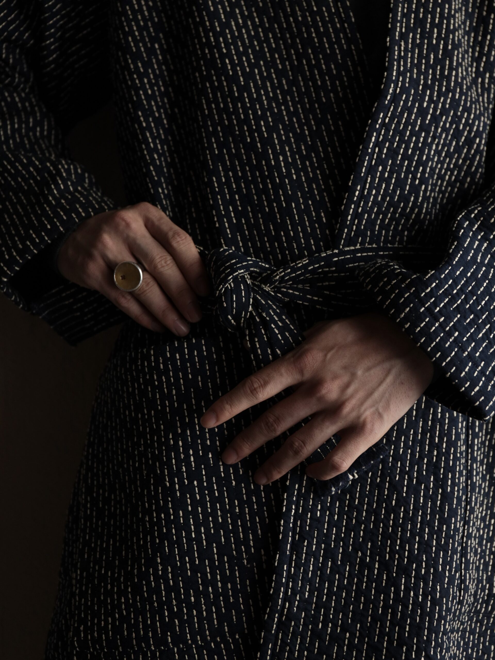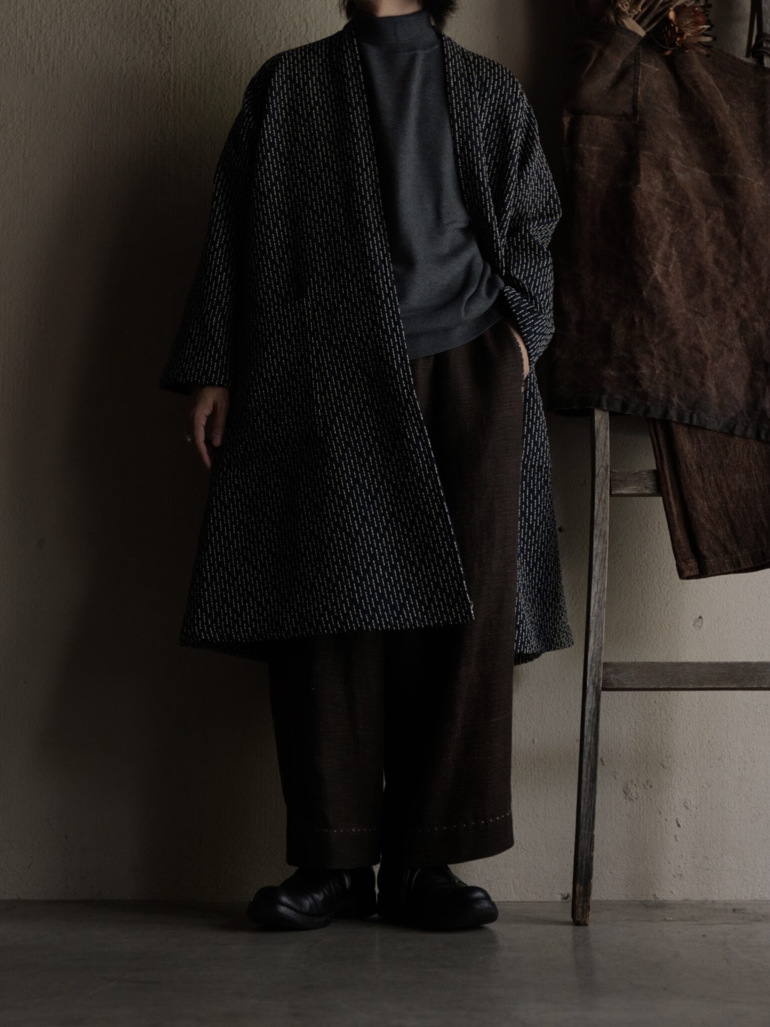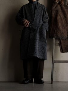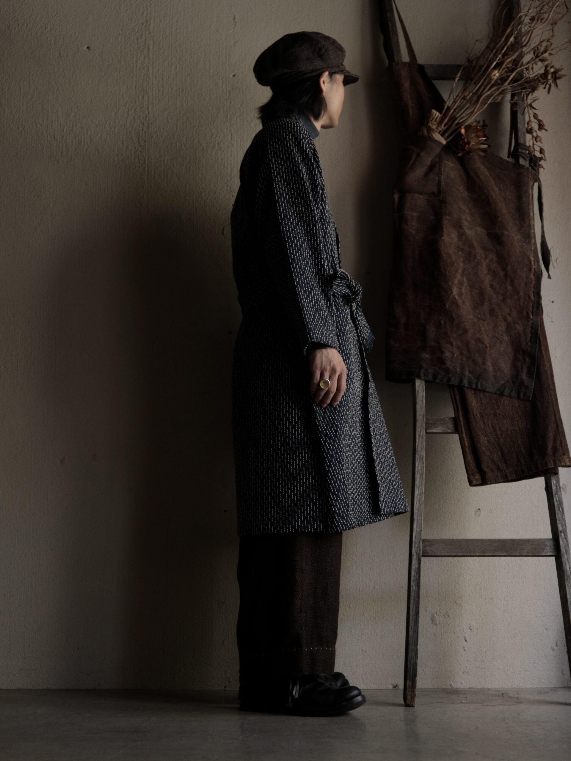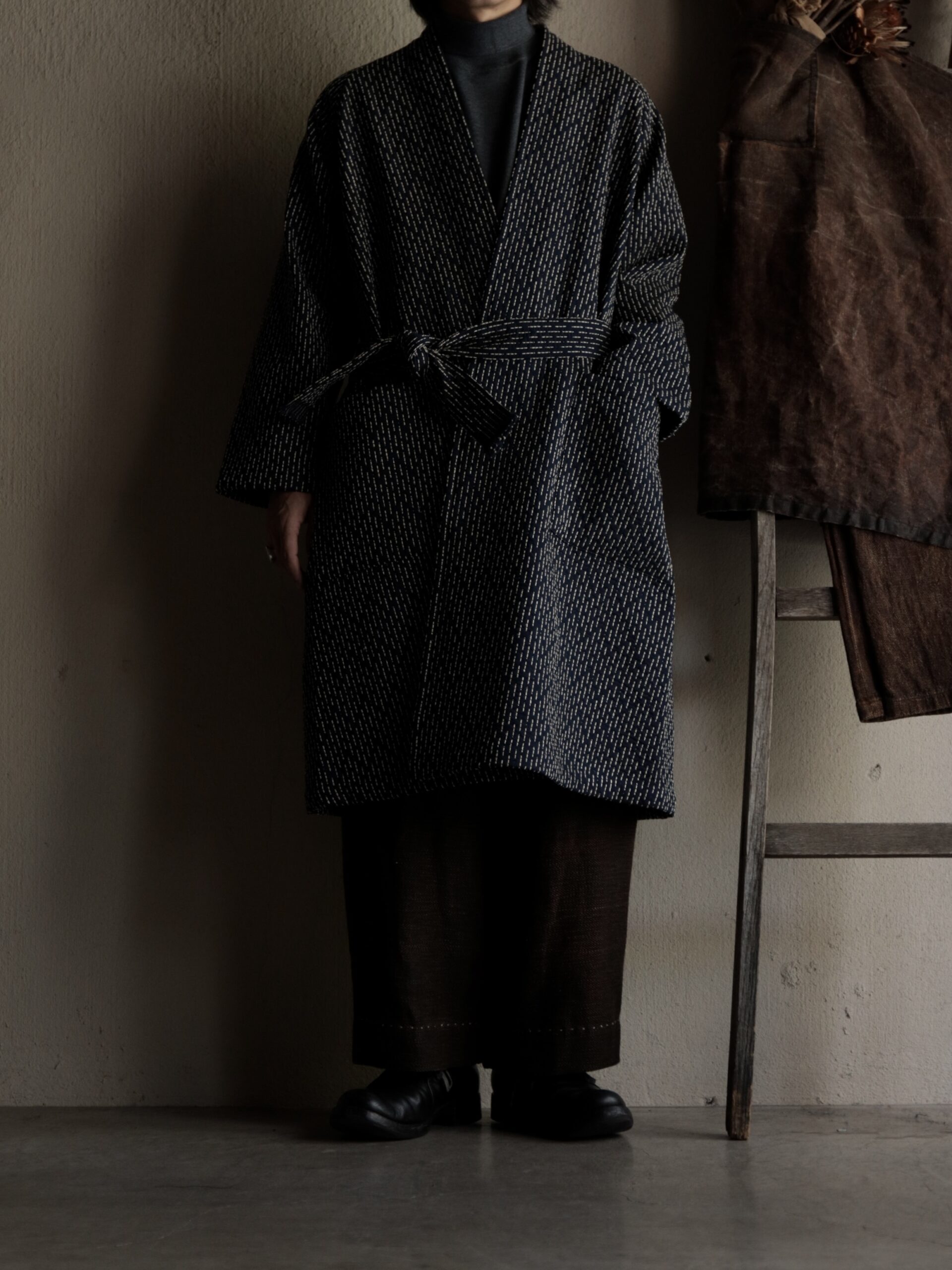 中わた刺し子織羽織コート (濃紺) − CT-42 −