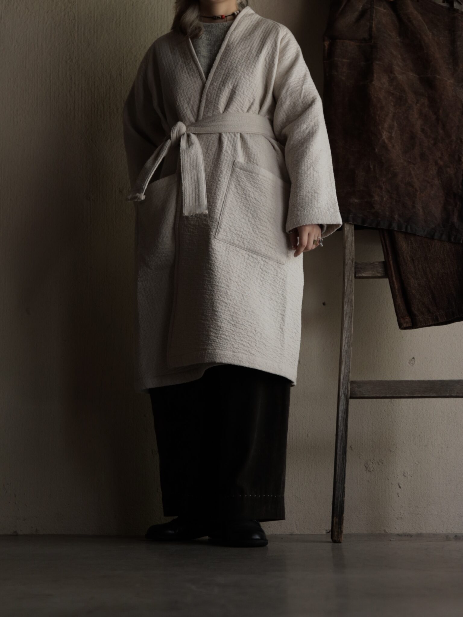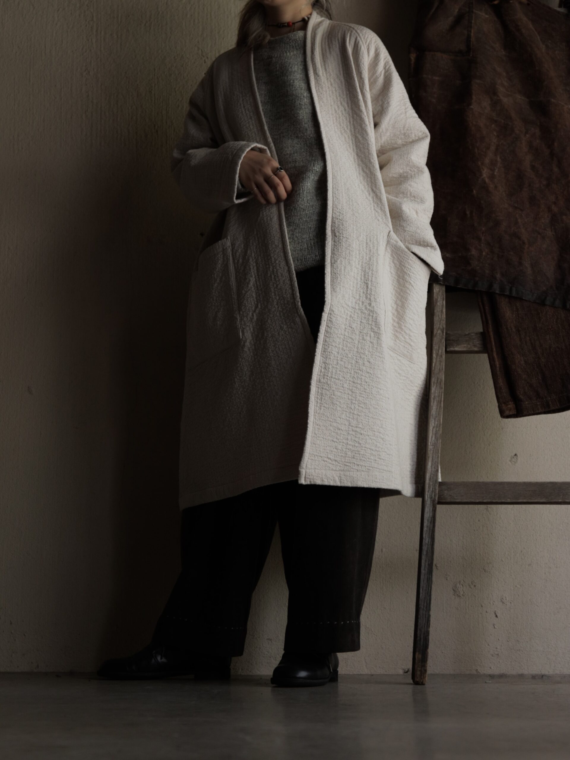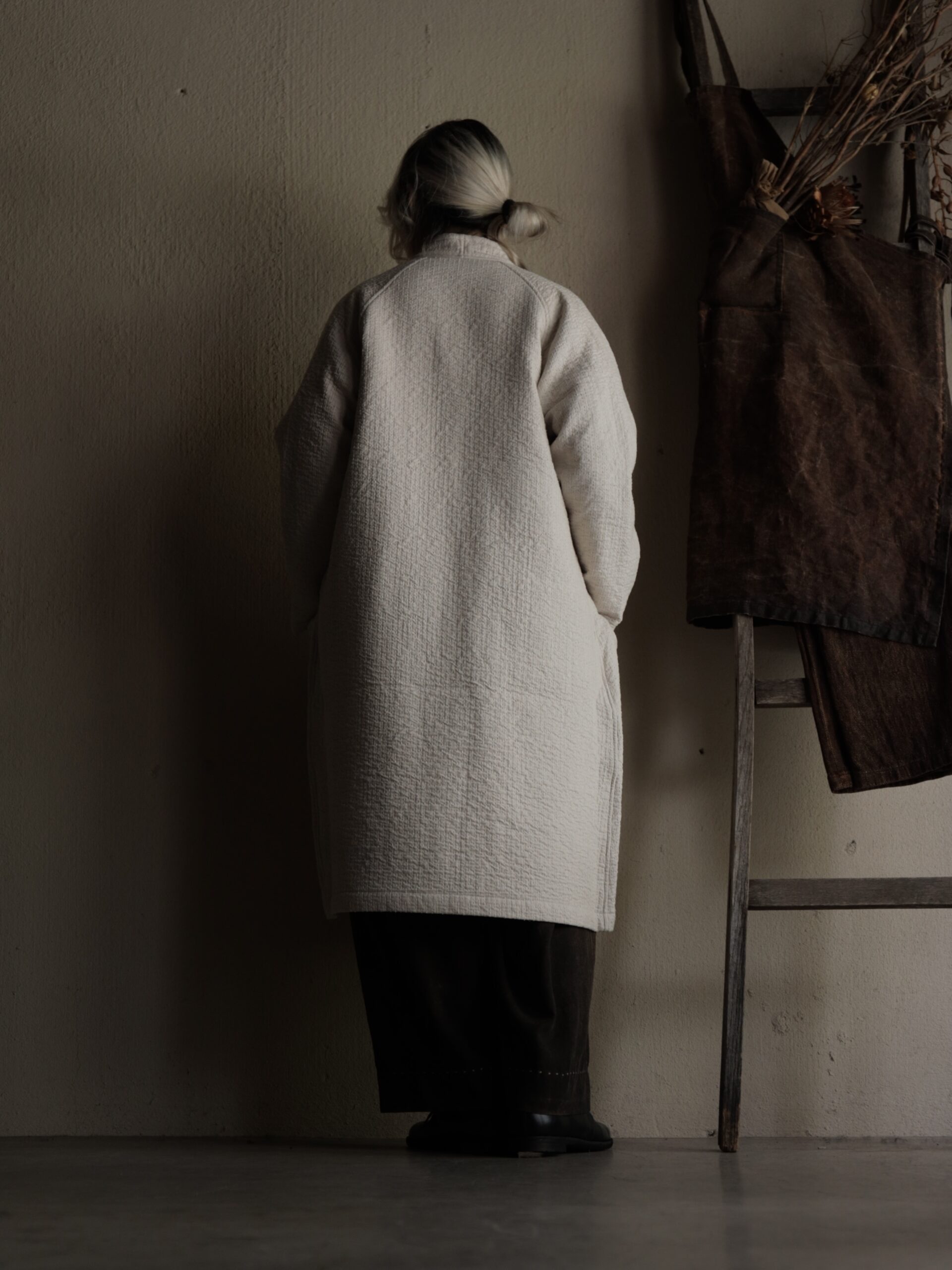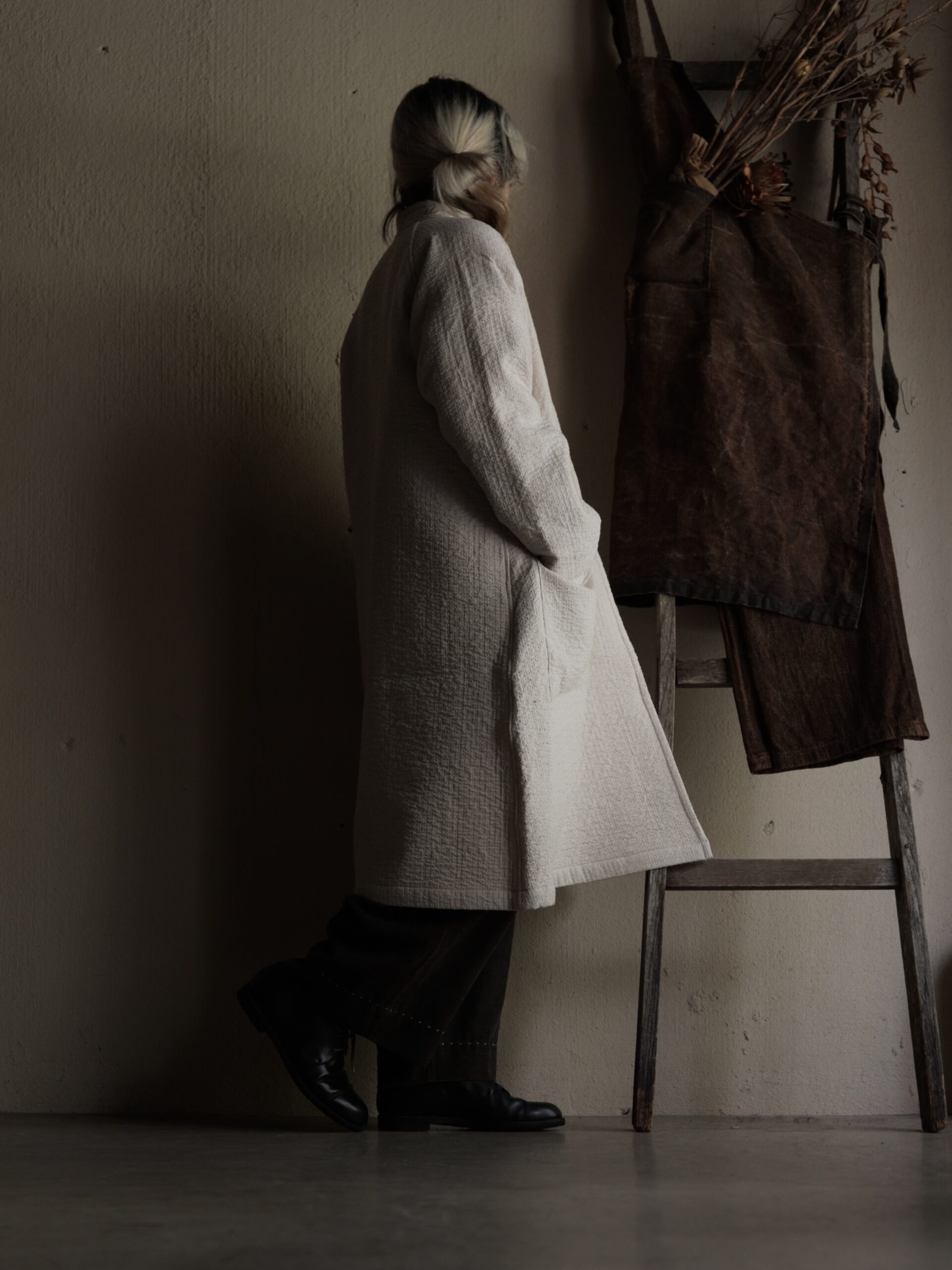 中わた刺し子織羽織コート (生成) − CT-42 −