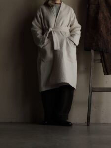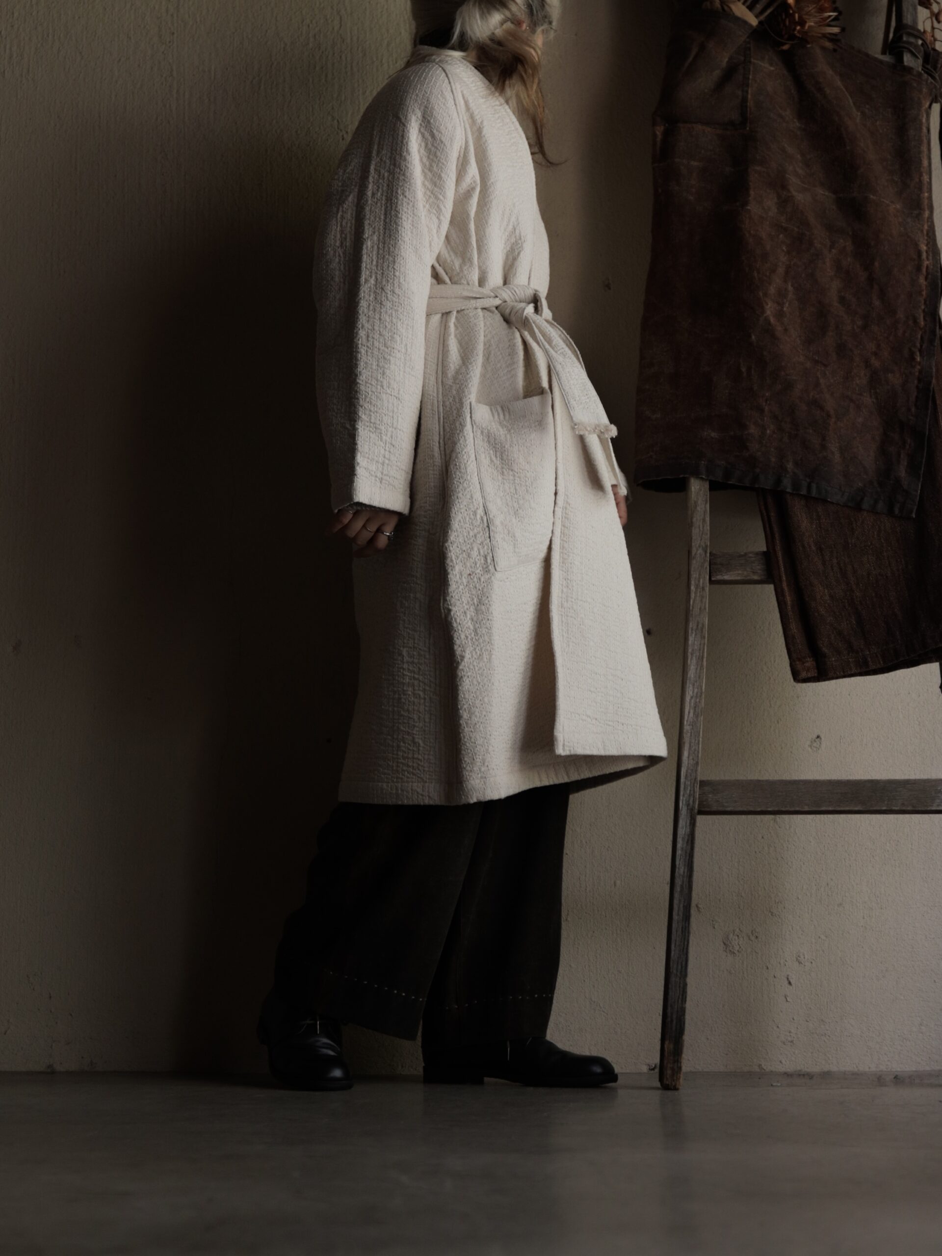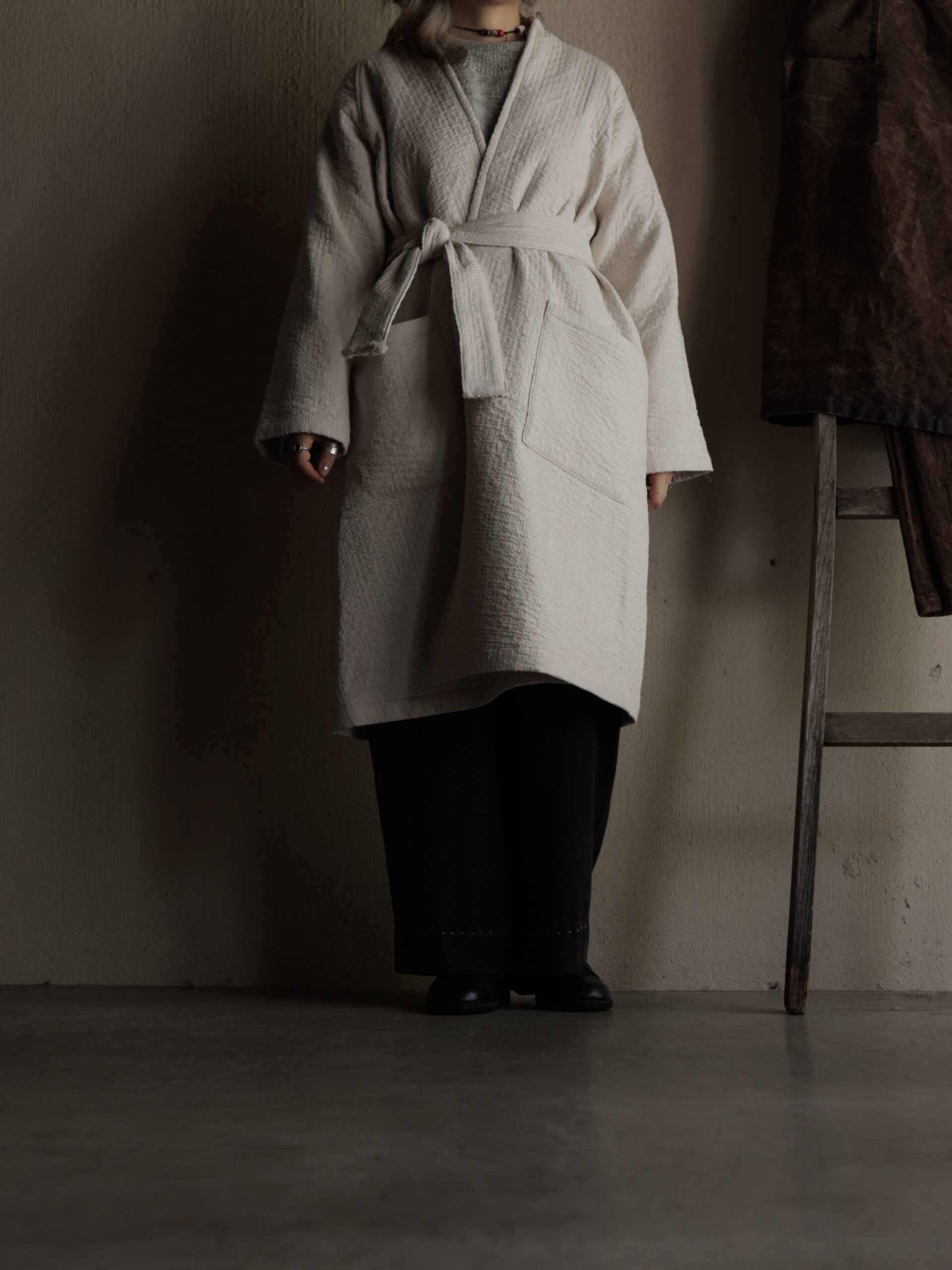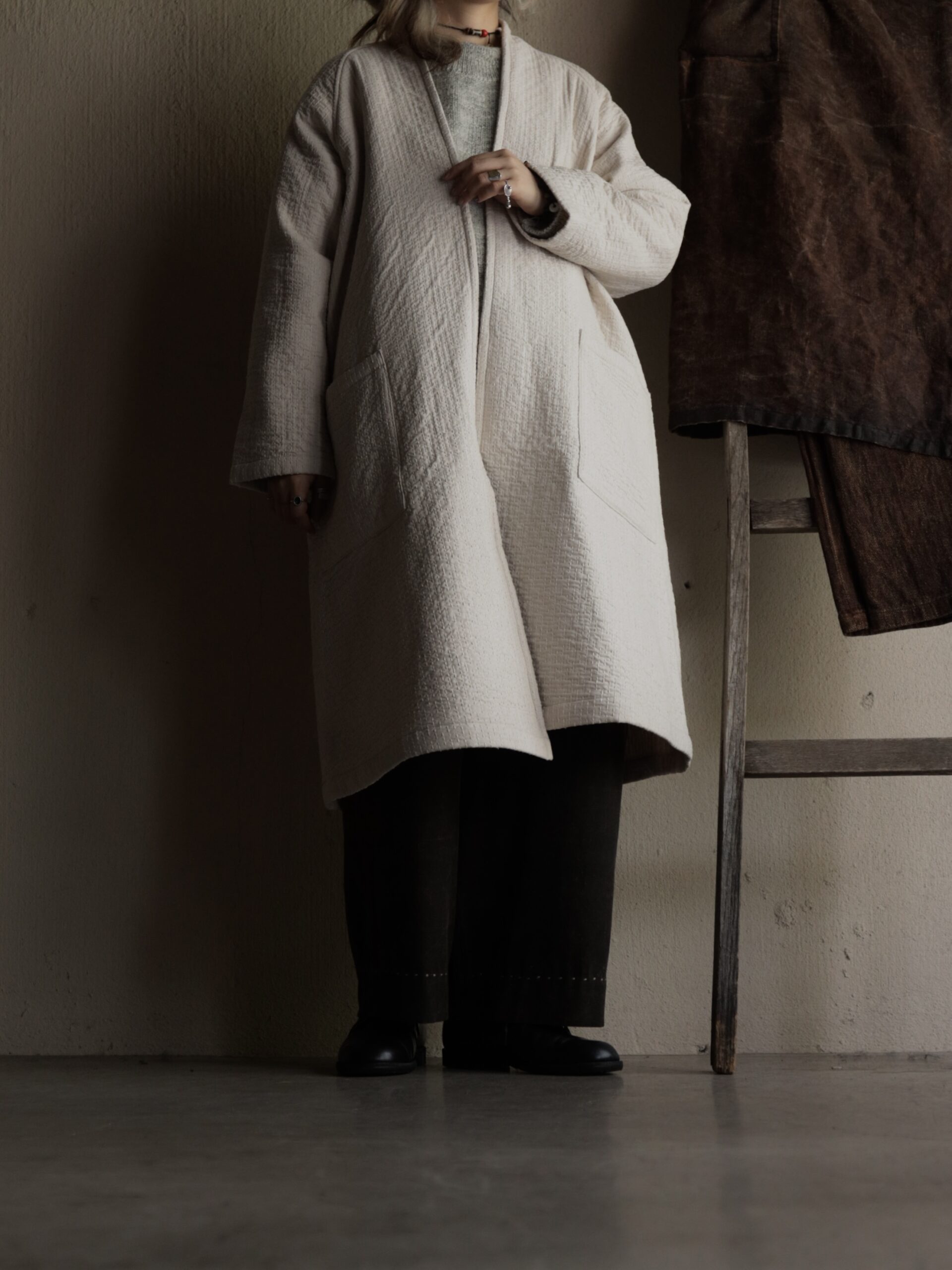 中わた刺し子織羽織コート (生成) − CT-42 −