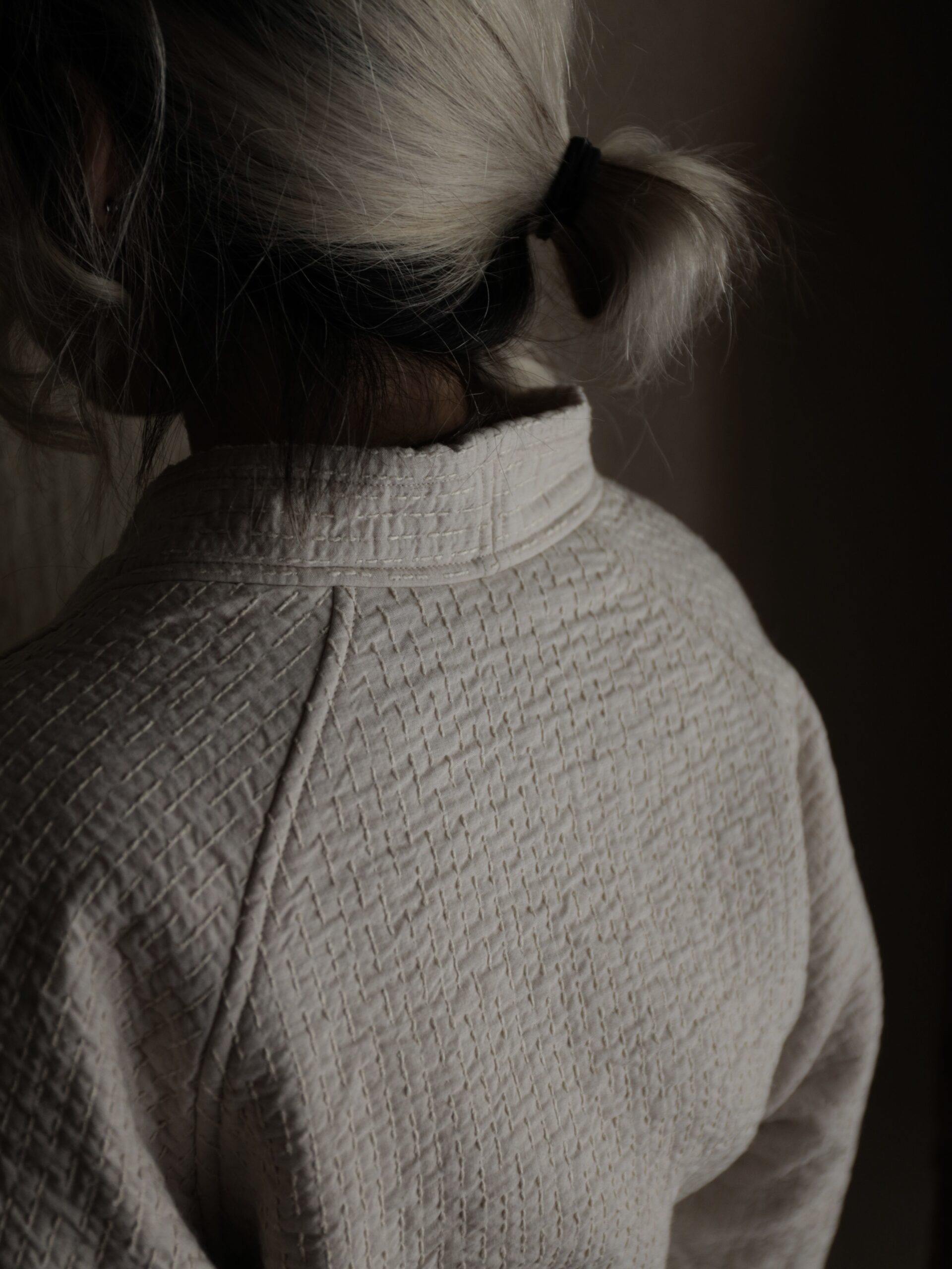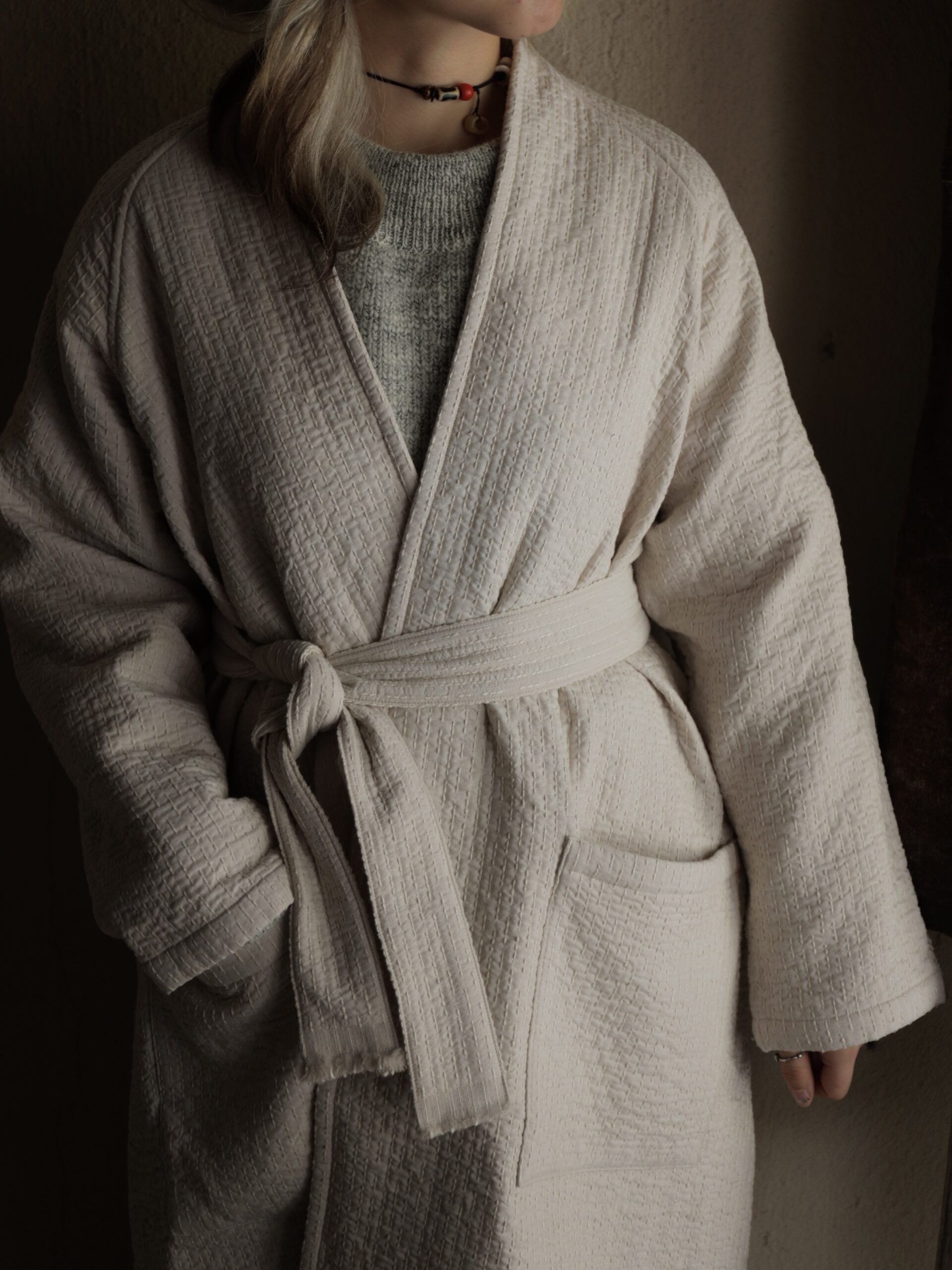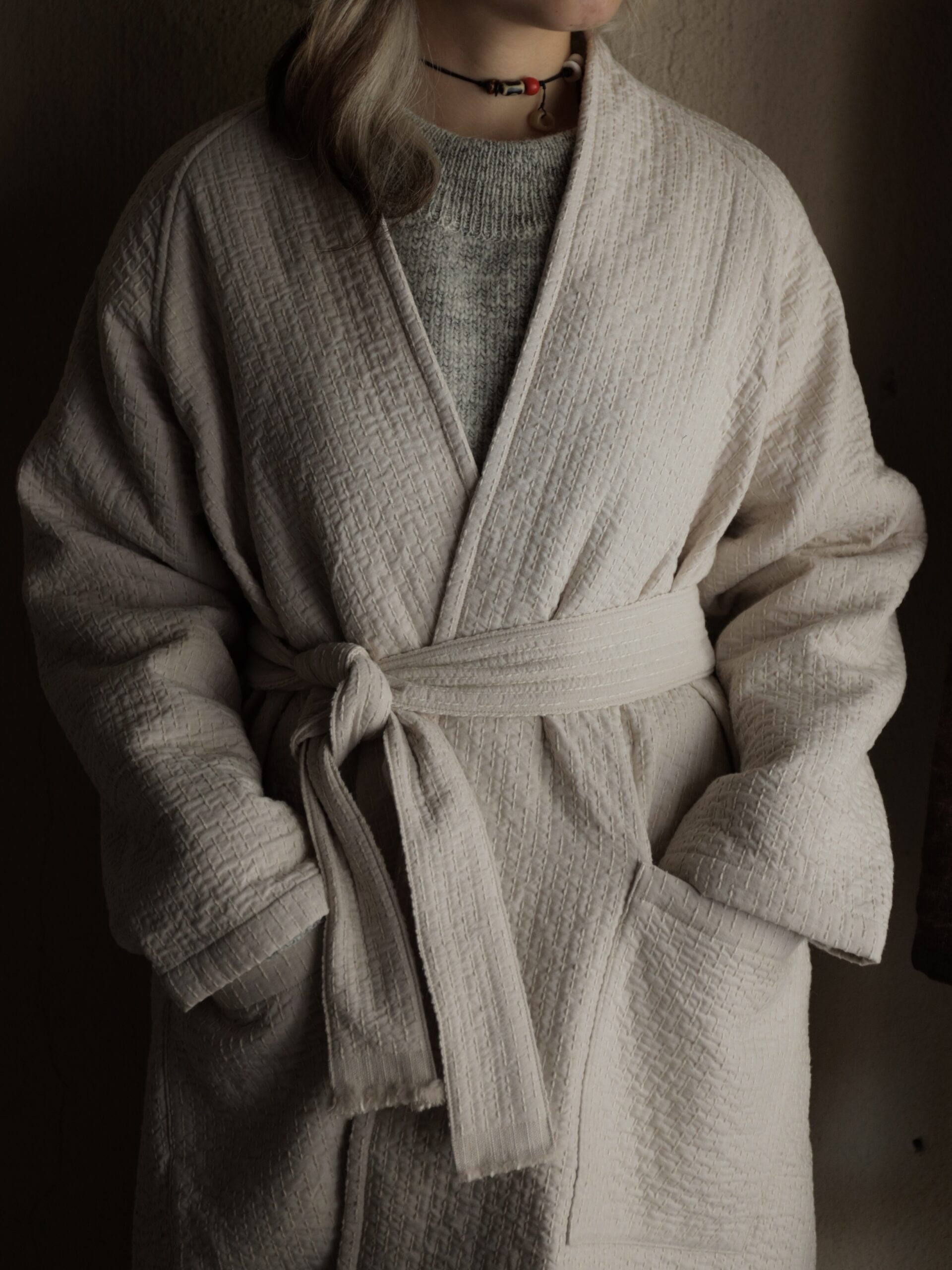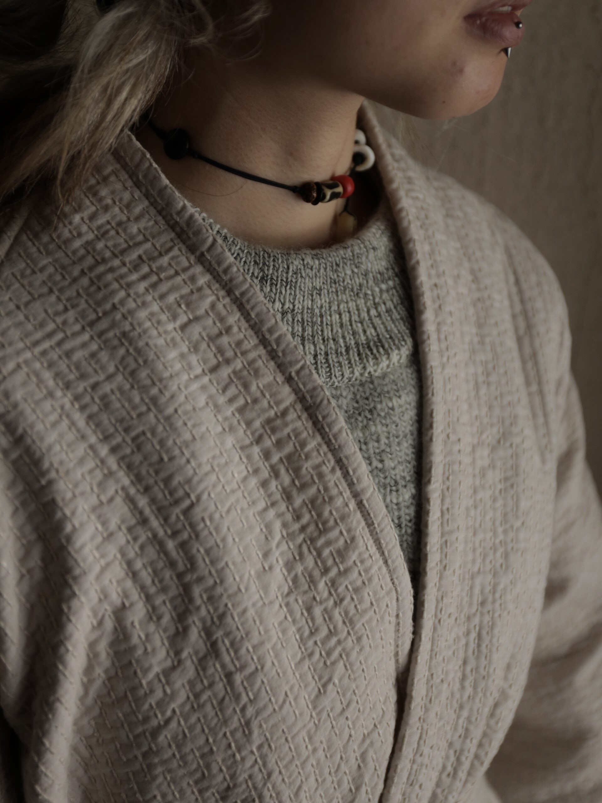 中わた刺し子織羽織コート (生成) − CT-42 −