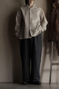 通常の亜麻苧麻パンツより股上を浅めに取る事で