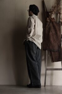 着用を繰り返すことでまるで古布のような風合いに経年変化していきます。