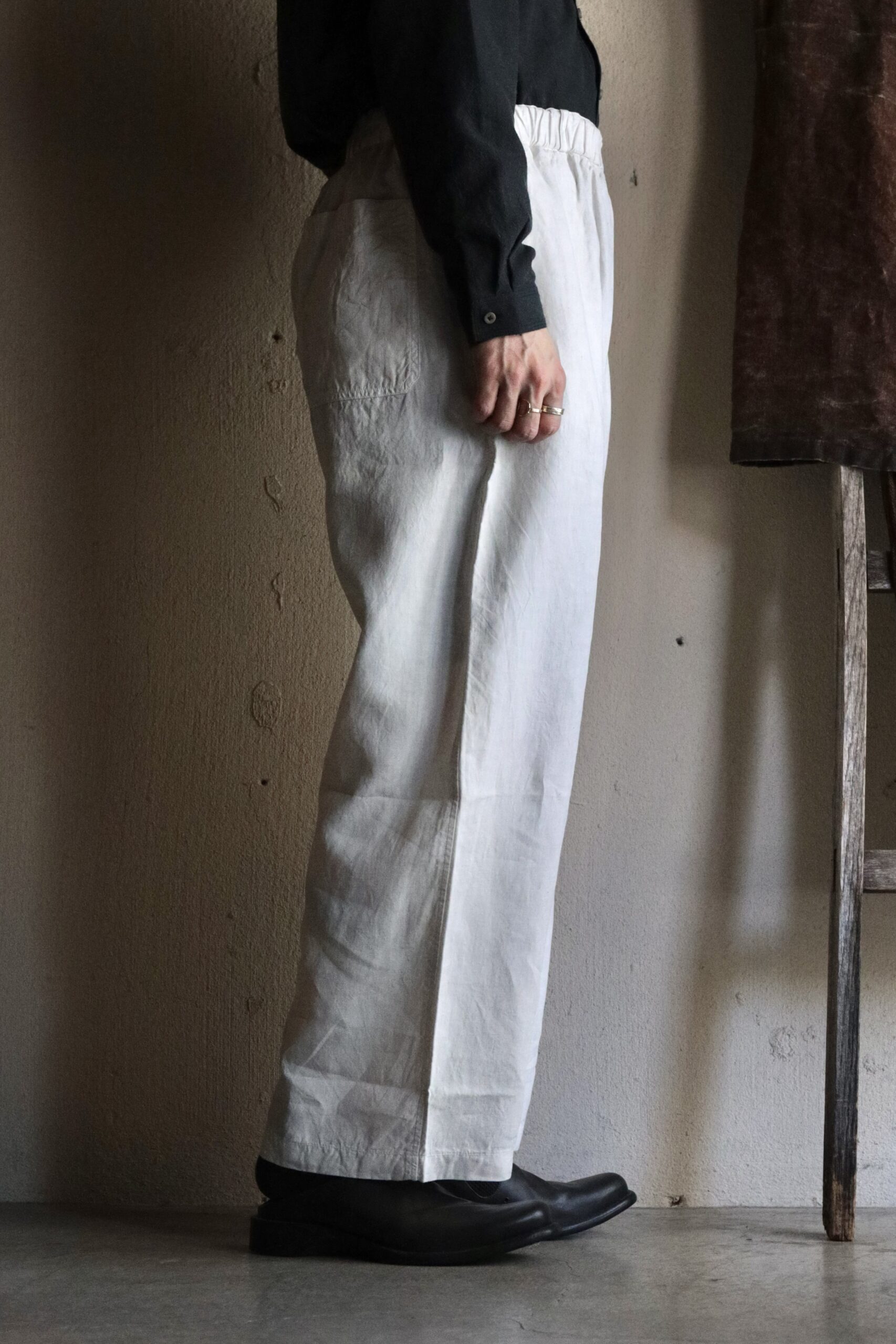Tシャツ一枚と合わせるだけで絵になるパンツです。