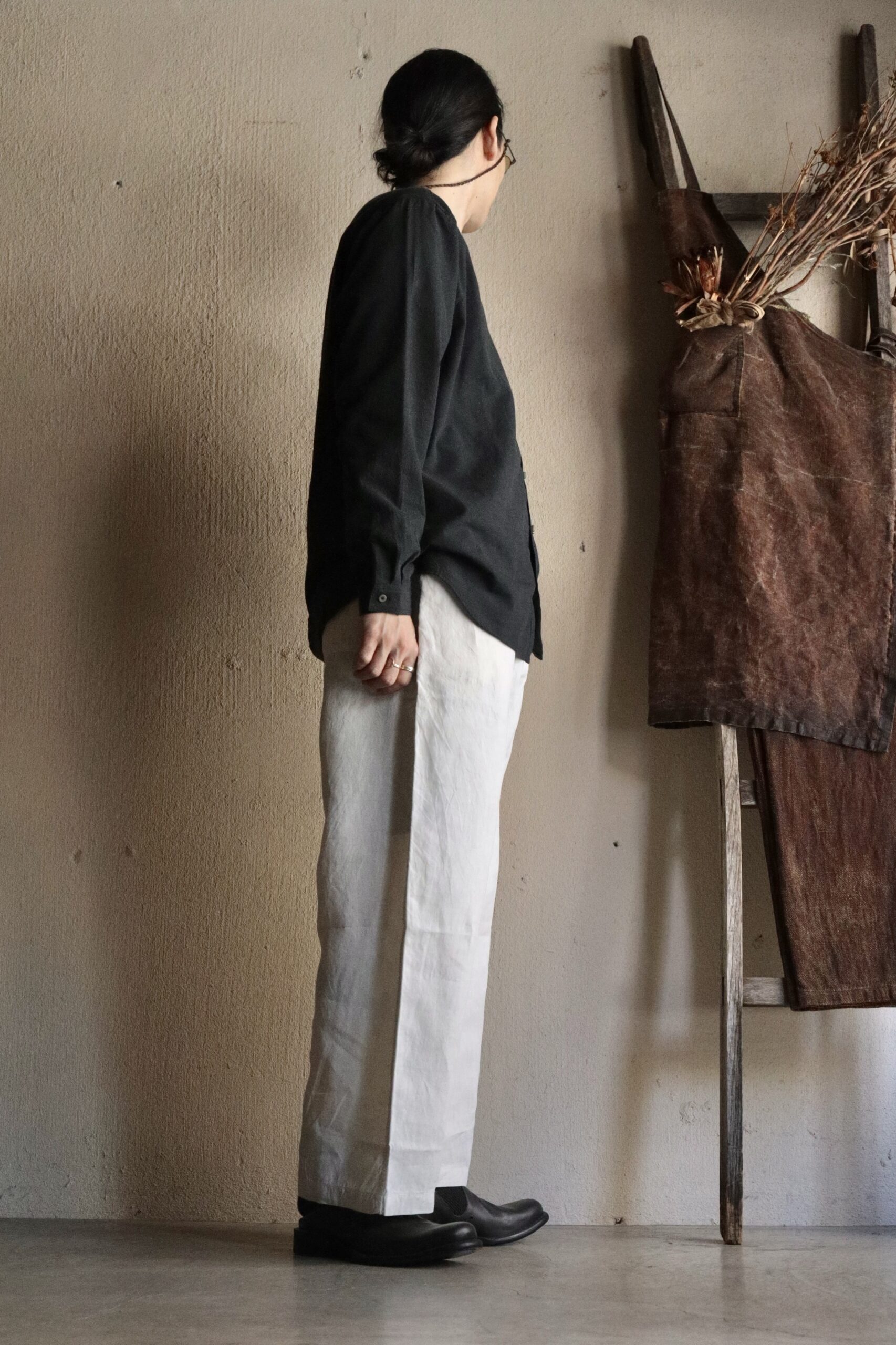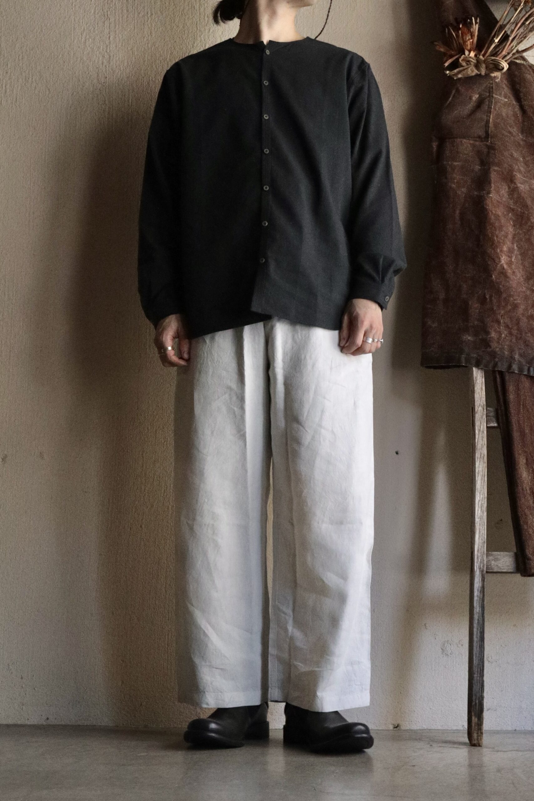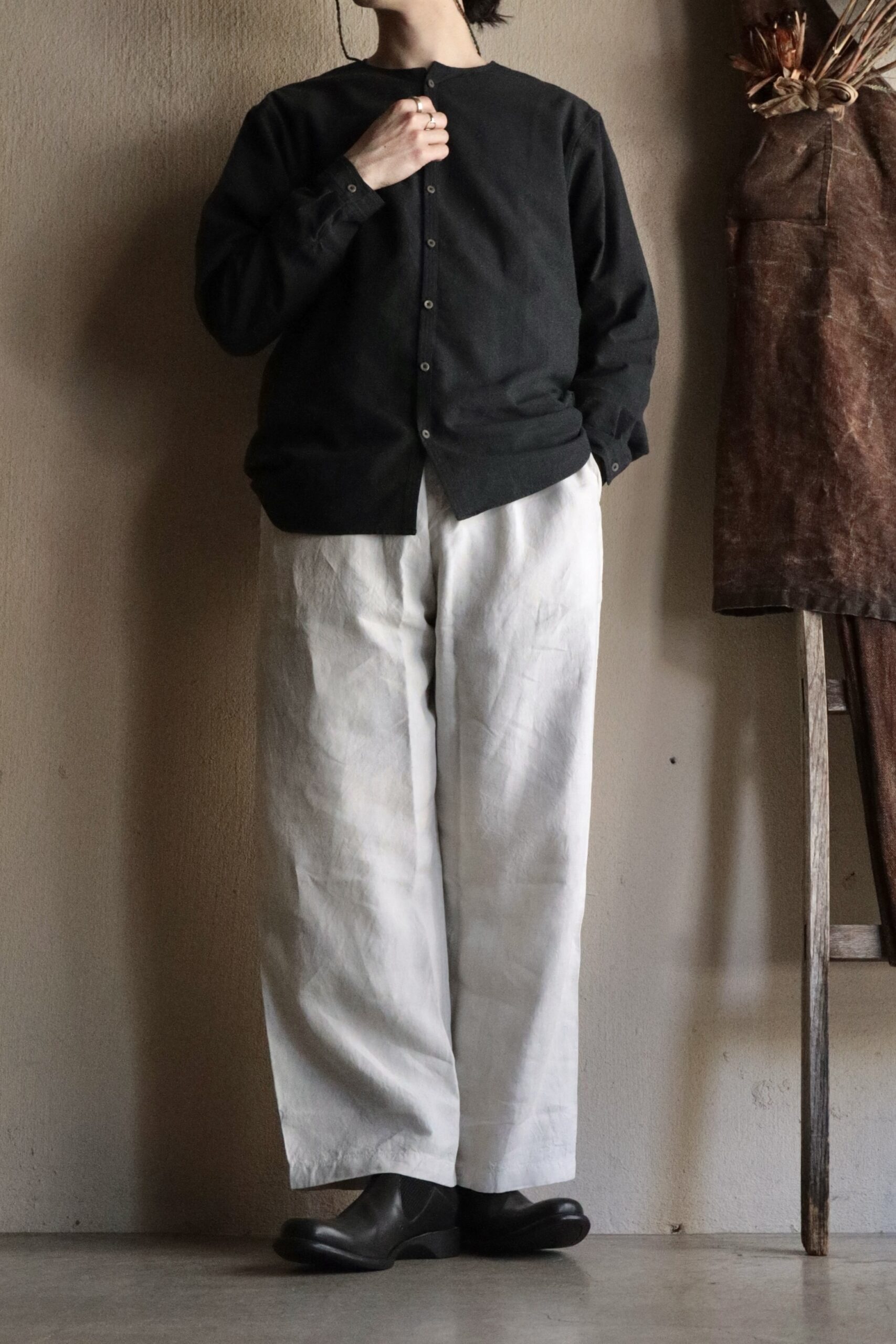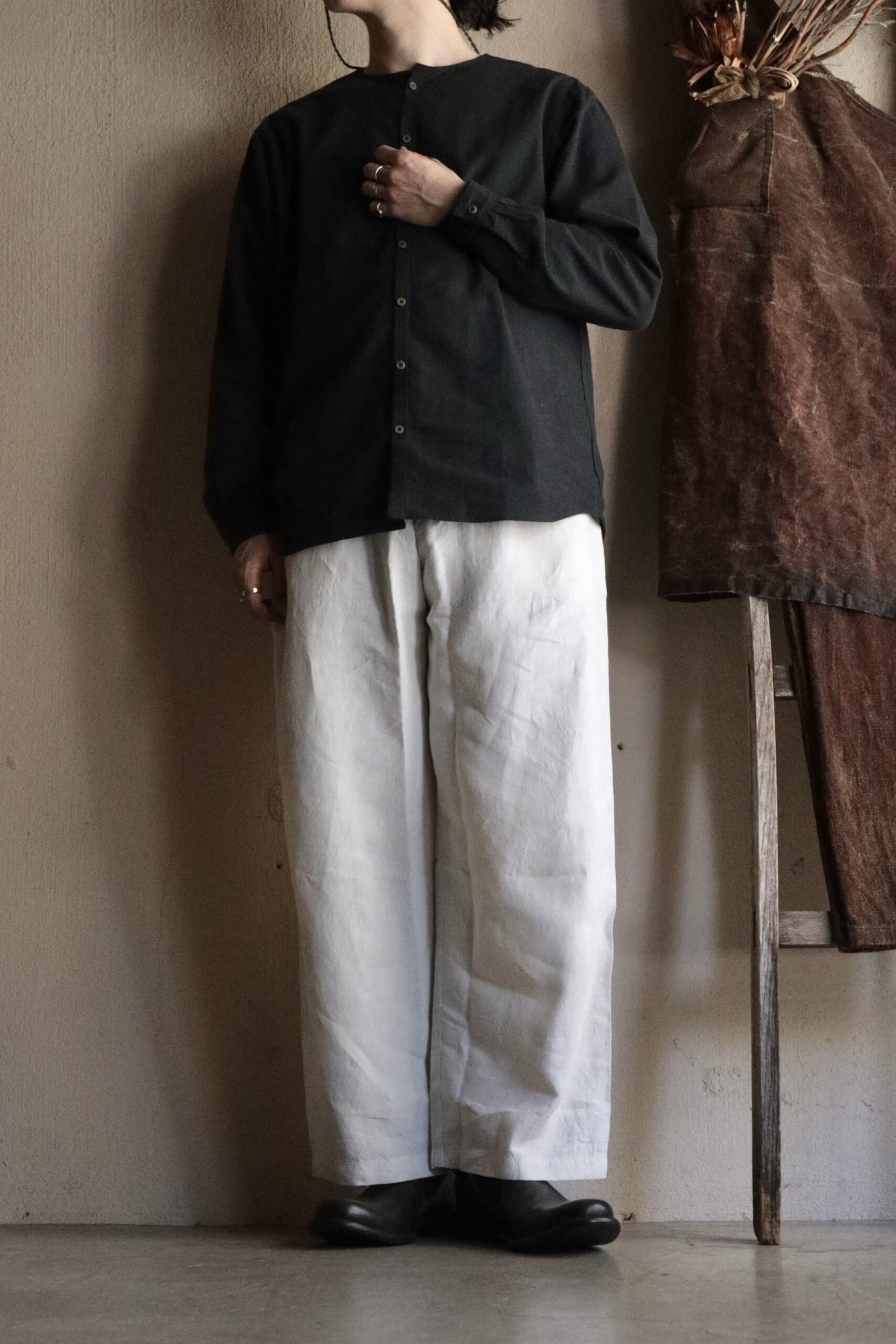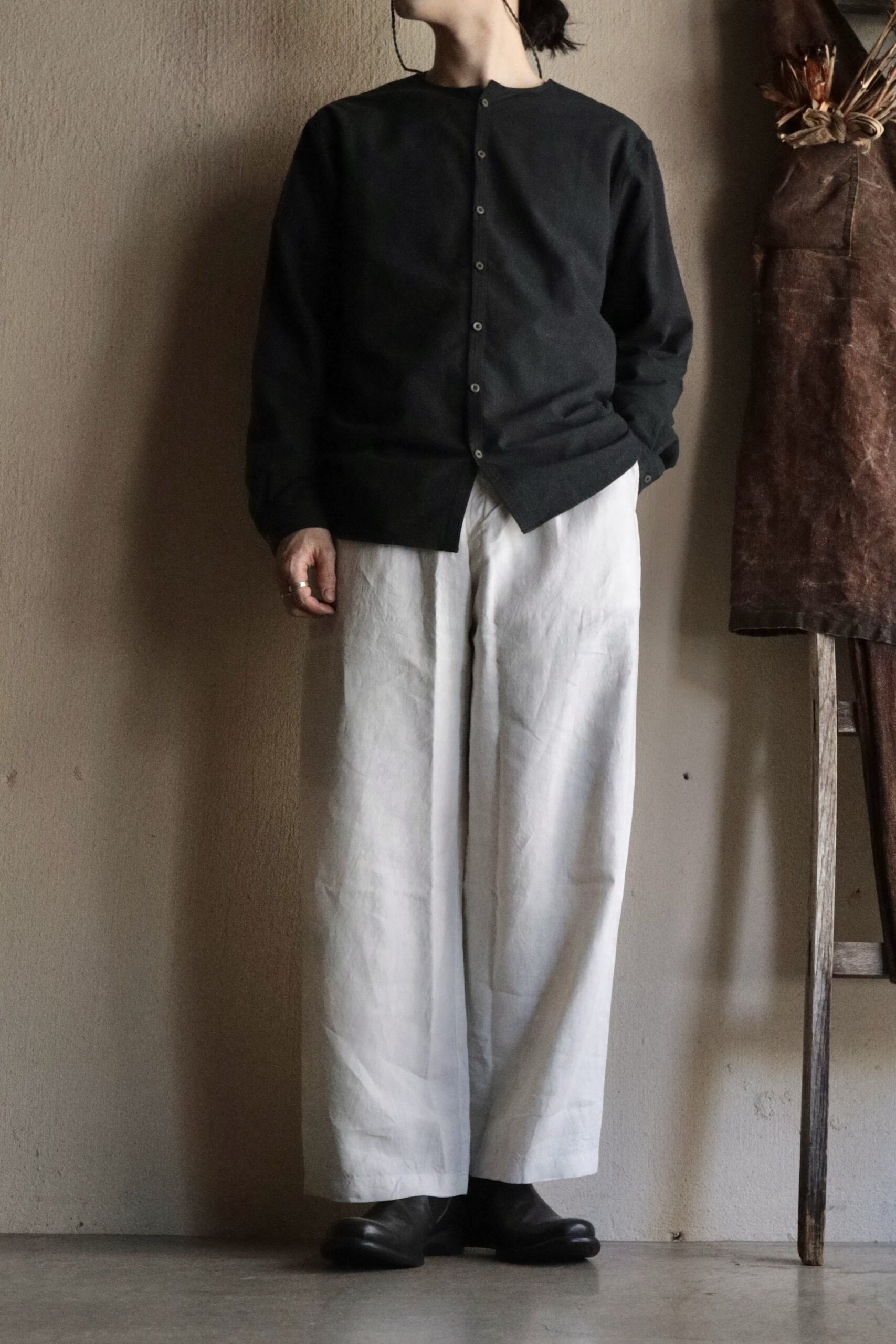 | スタイリング | Tops:MITTAN / SH-147 OC絹シャンブレーシャツ Shoes:DEVOA / SABOT |