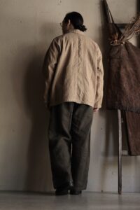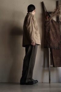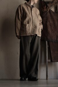 | スタイリング | Tops:MITTAN / JK-86C 薄手刺し子織ジャケット 草木染 Shoes:DEVOA / SABOT |
