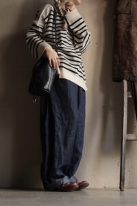 | スタイリング | Bottoms:TOWAVASE / Linen Denim Pants Shoes:EVARIST BERTRAN / EB2 Derby Shoes Sneakers: REPRODUCTION OF FOUND / French Military Trainer Hat: MALEZA Hatmakers / RISCO Felt Short Brim Bag: susuri / プール Black KUDU Leather made by iolom |