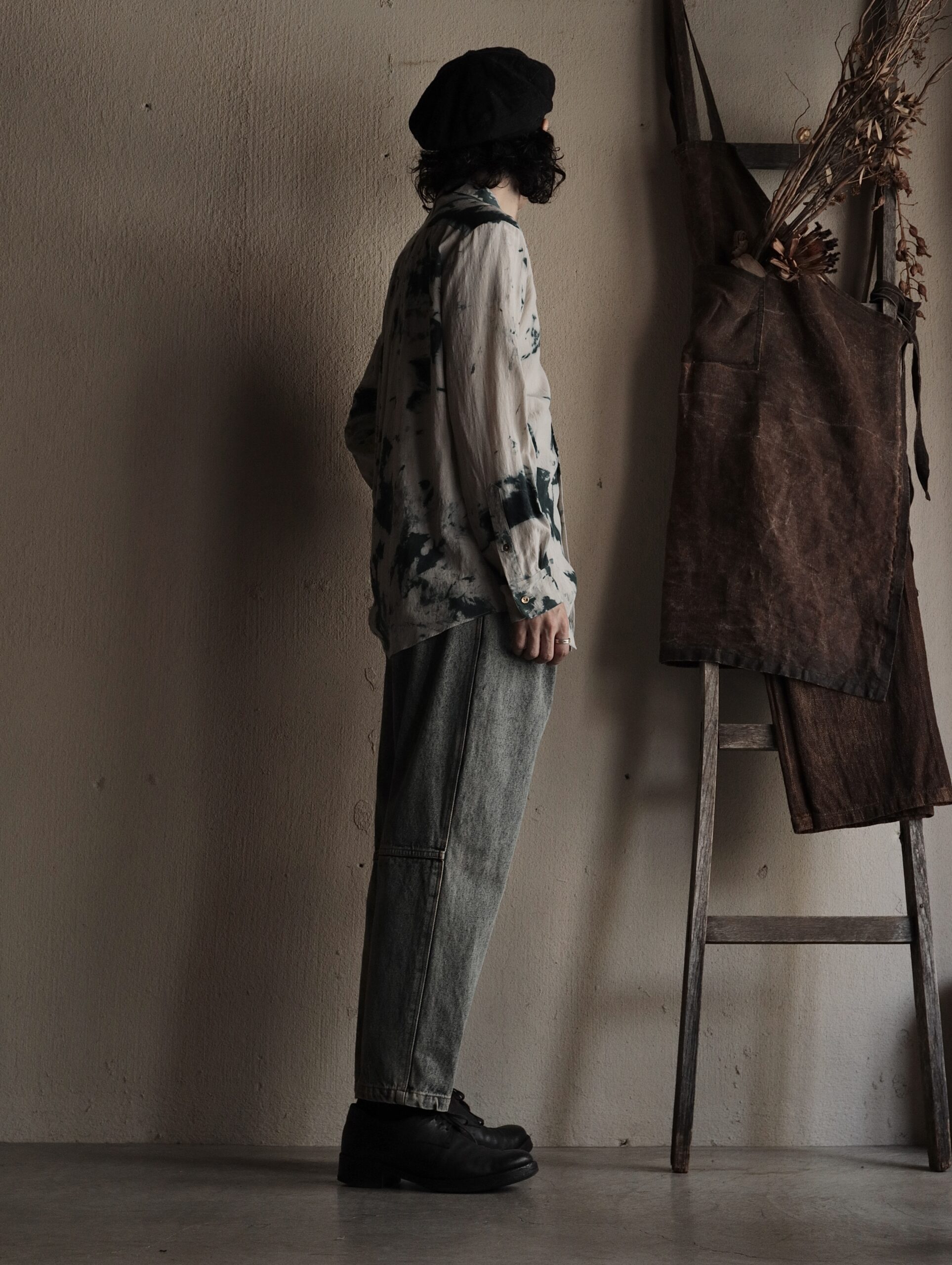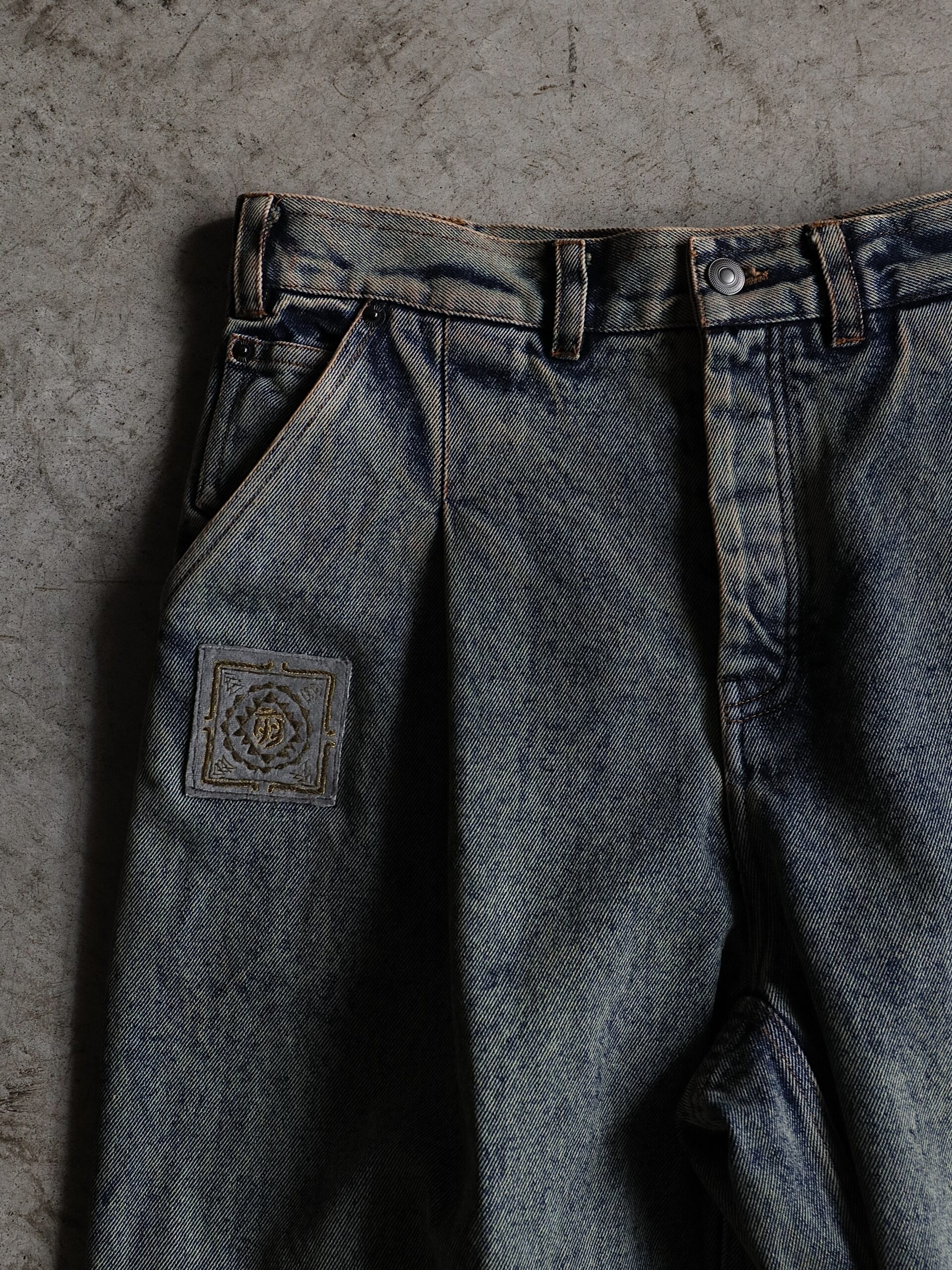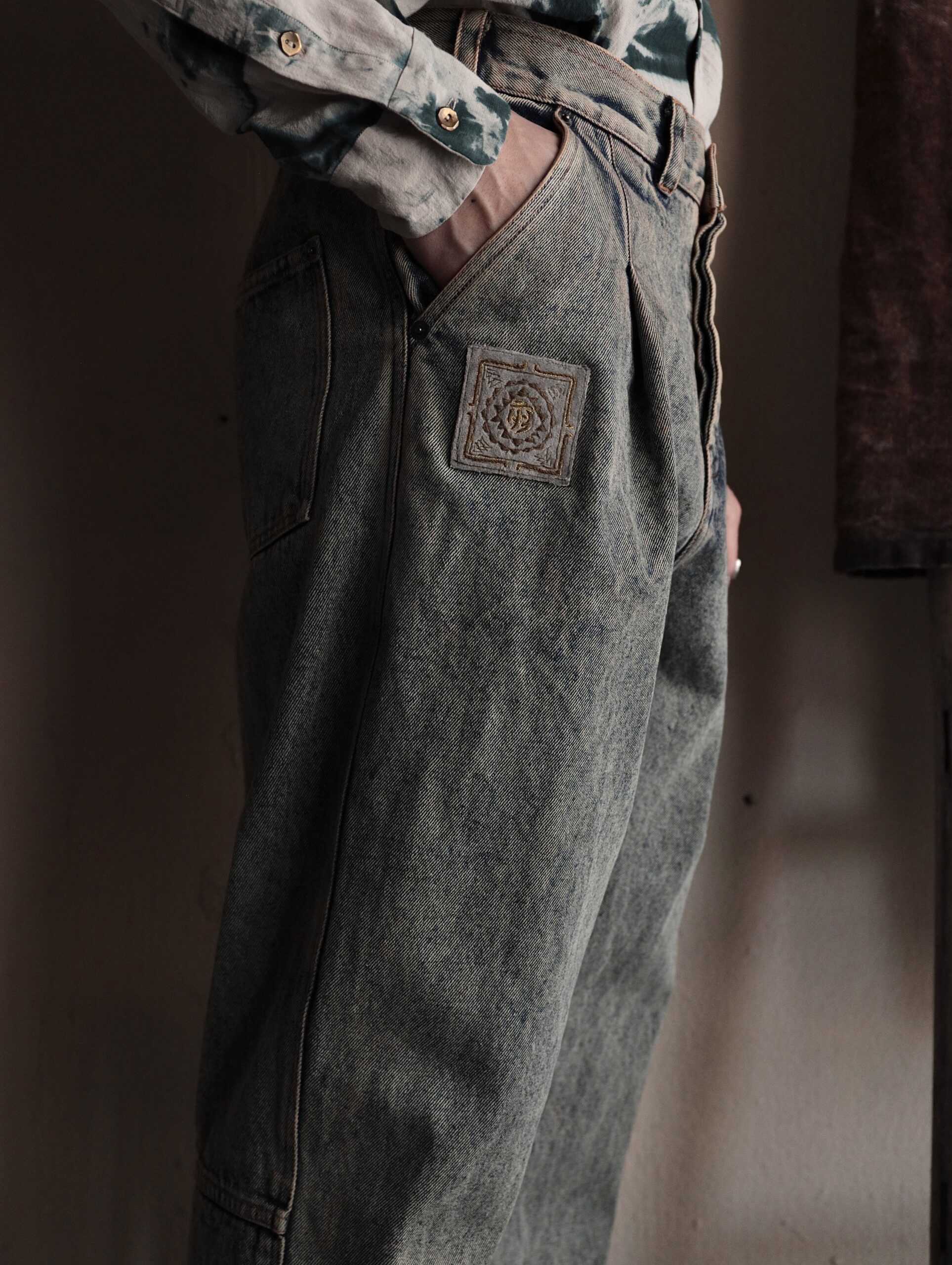 Bleach Denim Pants (GRAY) −INDIA DENIM / Hand Embroidery Patch, Bleach Wash−