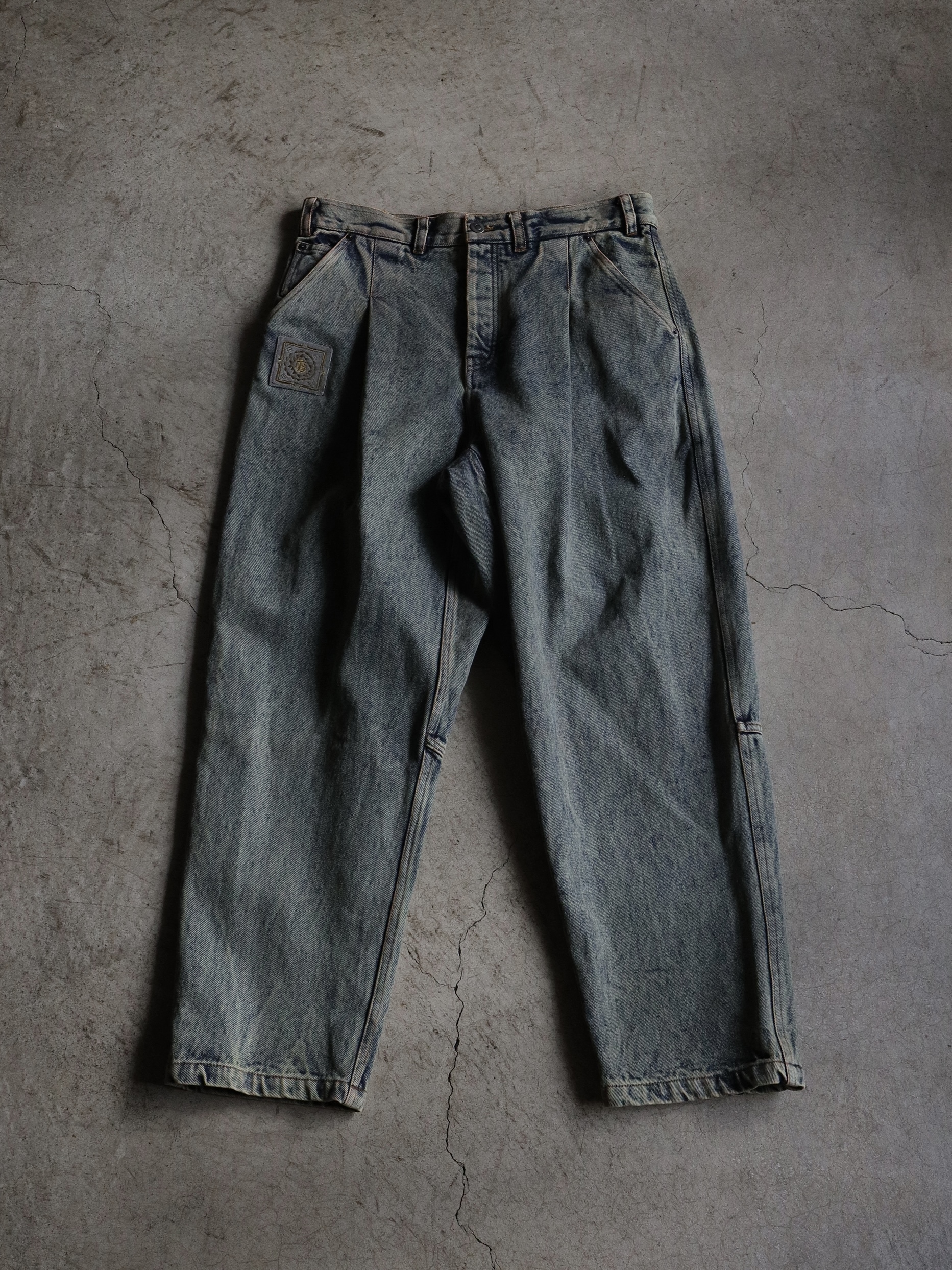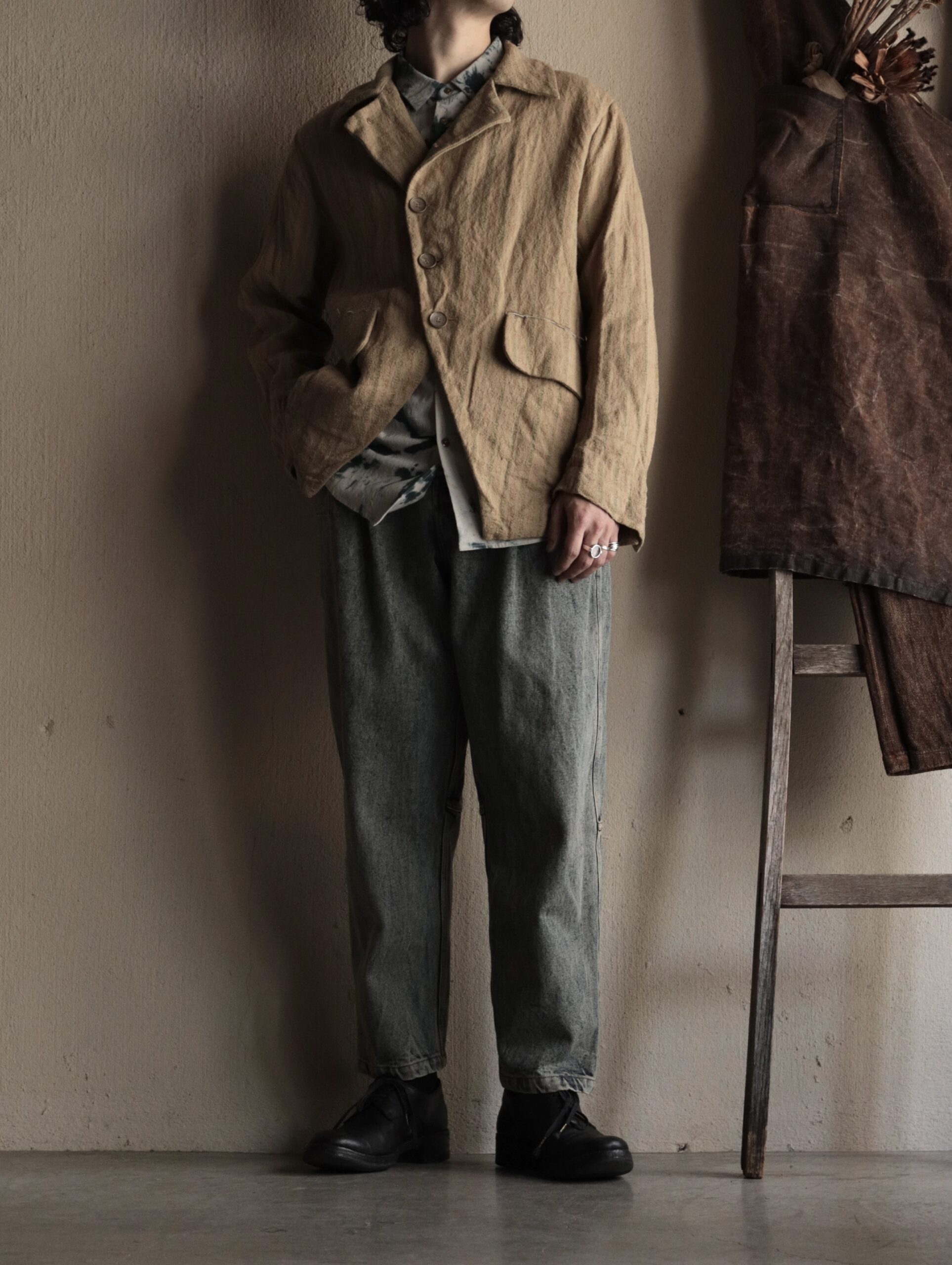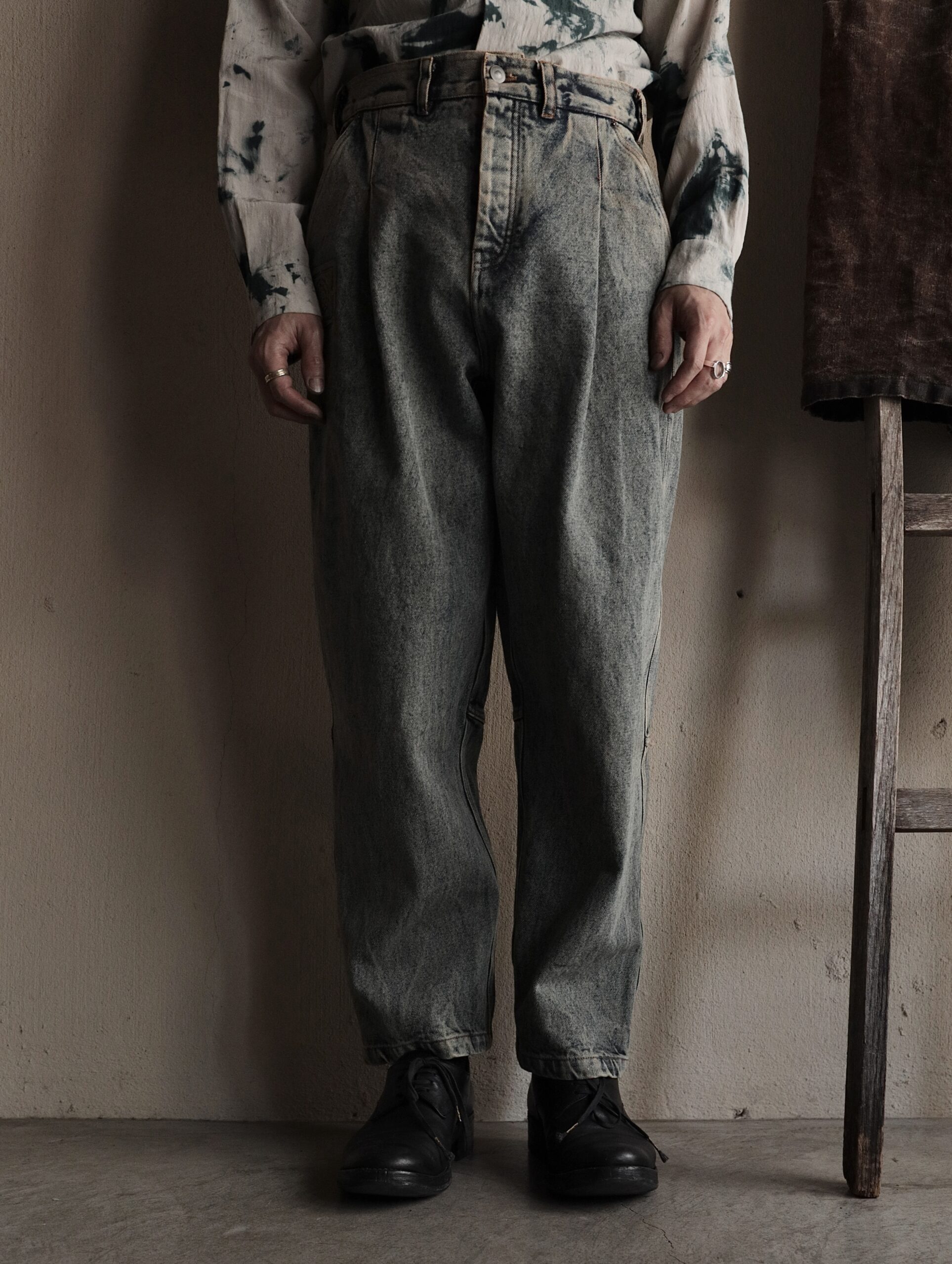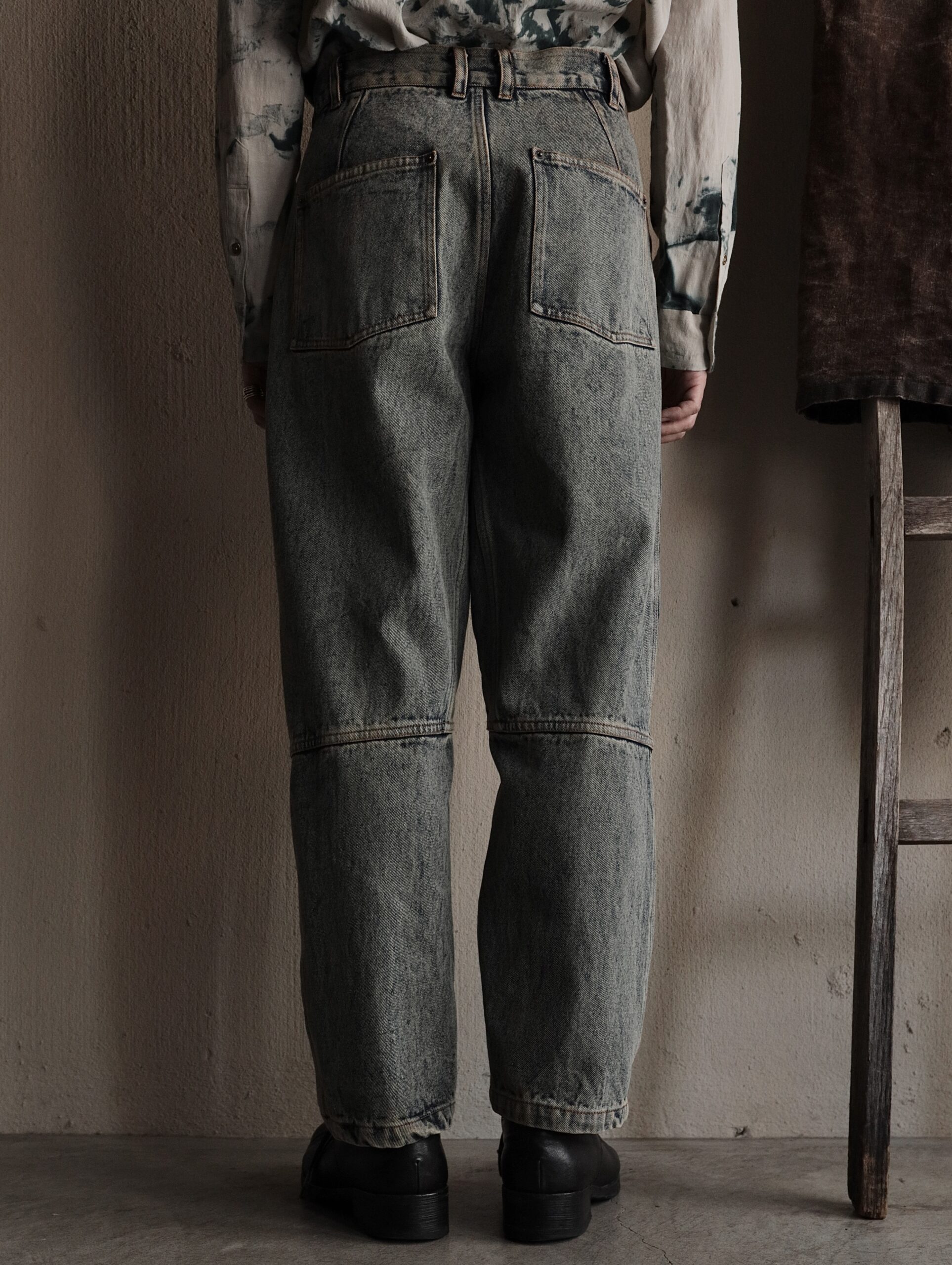 Bleach Denim Pants (GRAY) −INDIA DENIM / Hand Embroidery Patch, Bleach Wash−