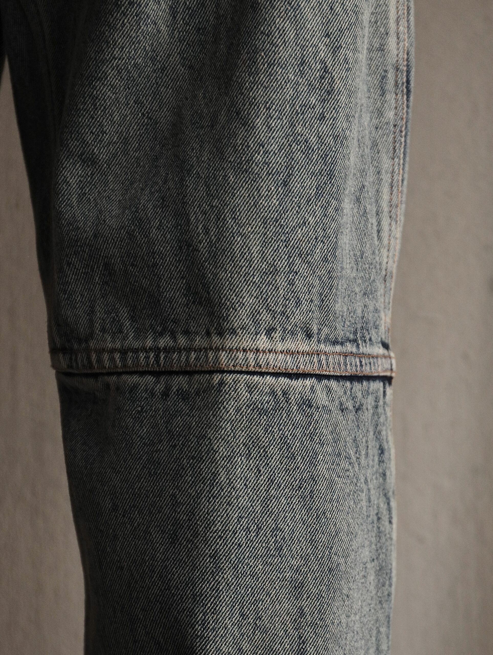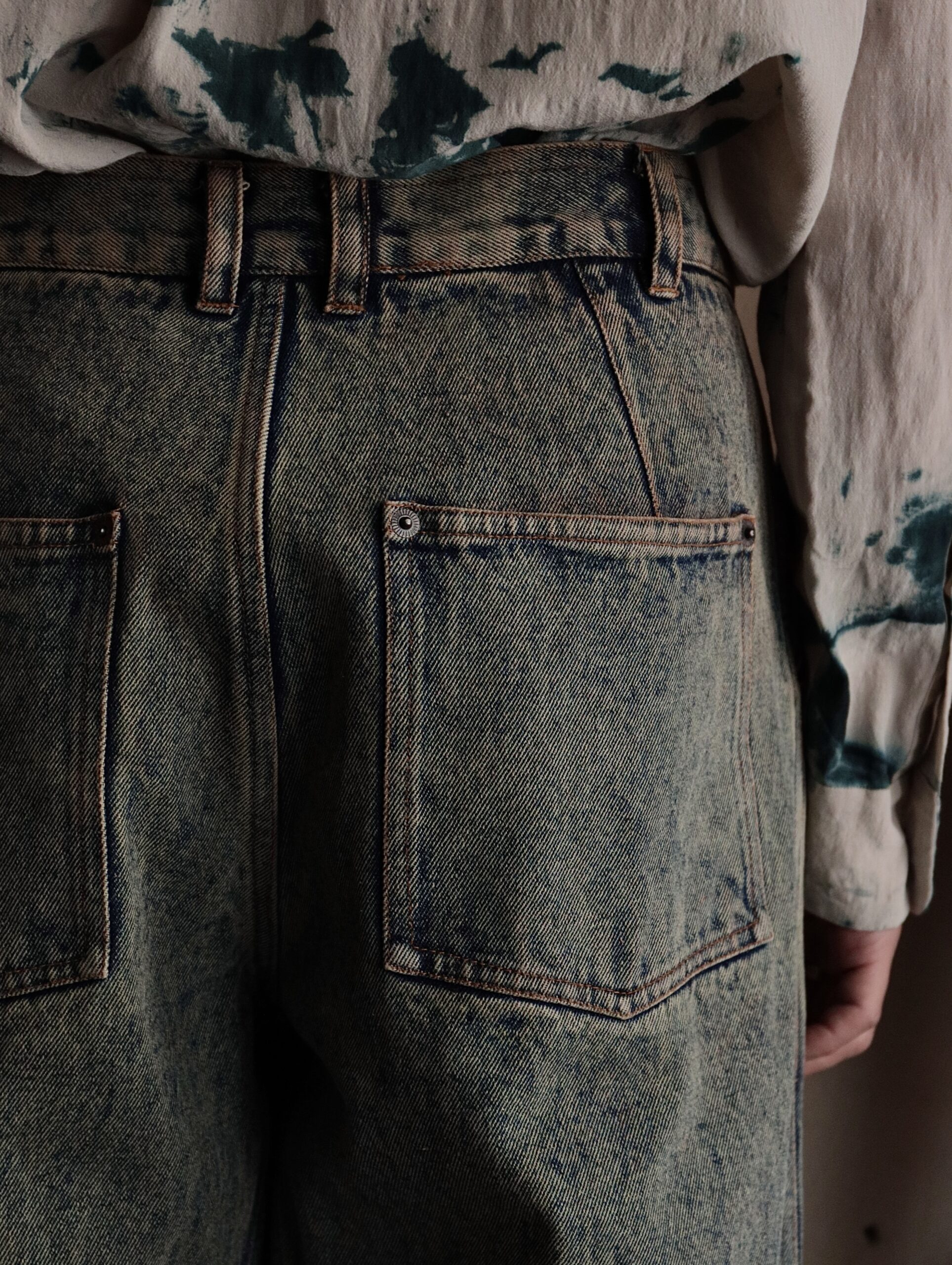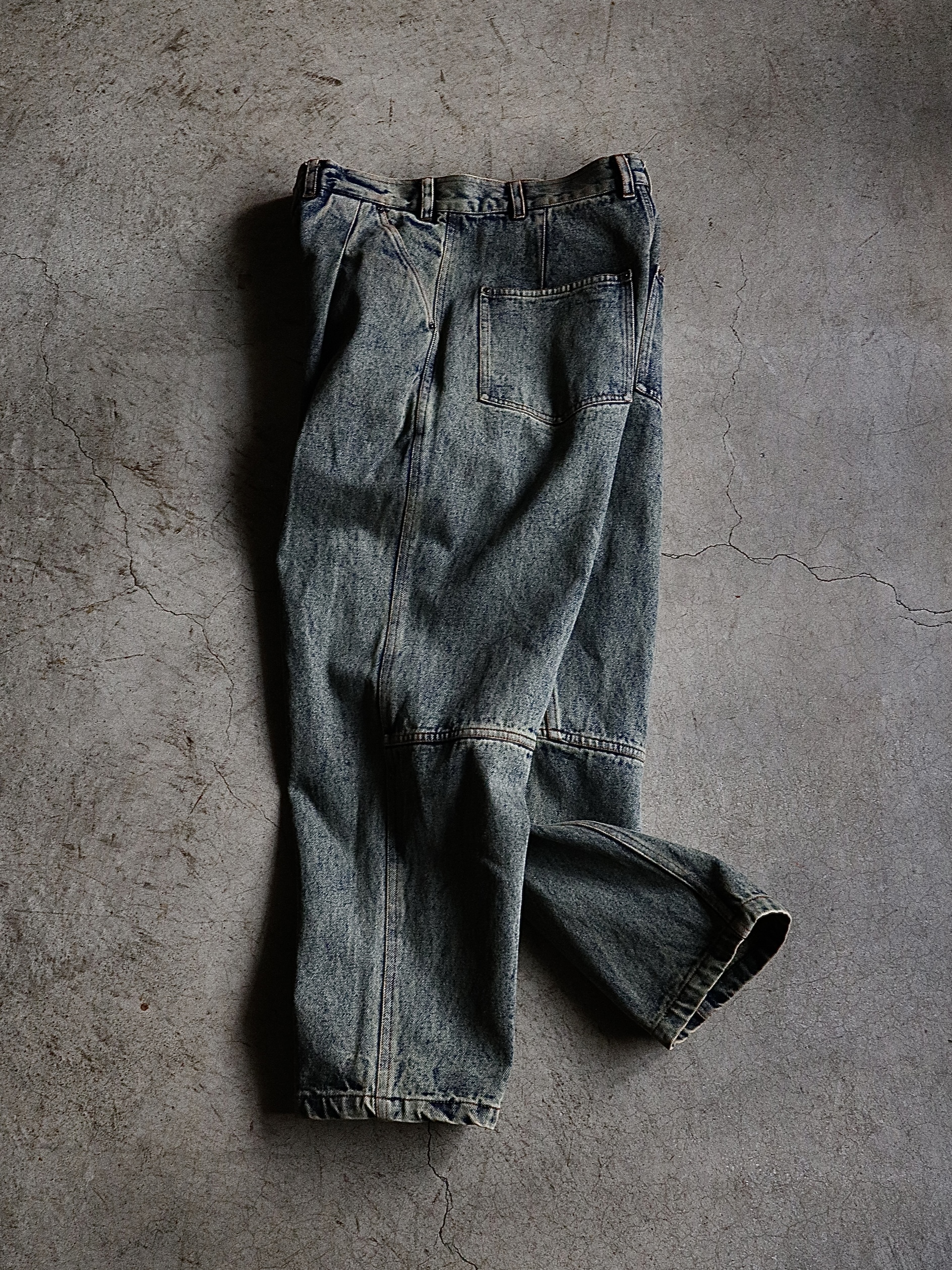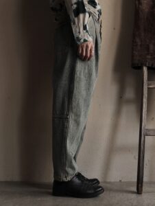 しっかりとテーパードがかかった美麗なデニムパンツ。