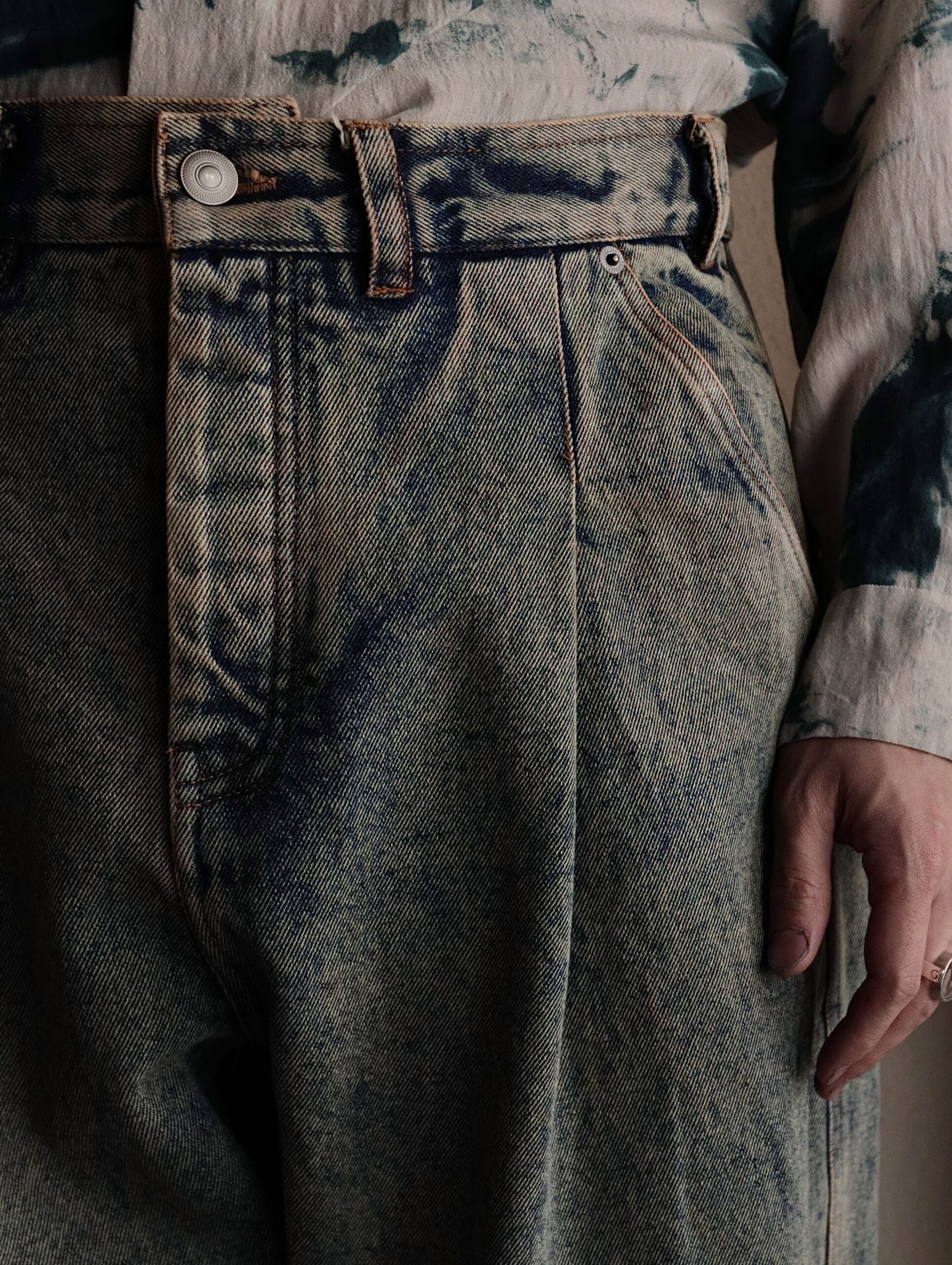 (インディアンデニム / 手刺繍パッチ,ブリーチウォッシュ)