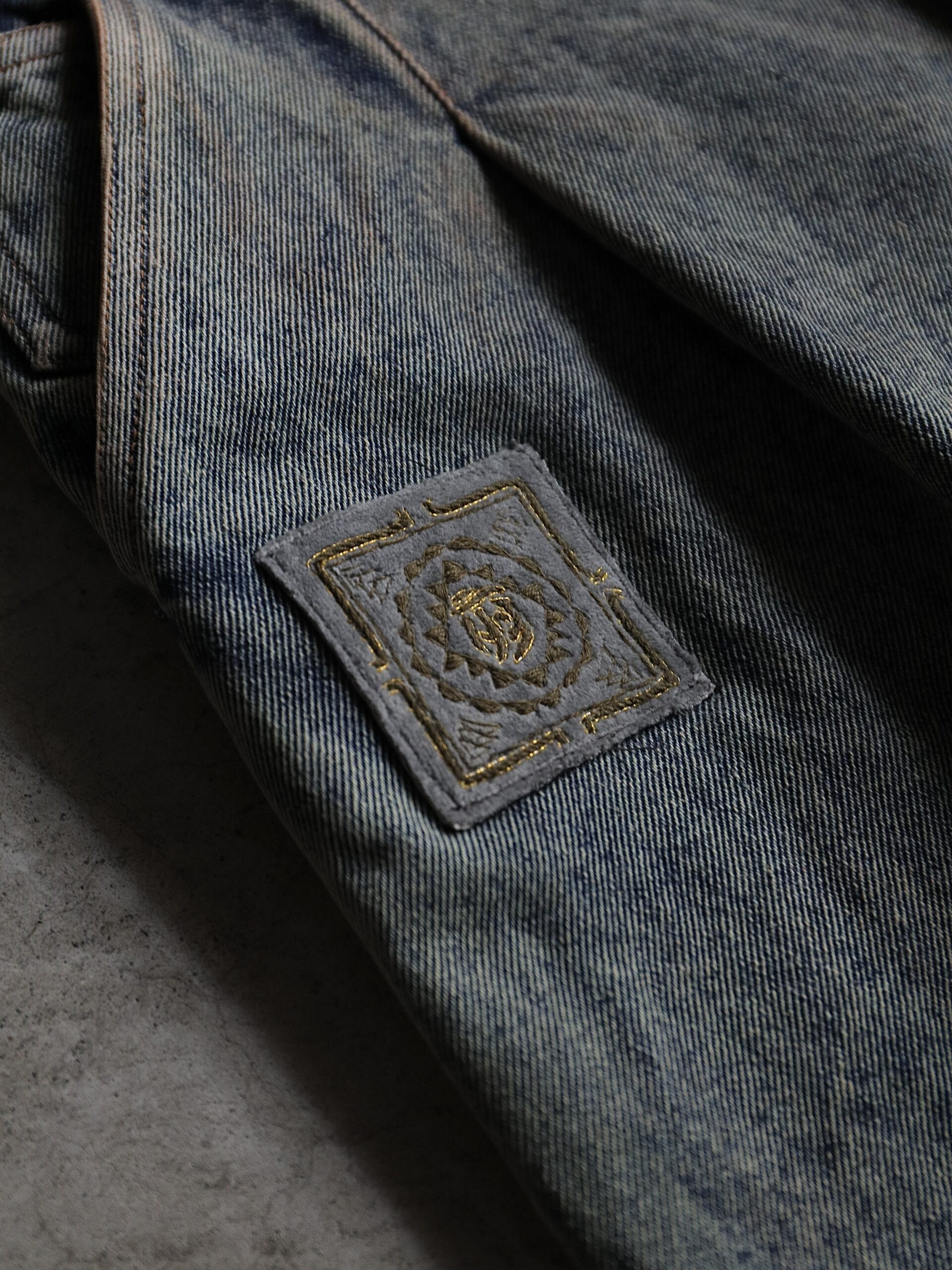 −INDIA DENIM / Hand Embroidery Patch, Bleach Wash−