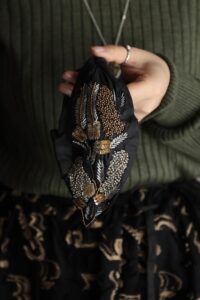 刺繍部分は広げる事で存在感が増しますが