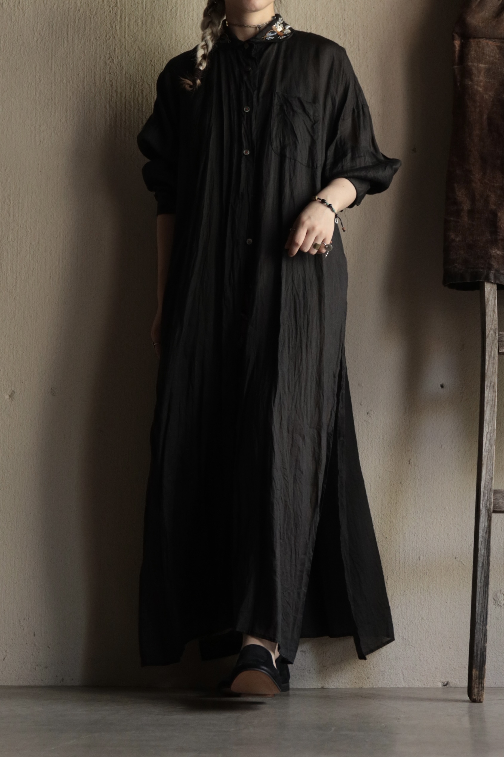 (刺繍リネンシャツドレス)