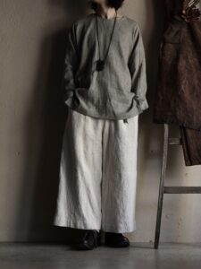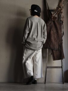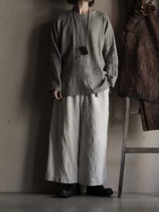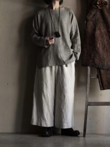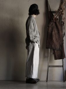 | スタイリング | 《男性》 Pants:YANTOR / Zero Count Khadi JUDO PANTS Shoes:EVARIST BERTRAN / EB2 Derby Shoes Necklace:soma folk / Hand-Knitting Hemp Necklace |
