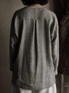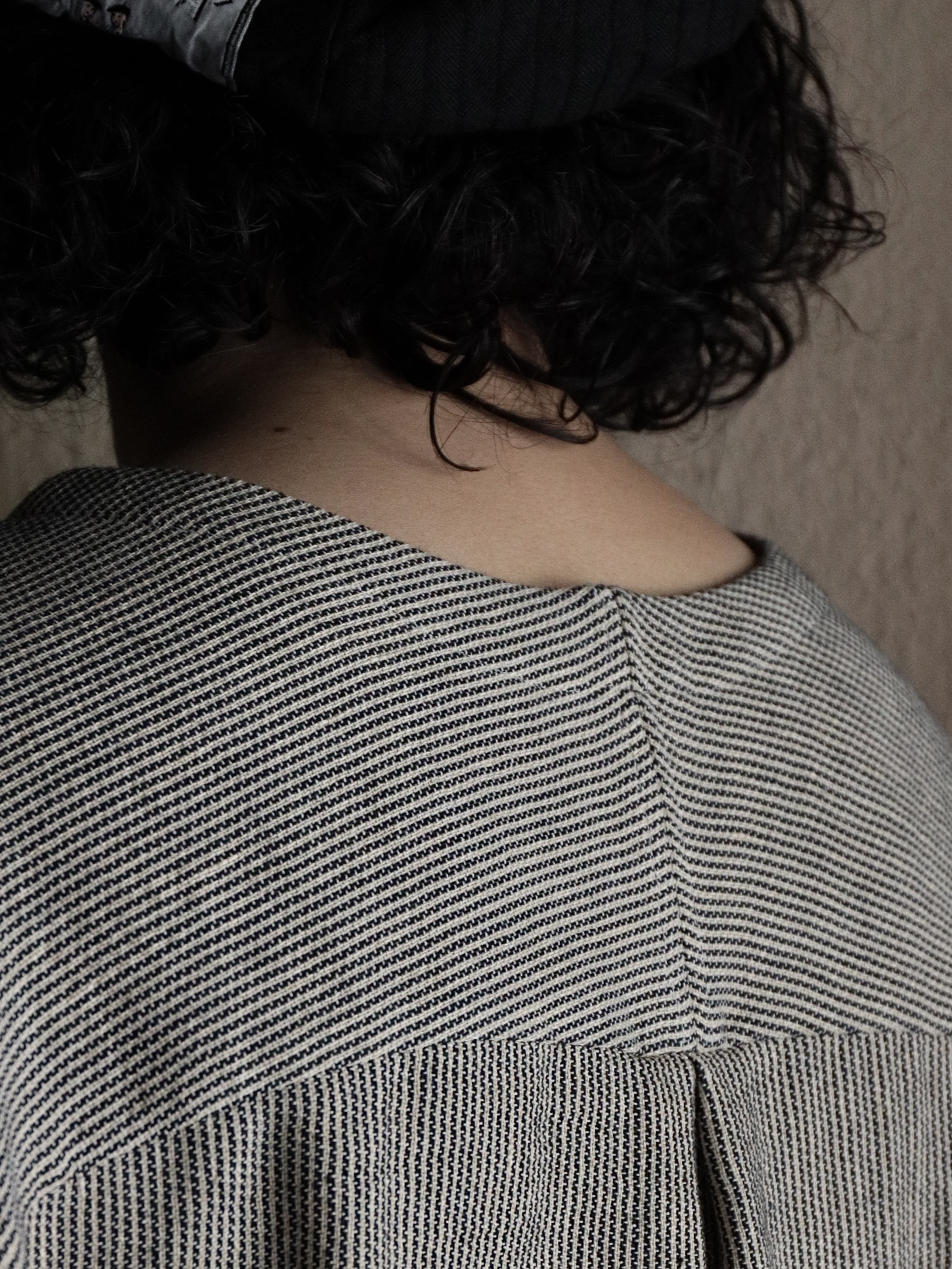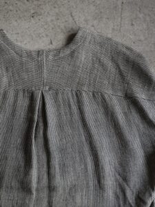 背面にたっぷりの生地分量と深いタックを入れる事で
