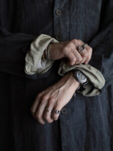 | スタイリング | 《女性①》 Shirt:YUTA MATSUOKA / New Classic Shirt (sold) Pants:YUTA MATSUOKA / Buggy Pants (sold) Shoes:EVARIST BERTRAN / EB2 Derby Shoes Necklace:YUTA MATSUOKA / Handmade Chain Necklace |