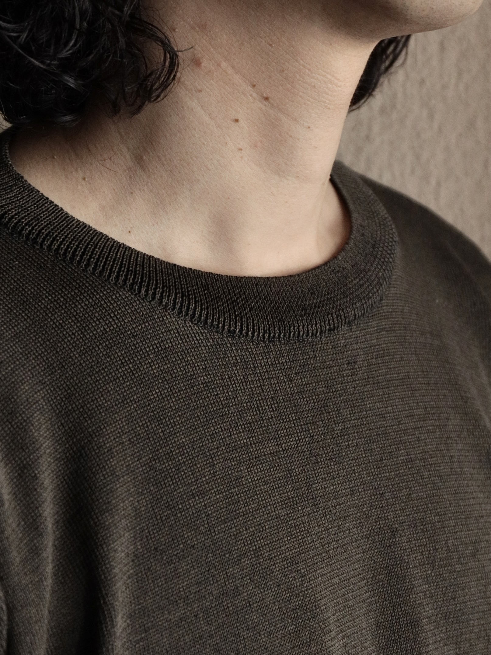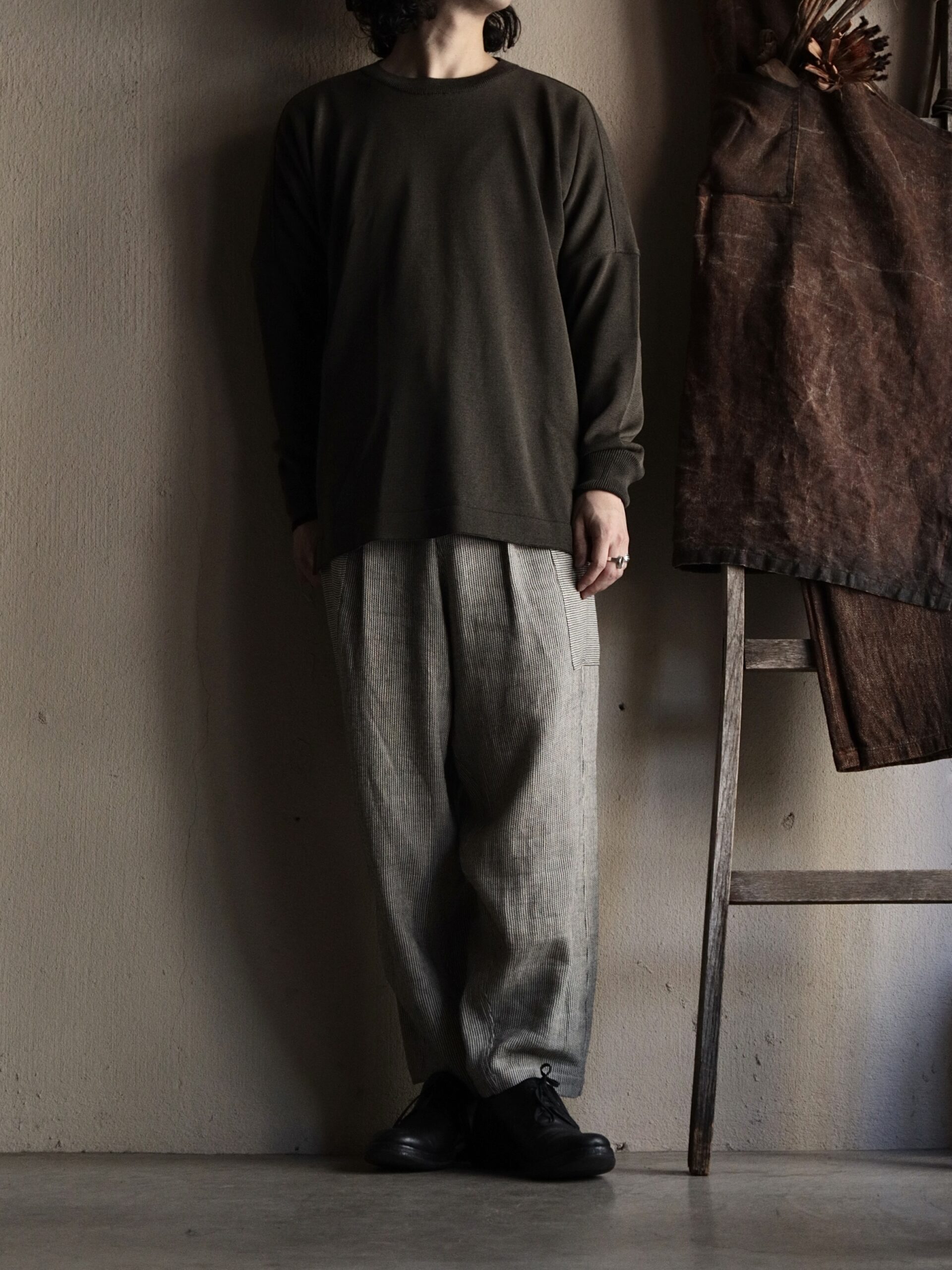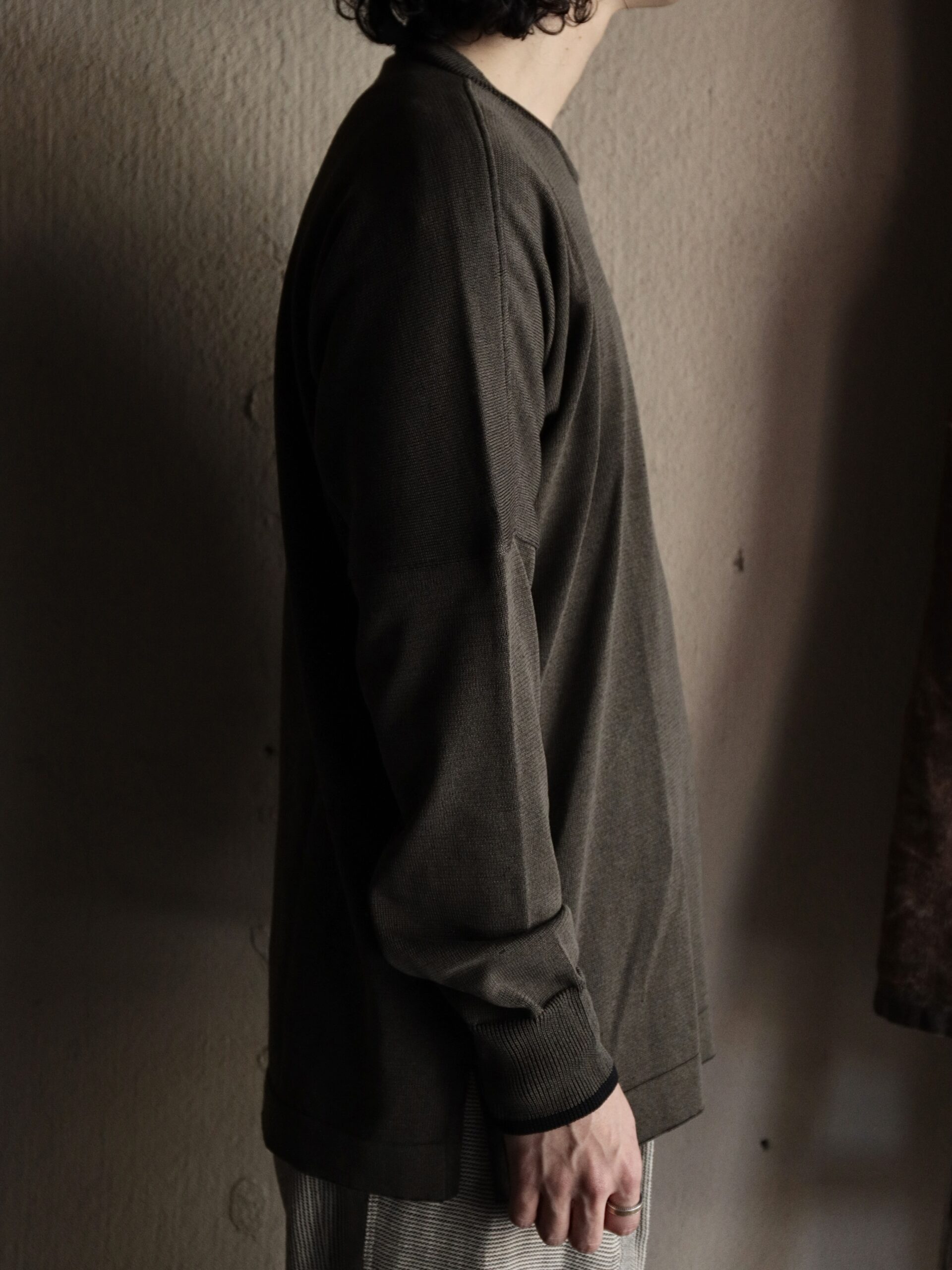 Long Sleeve Knit Pullover (KHAKI GRAY) −12G GIMA COTTON PLATING TENJIKU−