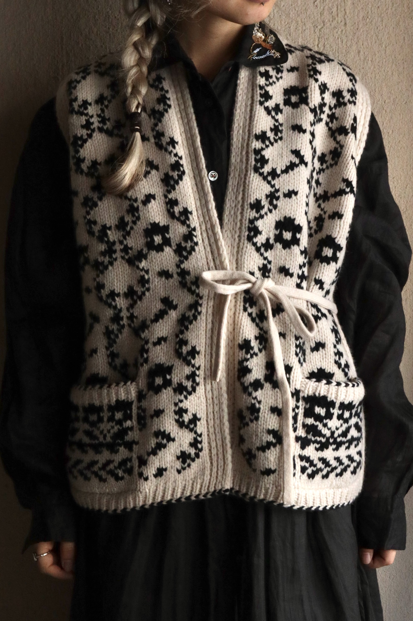 −No Sleeve Cashmere Cardigan Hand Knitting