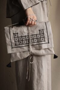 同素材の腰紐でカシュクールのように閉じる仕様により