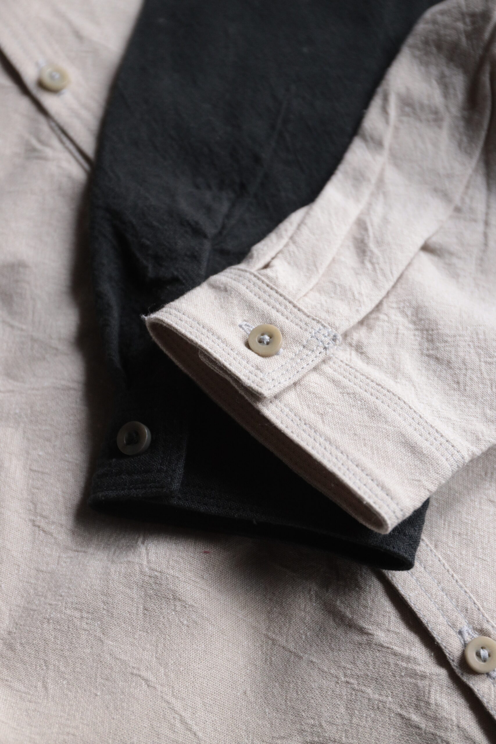 装飾を抑えた機能的なパターンで構成した新型シルエットのシャツ。